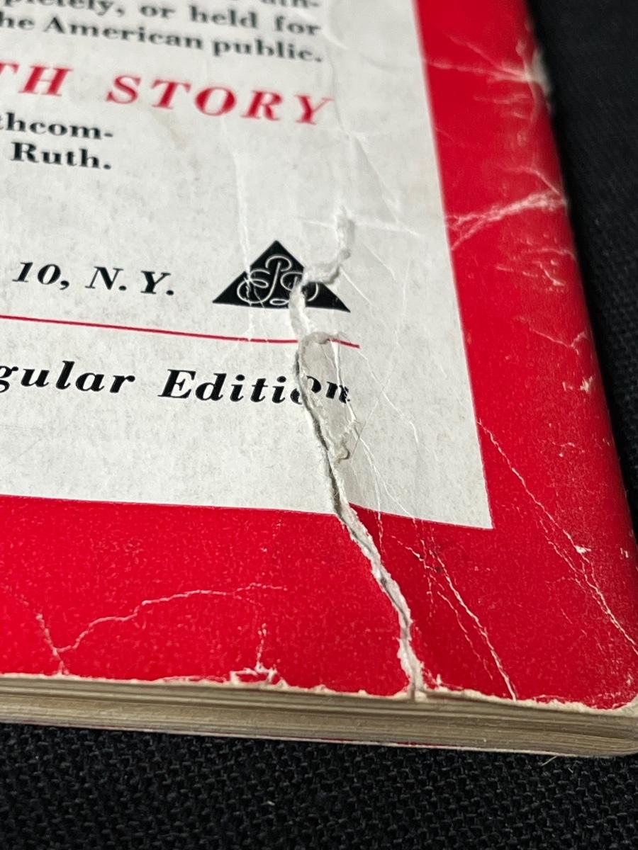 The Babe Ruth Story Illustrated 1948 First Edition. Cover has separated from book and has some damage. Please see all pictures as they are the best representation of the items. The pictures show condition, measurements if taken, and what is included in the lot. Due to the large amount that we photograph and the time frame, we are not always able to take measurements. All items unless noted, are pre-owned and have been used. If you purchased furniture, you must bring help. We do not allow one person to carry large furniture out on their own. Bring help, tools and a truck for the safety of our client’s homes, and your personal safety. Any damages that result to the property including walls, and floors due to moving of the furniture will be charged to the buyer. Company policy. Thank you.