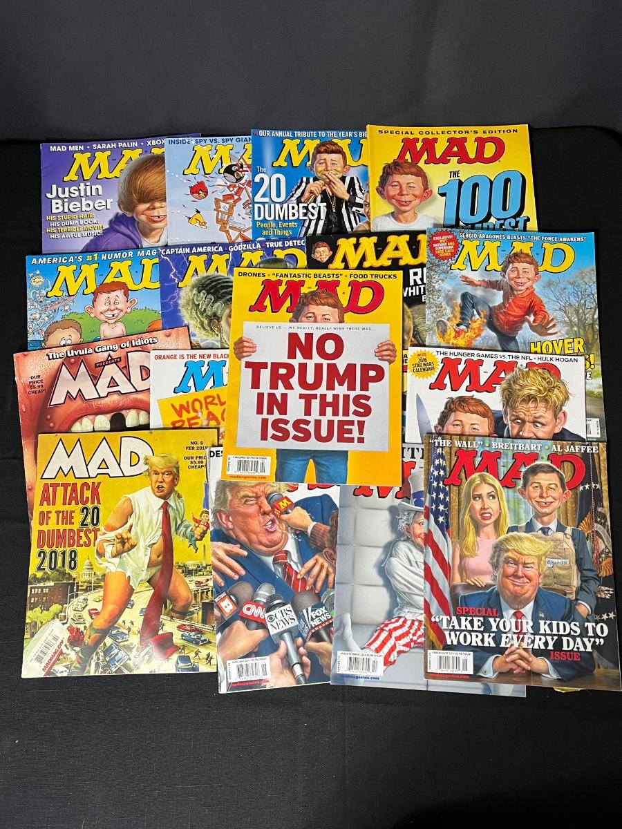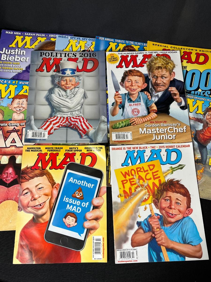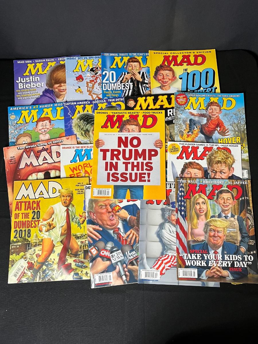 17 Mad Magazines From 2011-2017. In varying condition, but most very good to excellent. Please see all pictures as they are the best representation of the items. The pictures show condition, measurements if taken, and what is included in the lot. Due to the large amount that we photograph and the time frame, we are not always able to take measurements. All items unless noted, are pre-owned and have been used. If you purchased furniture, you must bring help. We do not allow one person to carry large furniture out on their own. Bring help, tools and a truck for the safety of our client’s homes, and your personal safety. Any damages that result to the property including walls, and floors due to moving of the furniture will be charged to the buyer. Company policy. Thank you.