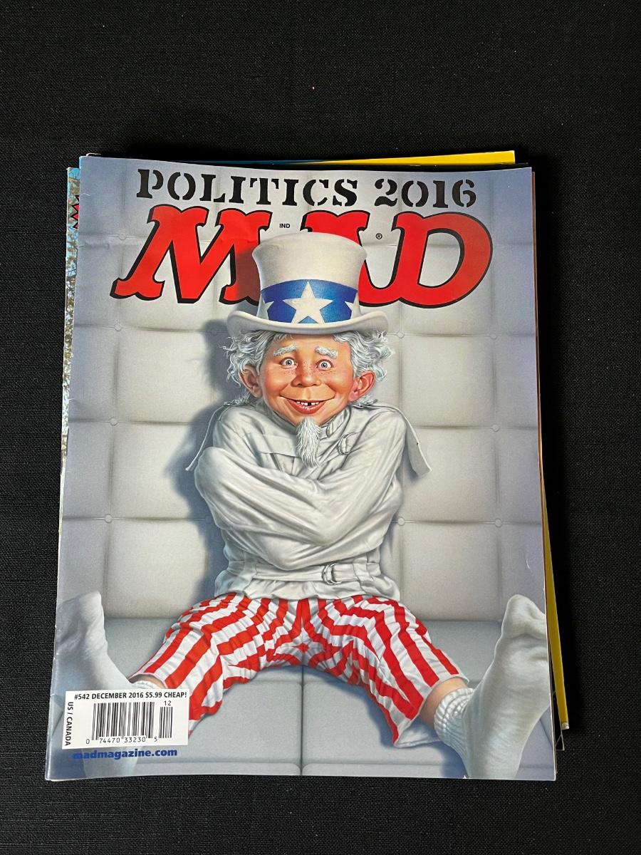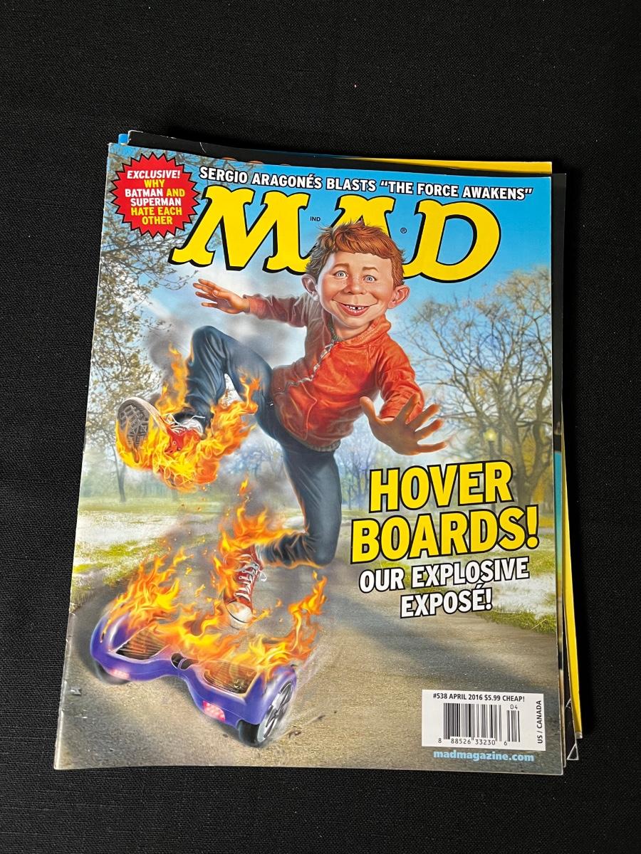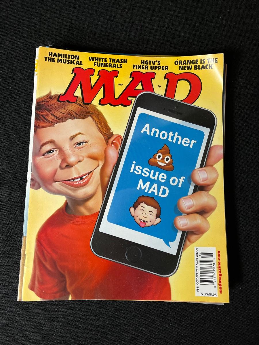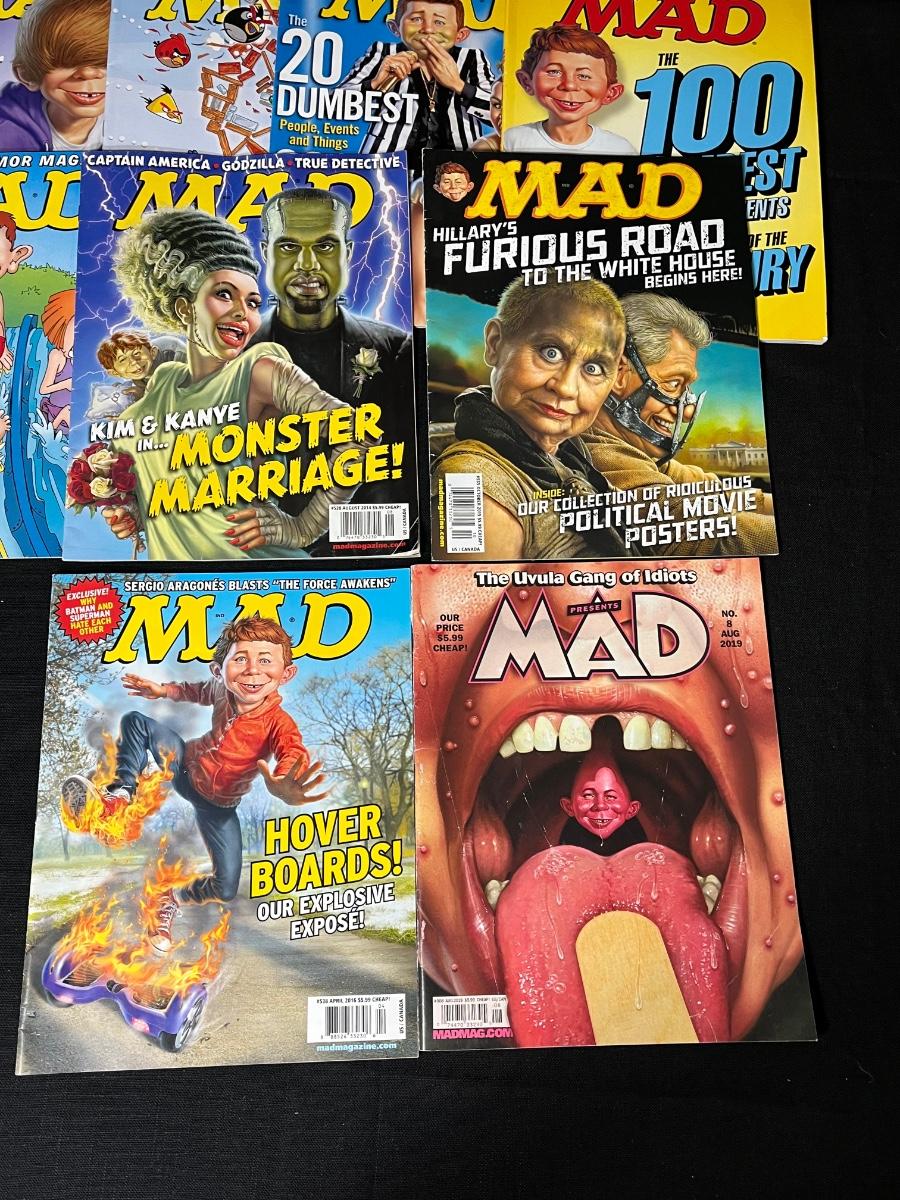 17 Mad Magazines From 2011-2017. In varying condition, but most very good to excellent. Please see all pictures as they are the best representation of the items. The pictures show condition, measurements if taken, and what is included in the lot. Due to the large amount that we photograph and the time frame, we are not always able to take measurements. All items unless noted, are pre-owned and have been used. If you purchased furniture, you must bring help. We do not allow one person to carry large furniture out on their own. Bring help, tools and a truck for the safety of our client’s homes, and your personal safety. Any damages that result to the property including walls, and floors due to moving of the furniture will be charged to the buyer. Company policy. Thank you.