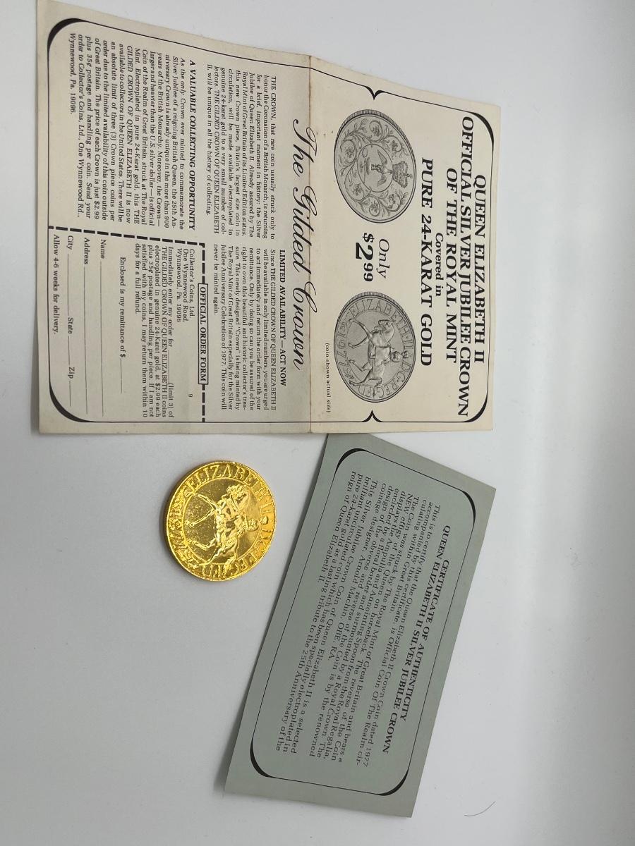 International Coin Collection Including. 24K Gold Plated Queen Elizabeth II. Please see all pictures as they are the best representation of the items. The pictures show condition, measurements if taken, and what is included in the lot. Due to the large amount that we photograph and the time frame, we are not always able to take measurements. All items unless noted, are pre-owned and have been used. If you purchased furniture, you must bring help. We do not allow one person to carry large furniture out on their own. Bring help, tools and a truck for the safety of our client’s homes, and your personal safety. Any damages that result to the property including walls, and floors due to moving of the furniture will be charged to the buyer. Company policy. Thank you.