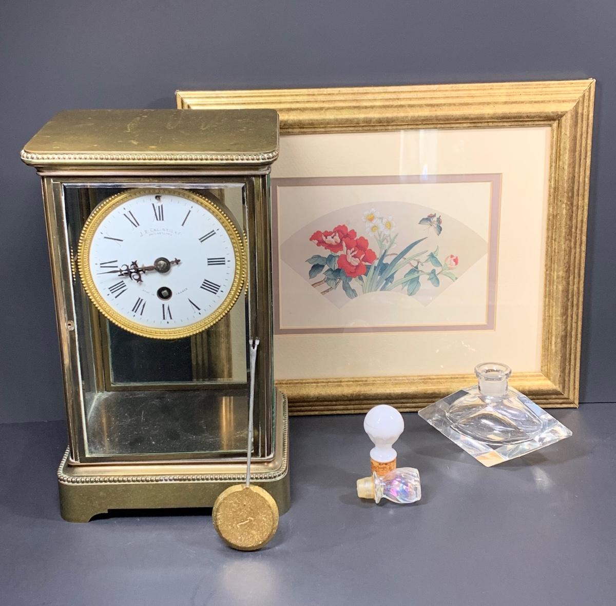 LOT 108R: J.E. Caldwell & Co. Anniversary Clock, Framed Floral Wall Art & More