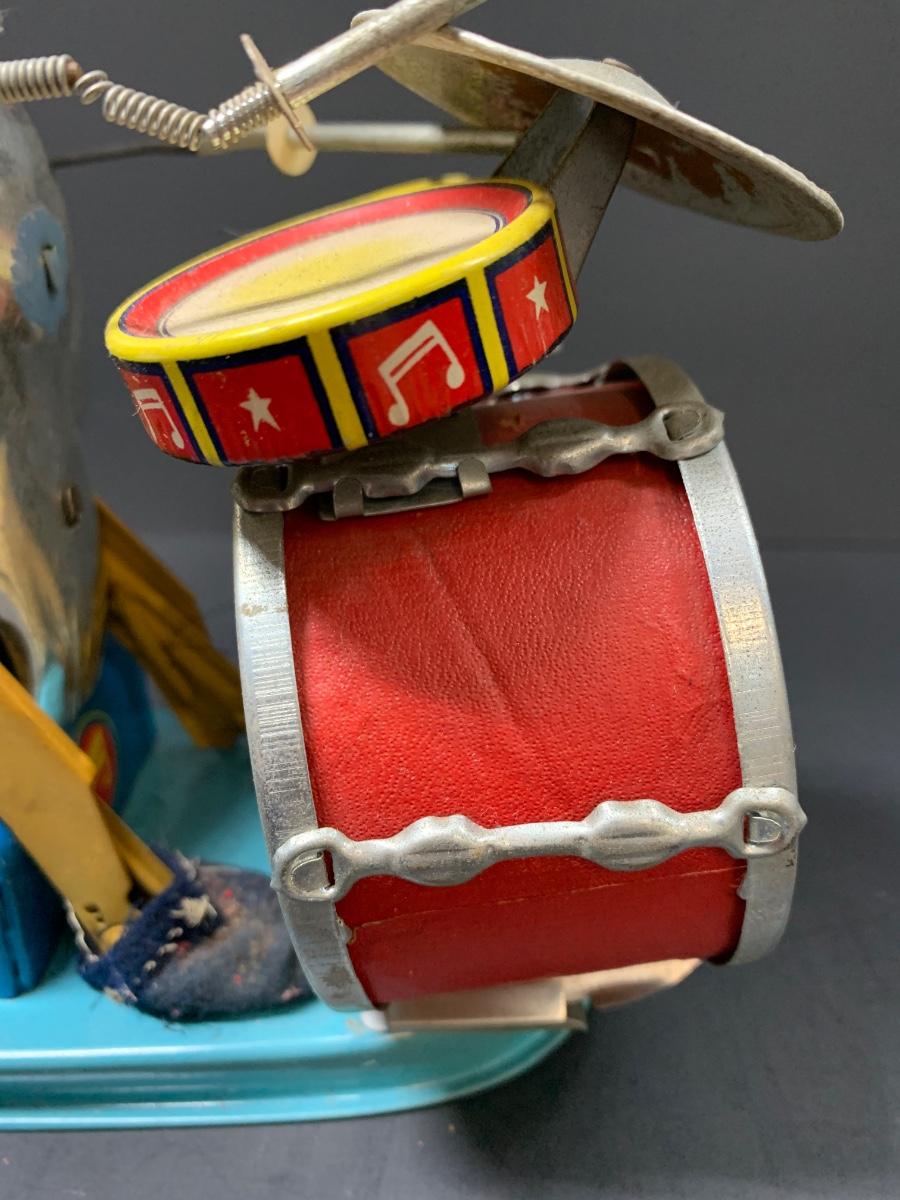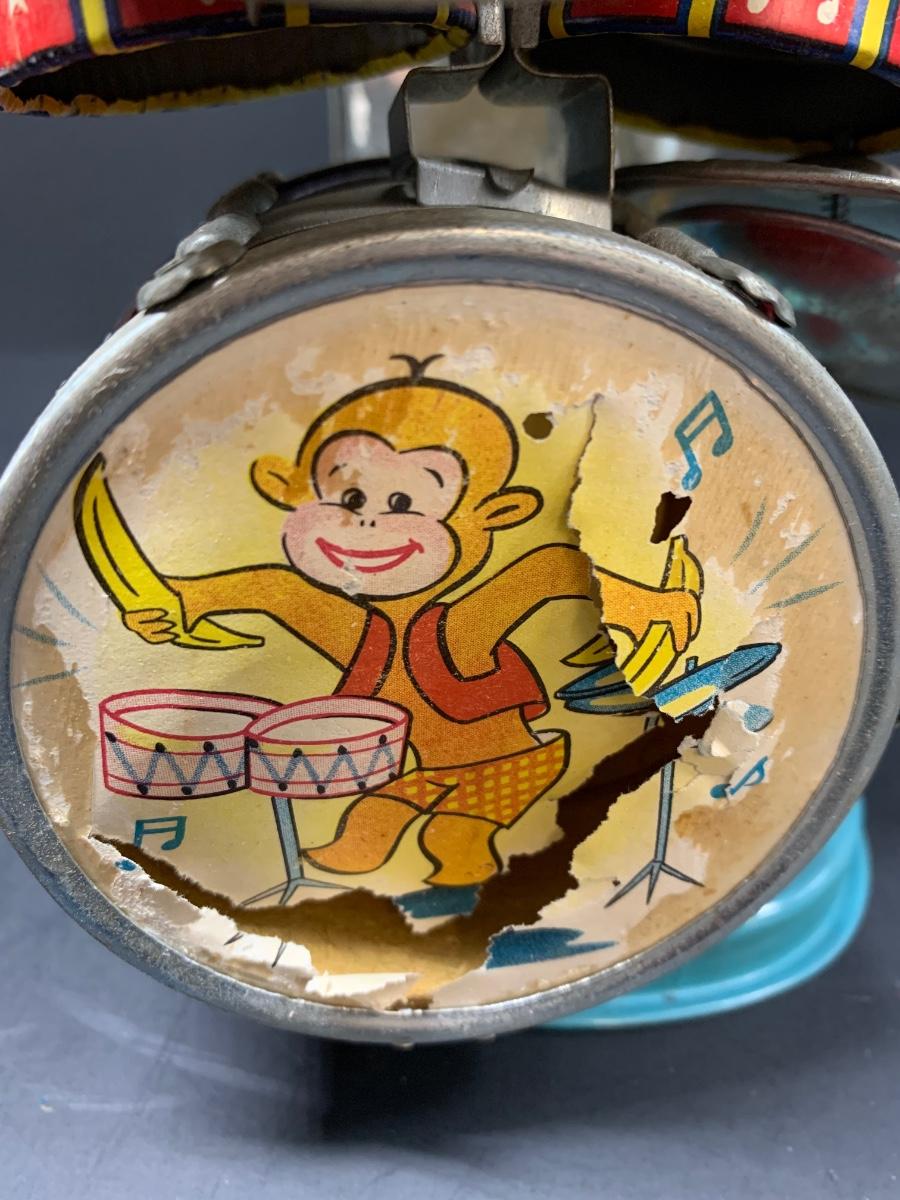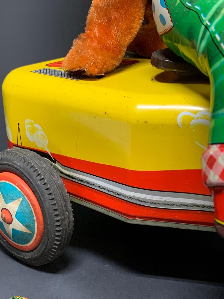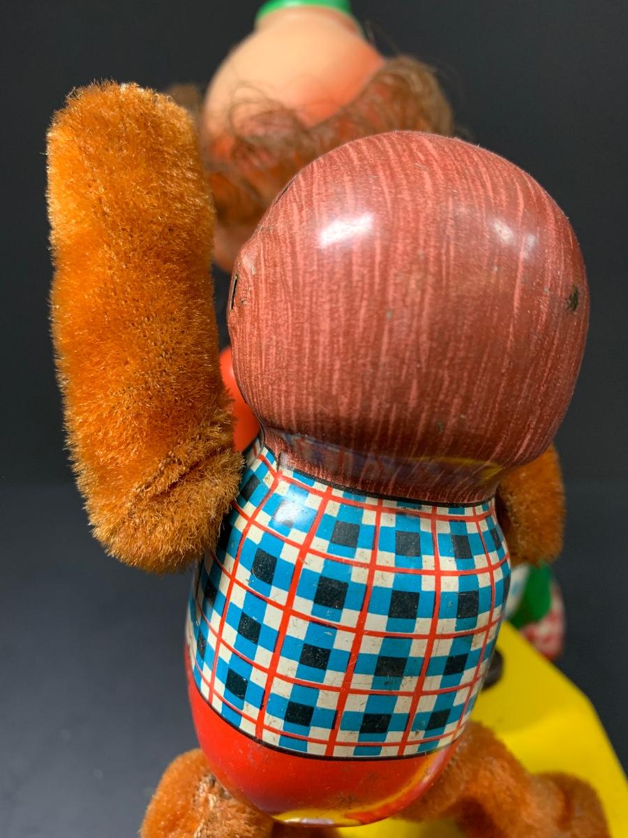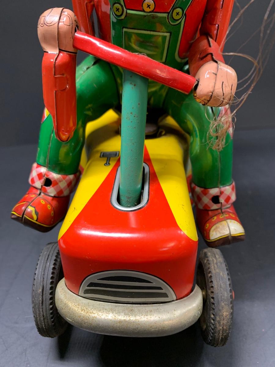 Collection of untested clown tin battery operated toys and a non working wind up alligator.