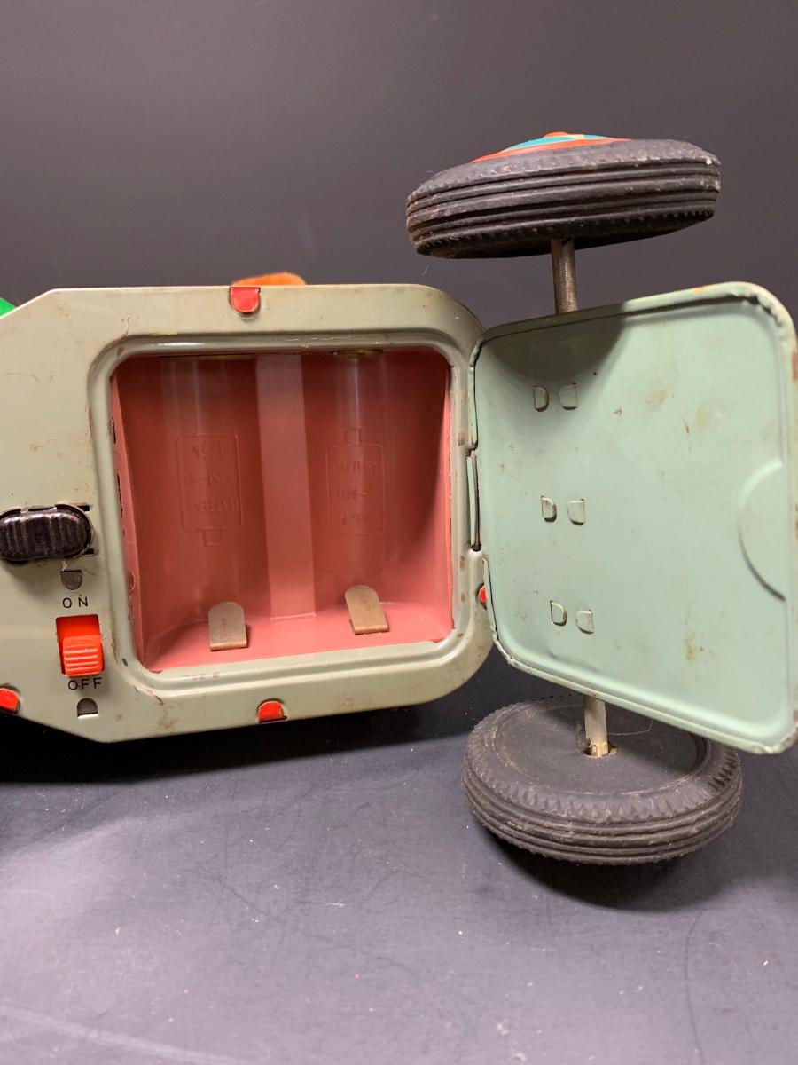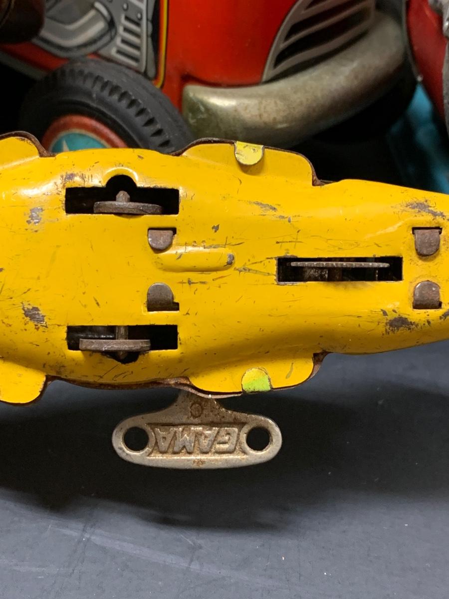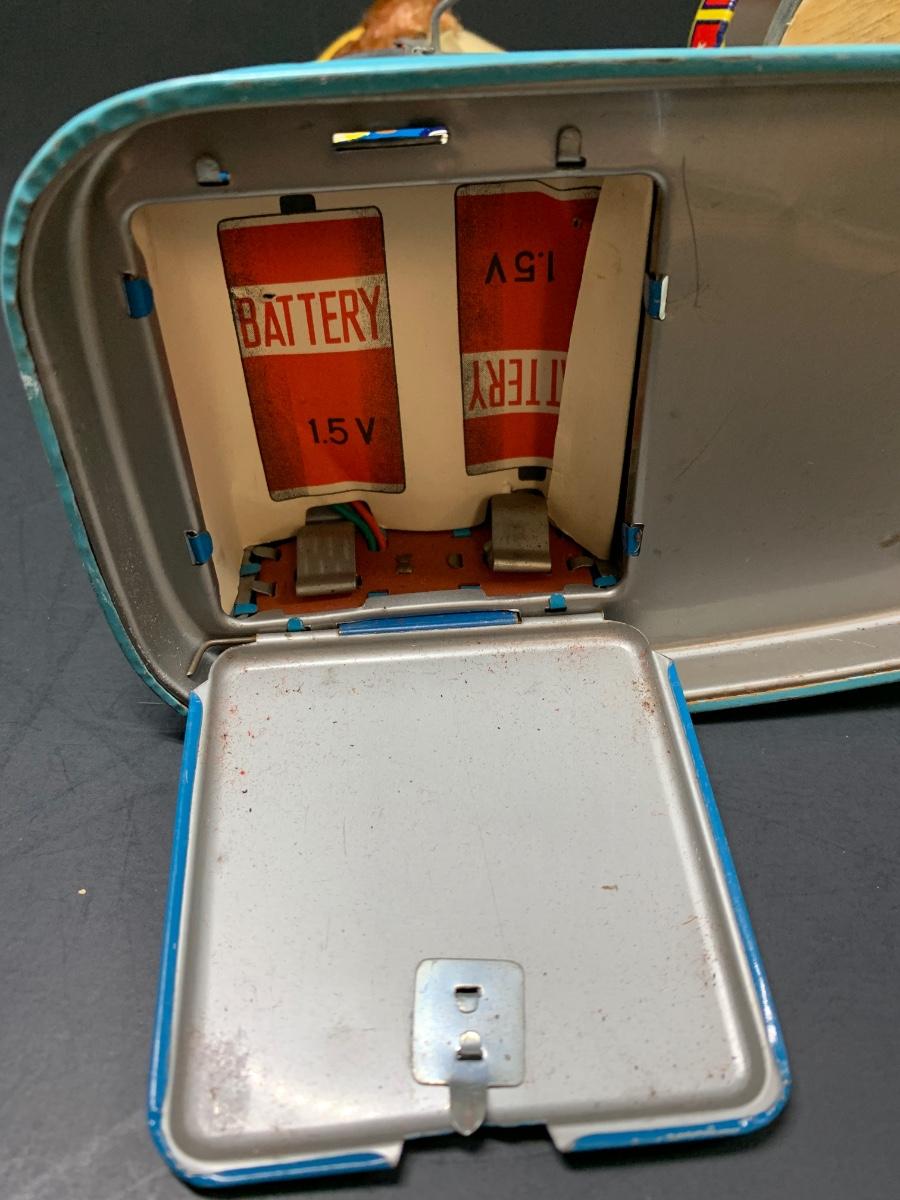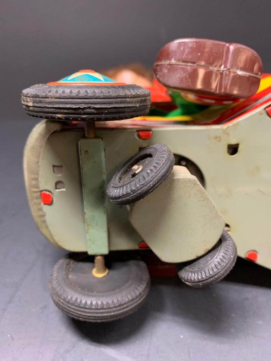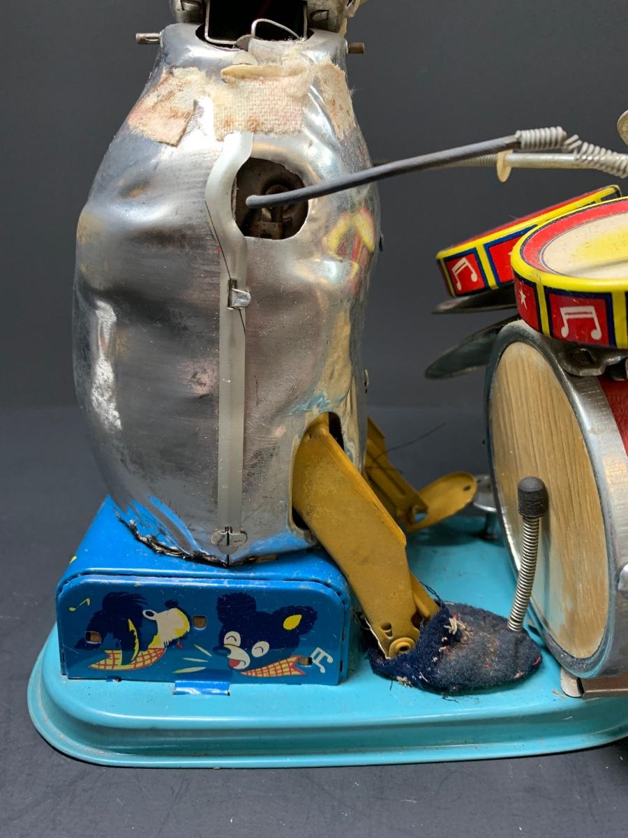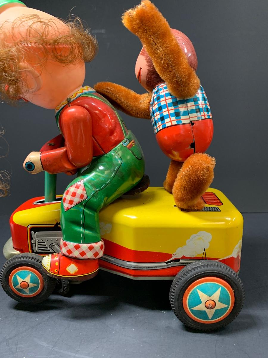 Collection of untested clown tin battery operated toys and a non working wind up alligator.