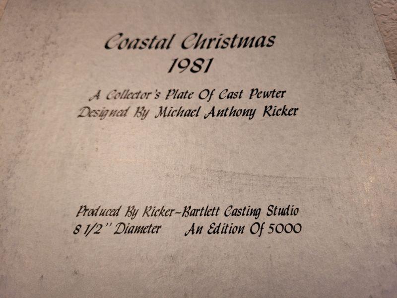 Lot 685: Vintage 1981 COASTAL CHRISTMAS Pewter Plate by Michael Ricker