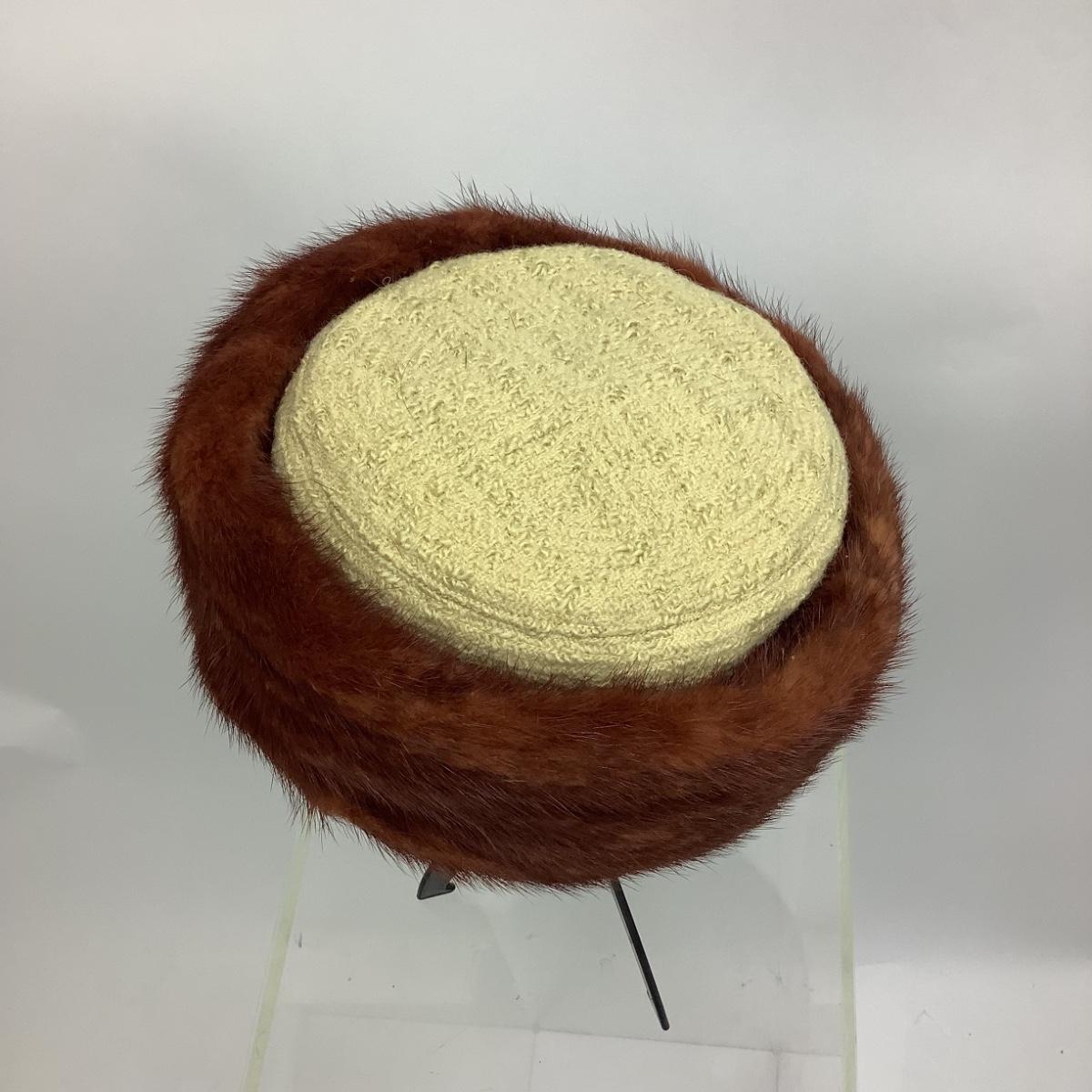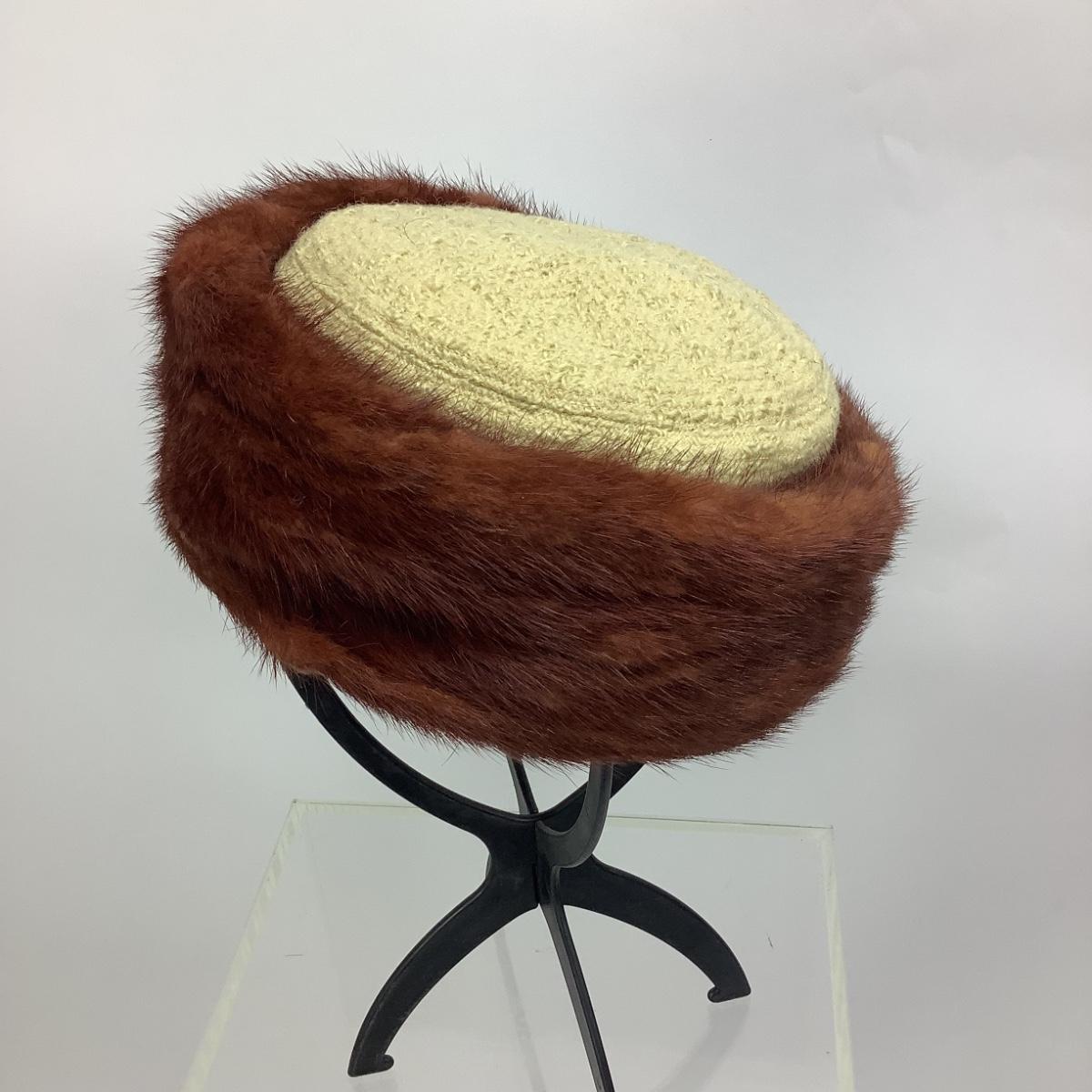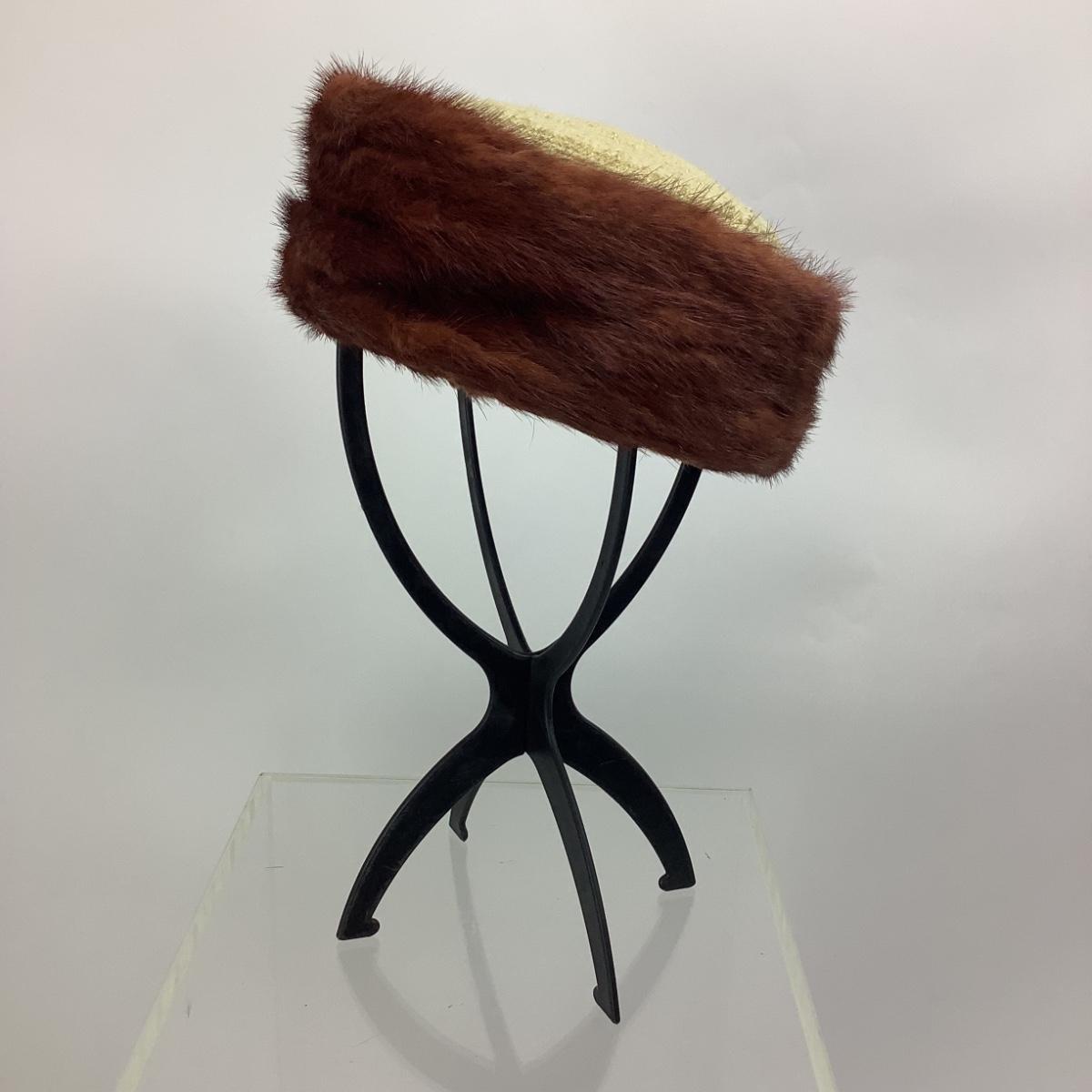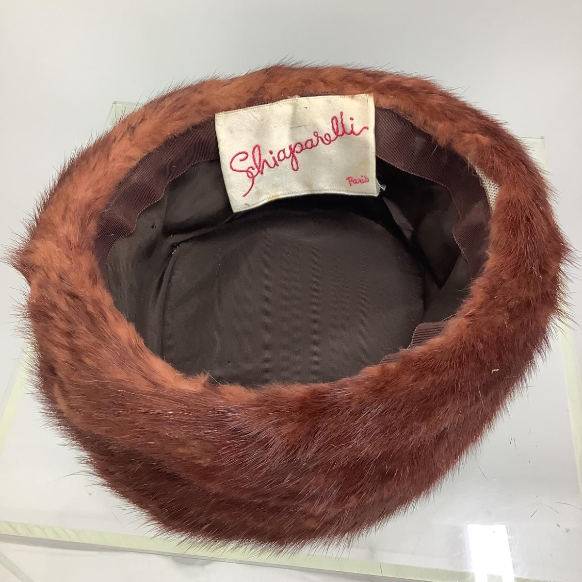 Lot 685 Vintage Schiaparelli Paris Red/Brown Mink Rimmed Pill Box Hat