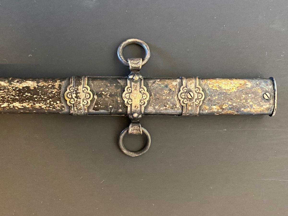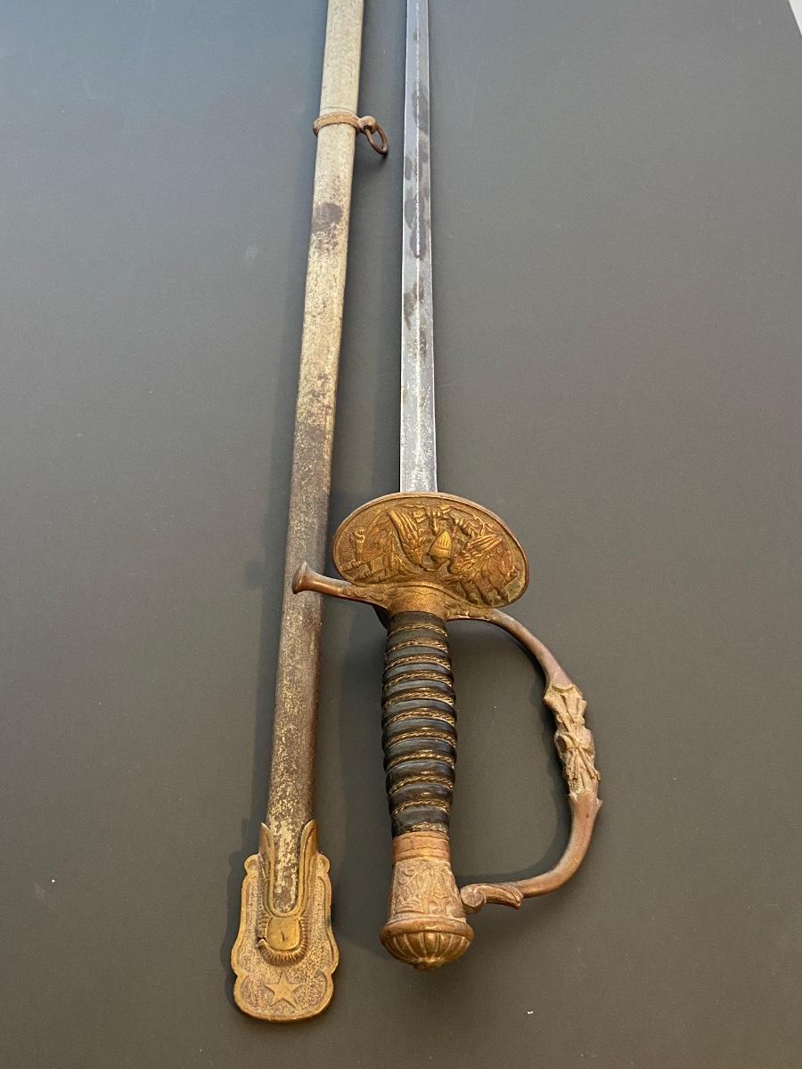Young & Hosley. Springfield Mass. Sword and scabbard. Please see all pictures as they are the best representation of the items. The pictures show condition, measurements if taken, and what is included in the lot. Due to the large amount that we photograph and the time frame, we are not always able to take measurements. All items unless noted, are pre-owned and have been used. If you purchased furniture, you must bring help. We do not allow one person to carry large furniture out on their own. Bring help, tools and a truck for the safety of our client’s homes, and your personal safety. Any damages that result to the property including walls, and floors due to moving of the furniture will be charged to the buyer. Company policy. Thank you.