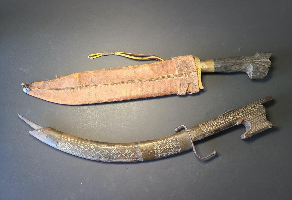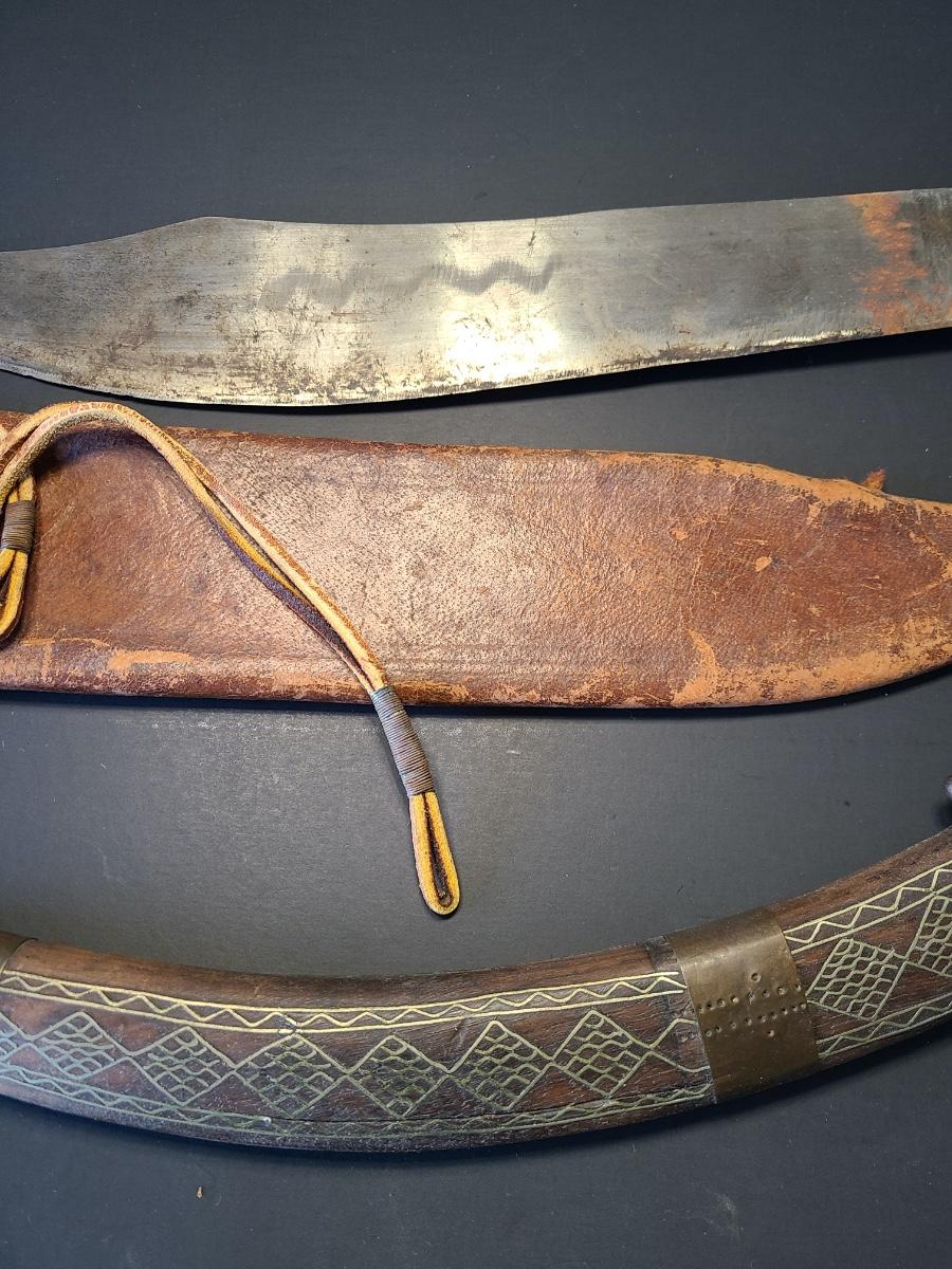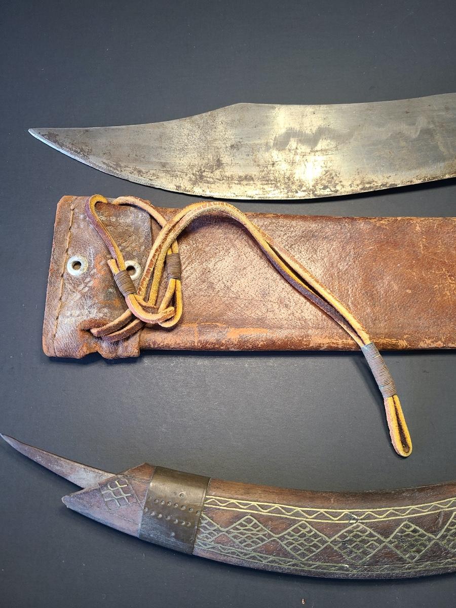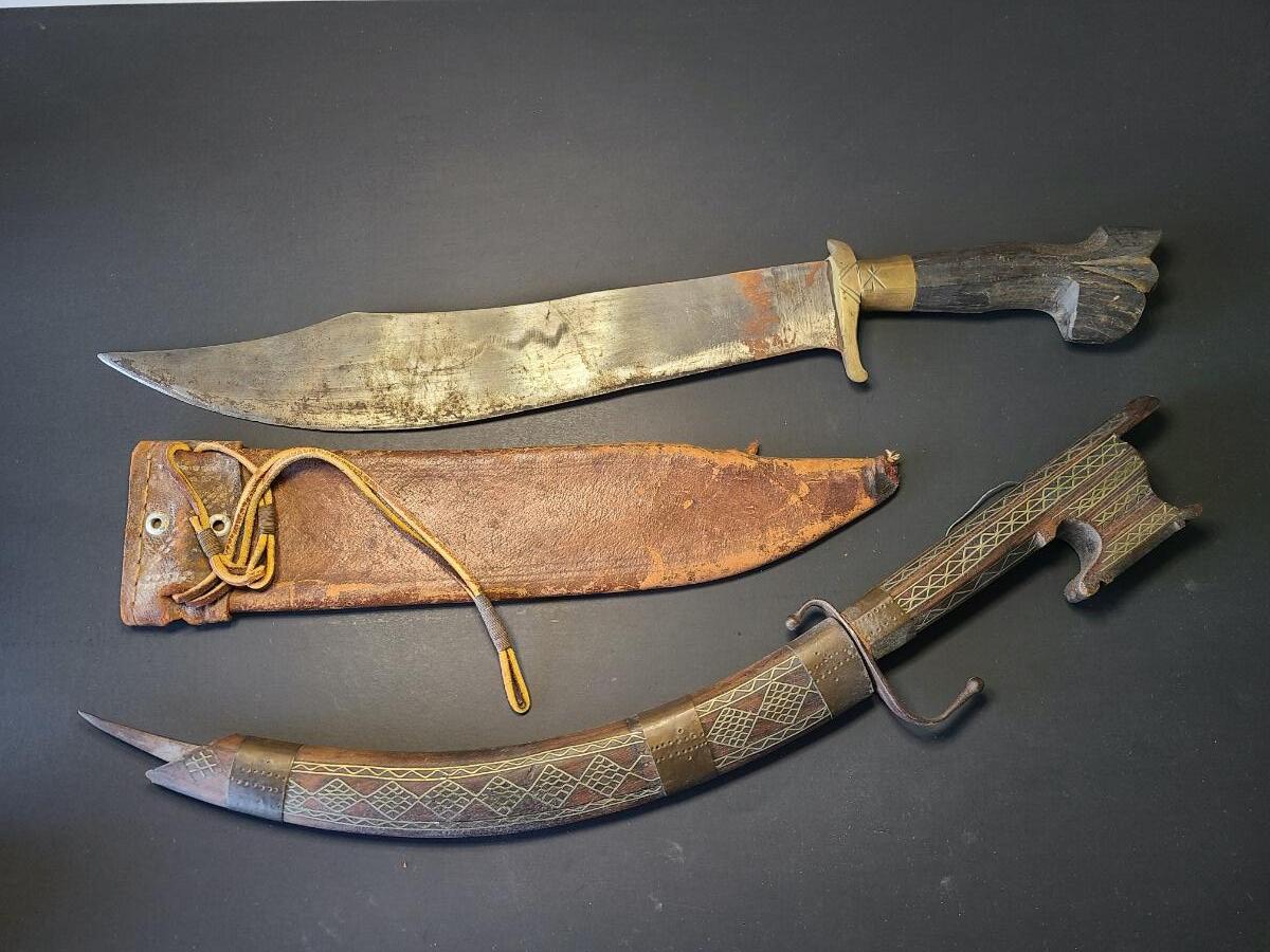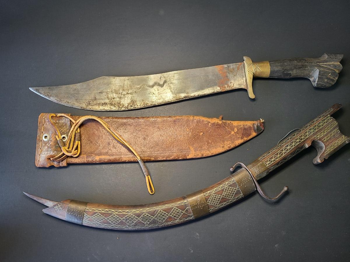 LOT 24: Vintage Philippine Negrito Bolo Knife & Wooden Sheathed Tribal Knife