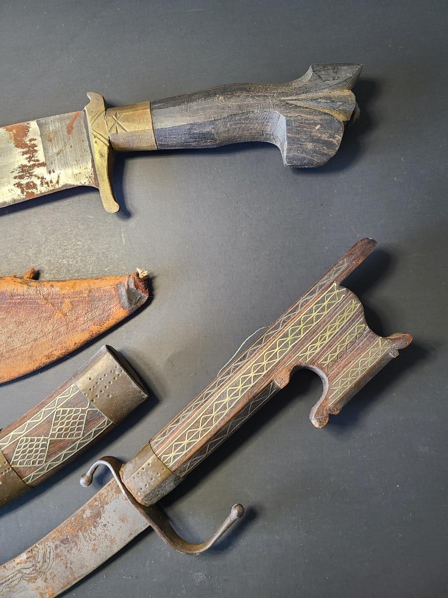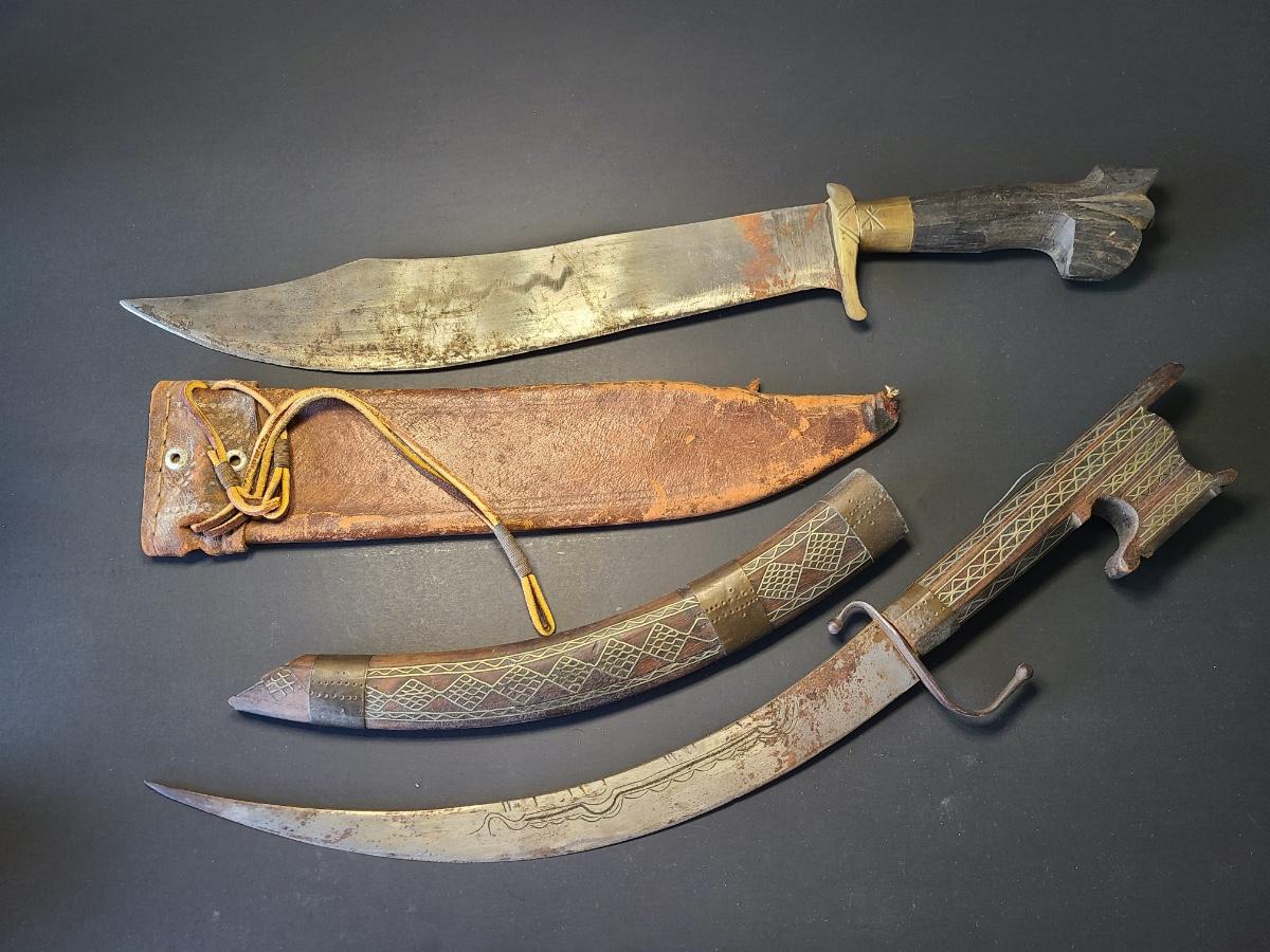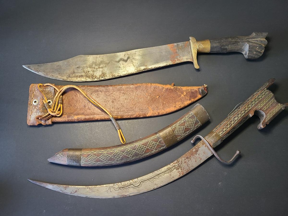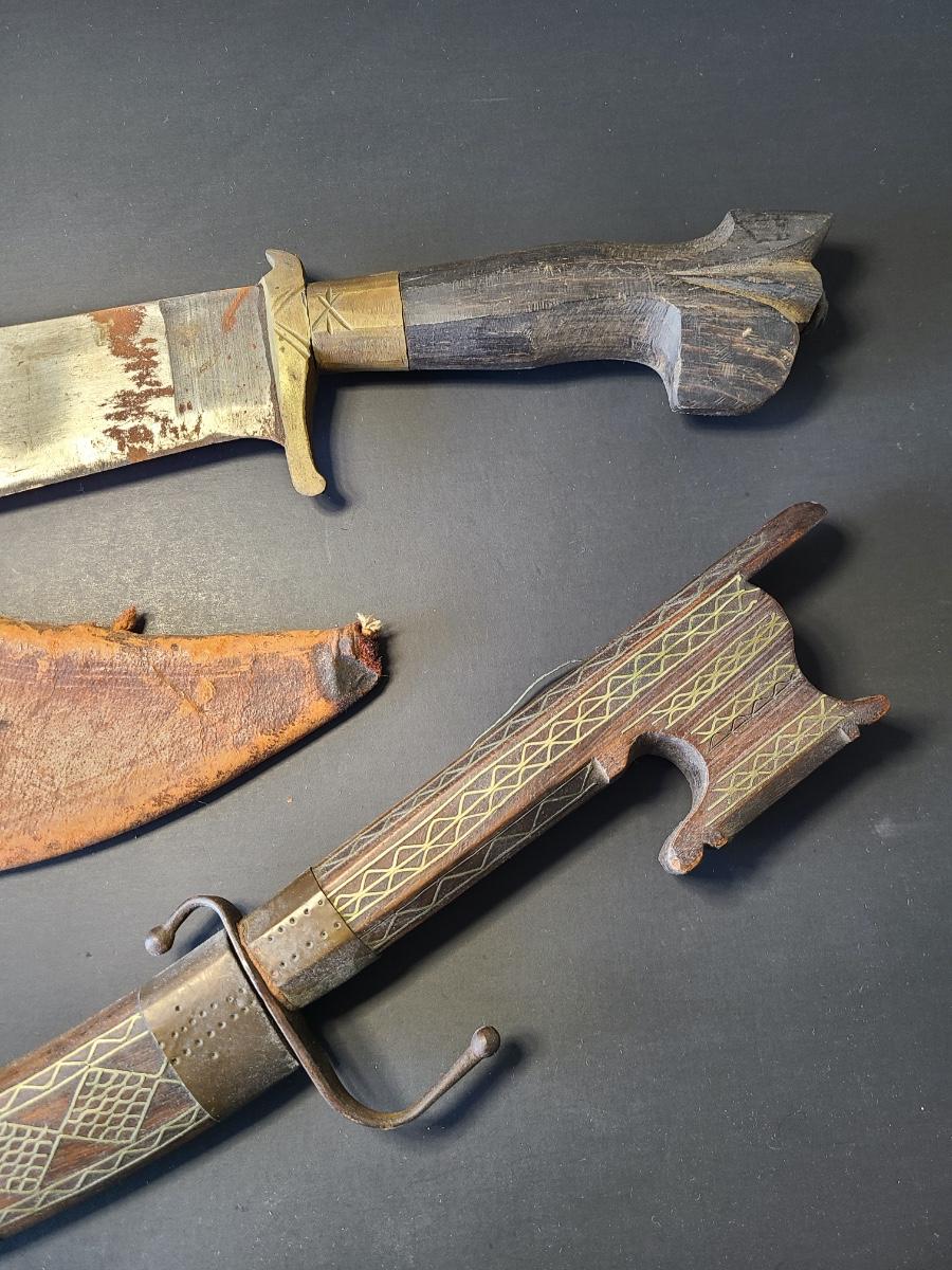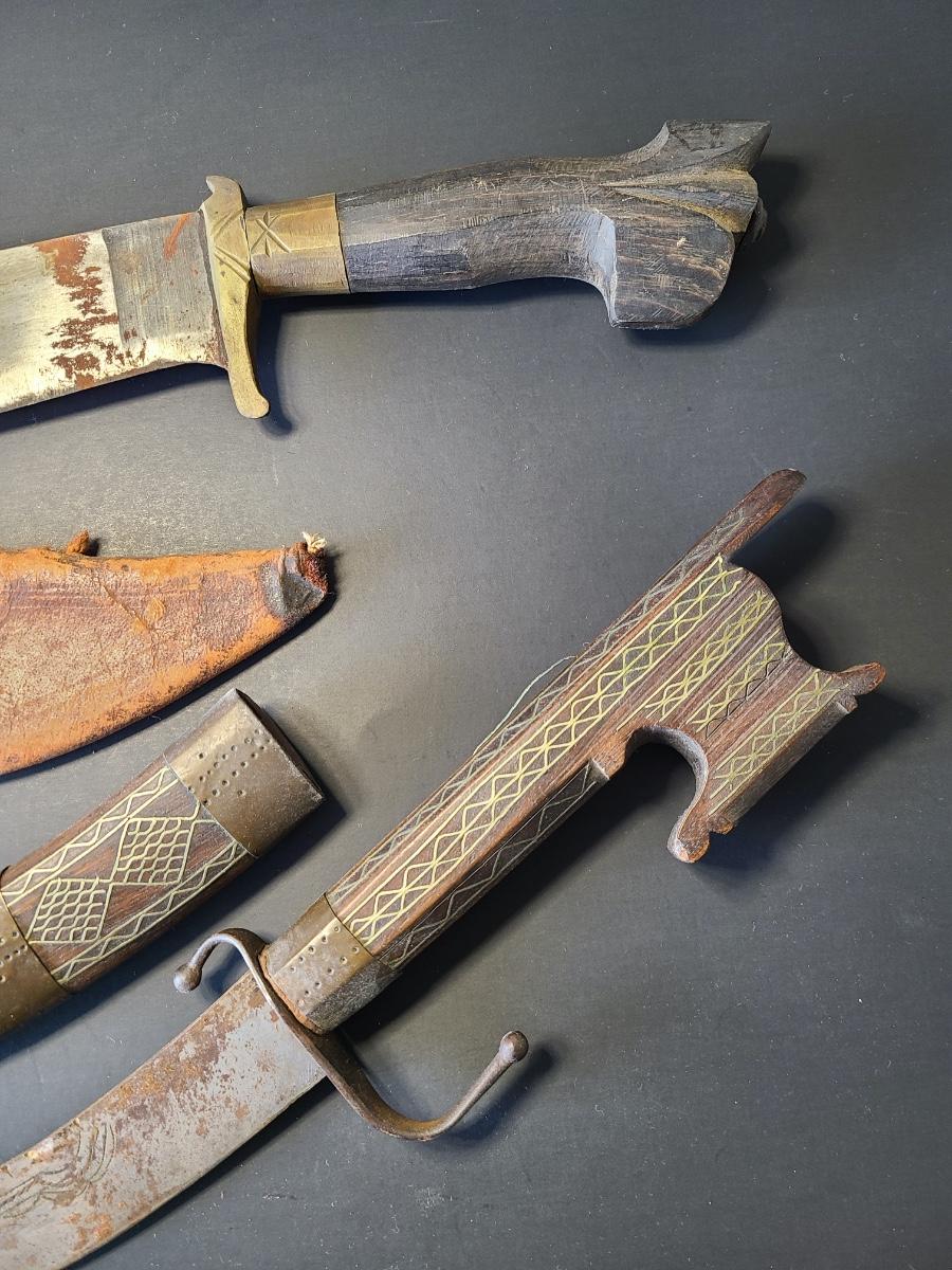 LOT 24: Vintage Philippine Negrito Bolo Knife & Wooden Sheathed Tribal Knife