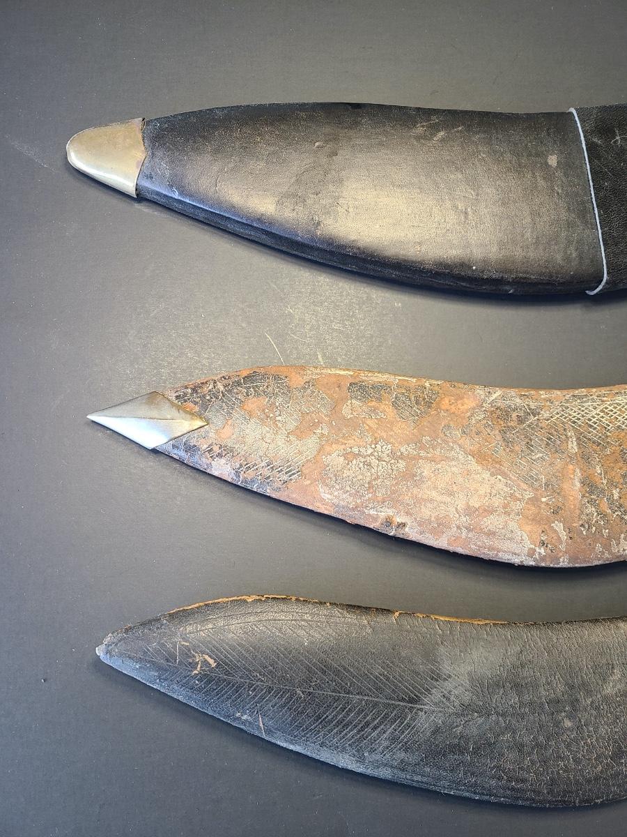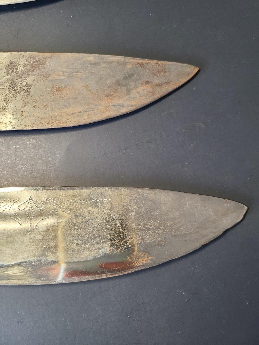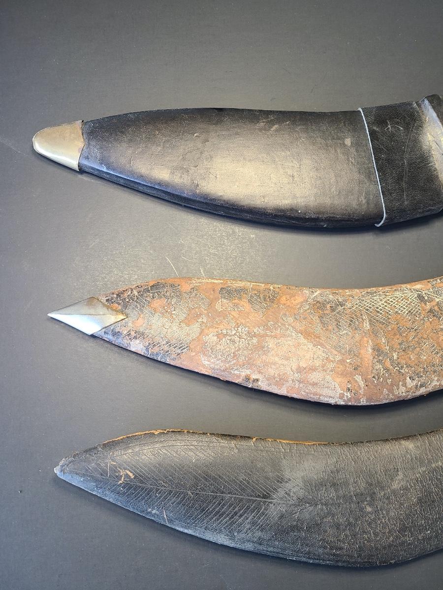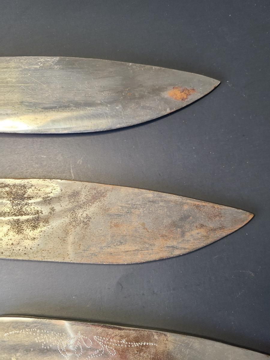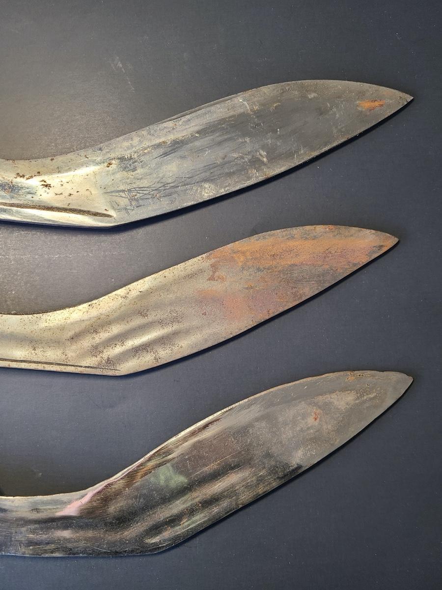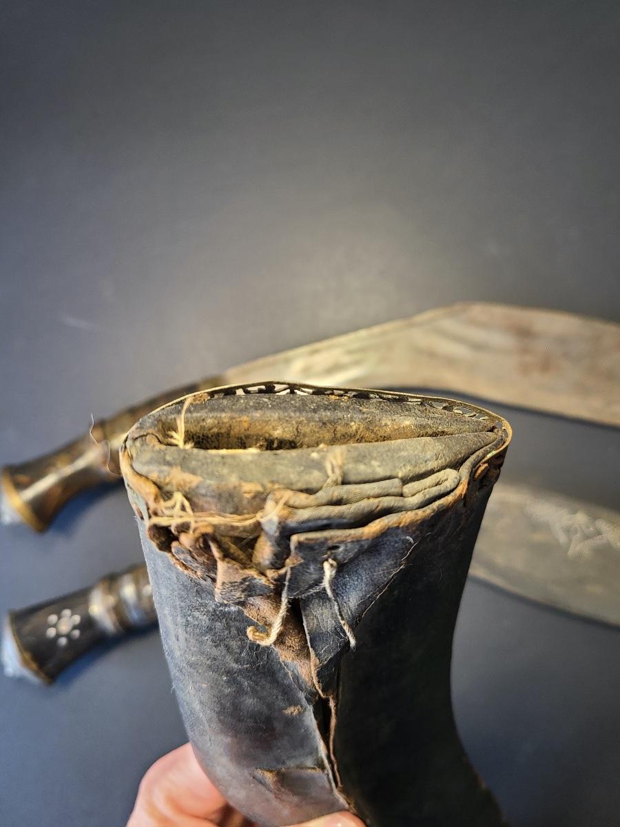 Vintage Kukri knives from the Indian subcontinent, traditionally uses as a machete multipurpose tool as a weapon or as a cutting tool in South Asia. One is marked India. Please see all pictures as they are the best representation of the items. The pictures show condition, measurements if taken, and what is included in the lot. Due to the large amount that we photograph and the time frame, we are not always able to take measurements. All items unless noted, are pre-owned and have been used. If you purchased furniture, you must bring help. We do not allow one person to carry large furniture out on their own. Bring help, tools and a truck for the safety of our client’s homes, and your personal safety. Any damages that result to the property including walls, and floors due to moving of the furniture will be charged to the buyer. Company policy. Thank you.