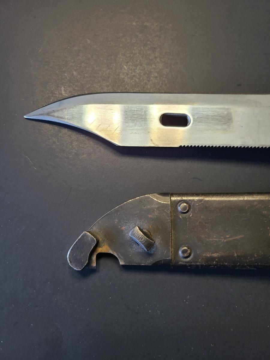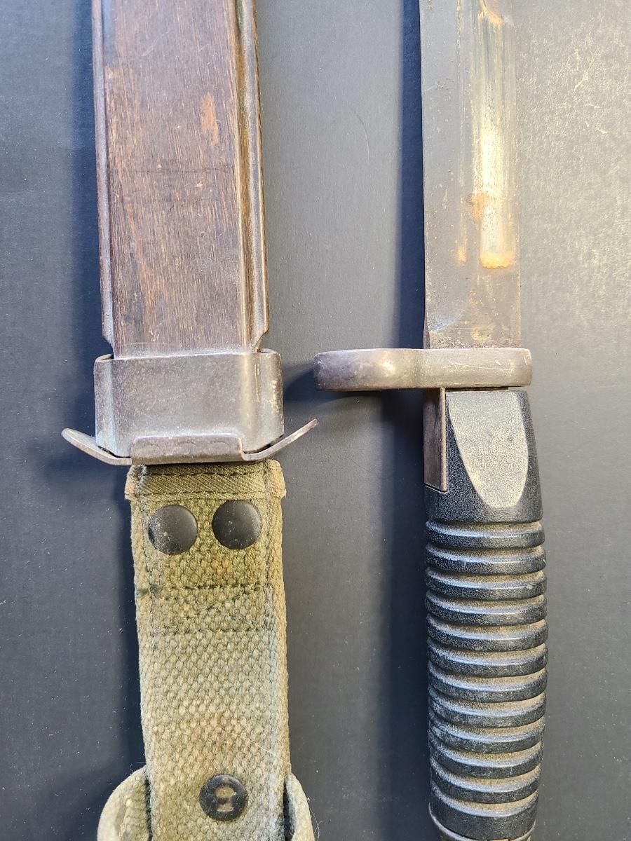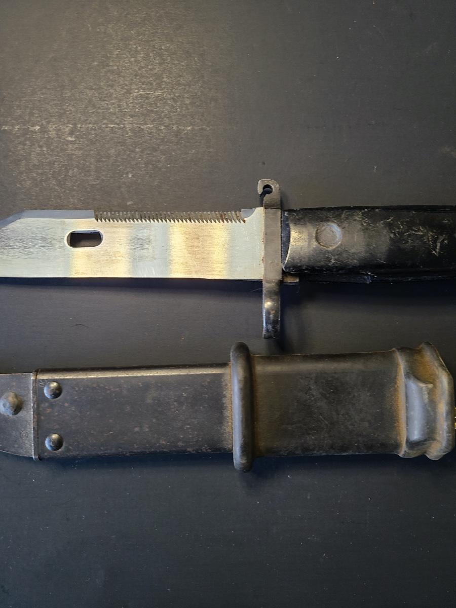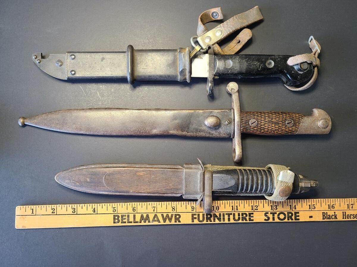 Three different vintage bayonets with sheaths. One is listed as a tactical knife as well. Please see all pictures as they are the best representation of the items. The pictures show condition, measurements if taken, and what is included in the lot. Due to the large amount that we photograph and the time frame, we are not always able to take measurements. All items unless noted, are pre-owned and have been used. If you purchased furniture, you must bring help. We do not allow one person to carry large furniture out on their own. Bring help, tools and a truck for the safety of our client’s homes, and your personal safety. Any damages that result to the property including walls, and floors due to moving of the furniture will be charged to the buyer. Company policy. Thank you.
