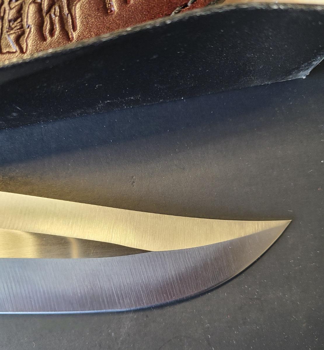 This comes with box and sheath. The box does show wear, the blade does not. Please see all pictures as they are the best representation of the items. The pictures show condition, measurements if taken, and what is included in the lot. Due to the large amount that we photograph and the time frame, we are not always able to take measurements. All items unless noted, are pre-owned and have been used. If you purchased furniture, you must bring help. We do not allow one person to carry large furniture out on their own. Bring help, tools and a truck for the safety of our client’s homes, and your personal safety. Any damages that result to the property including walls, and floors due to moving of the furniture will be charged to the buyer. Company policy. Thank you.