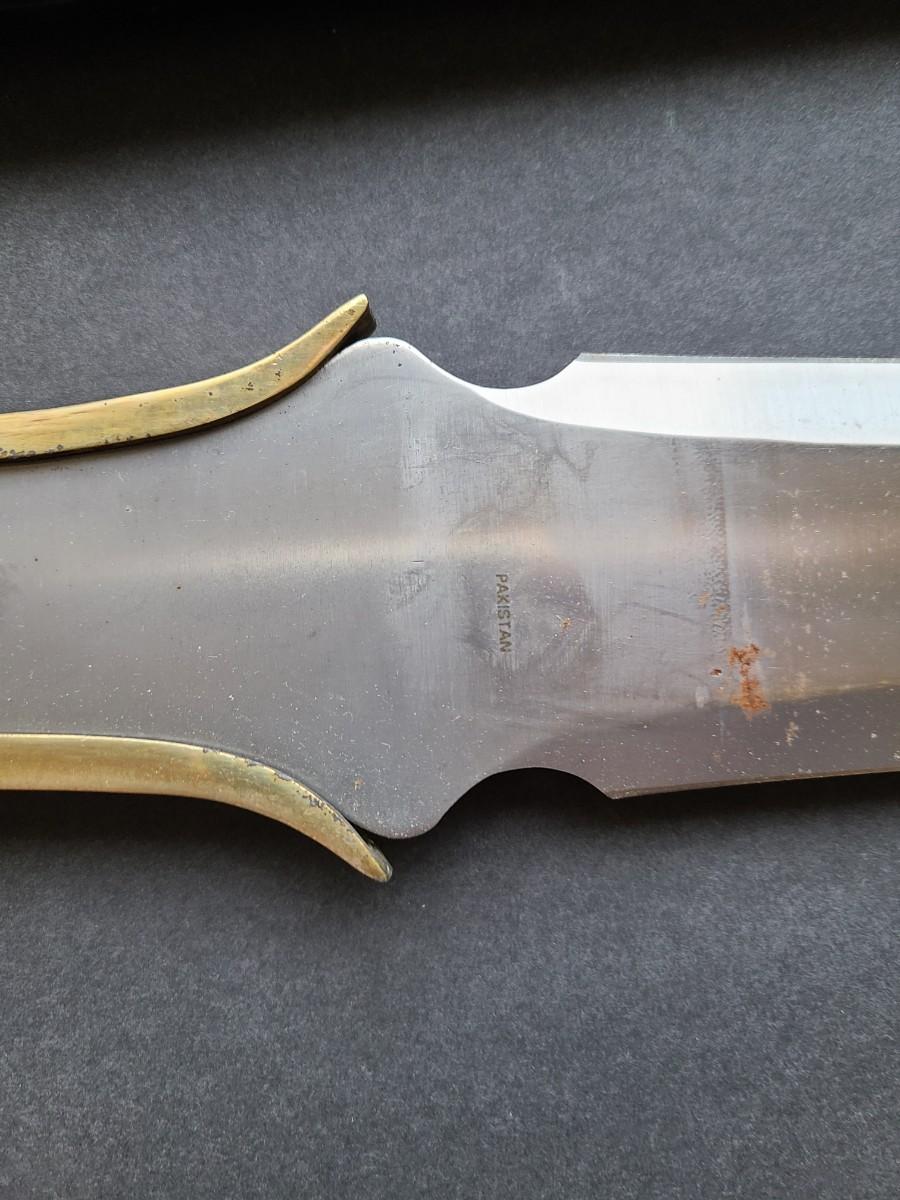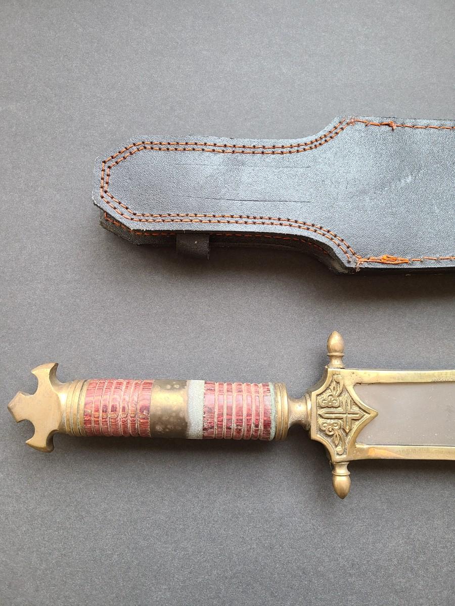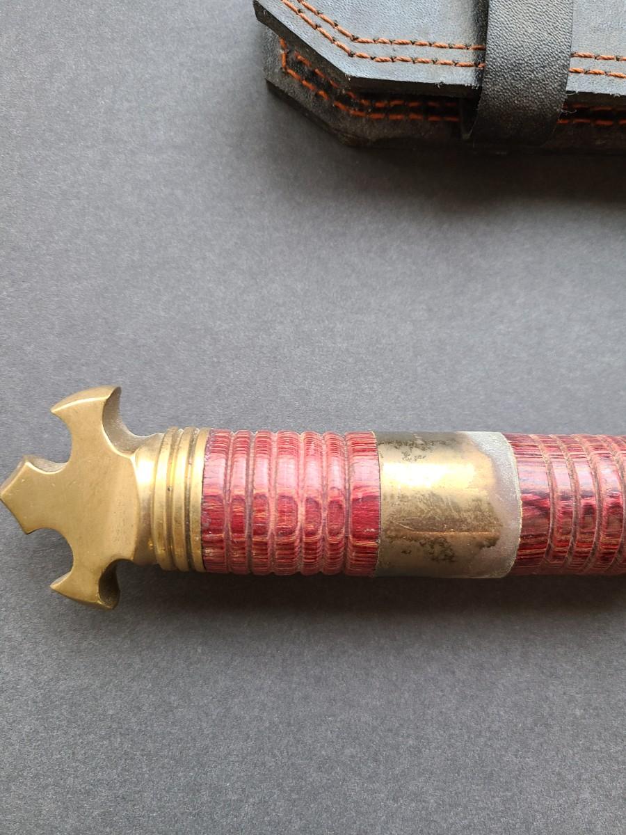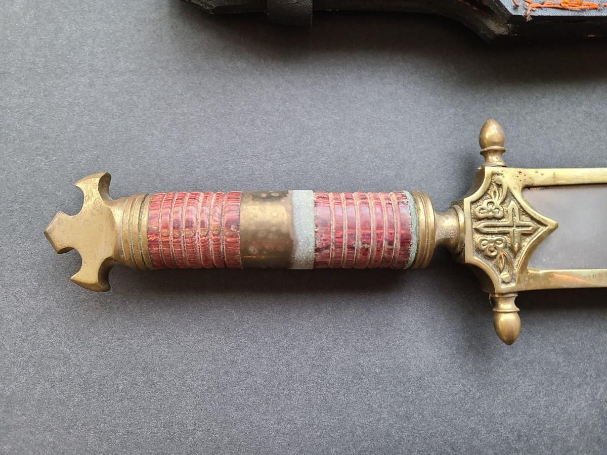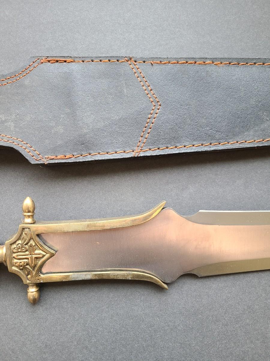 LOT 40: Stainless Steel Short Blade Sword Made in Pakistan (Brass & Wood, Cross Emblem)