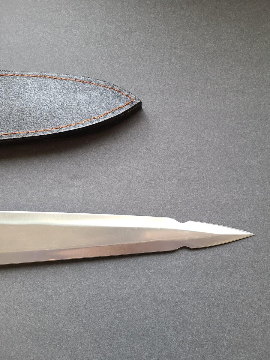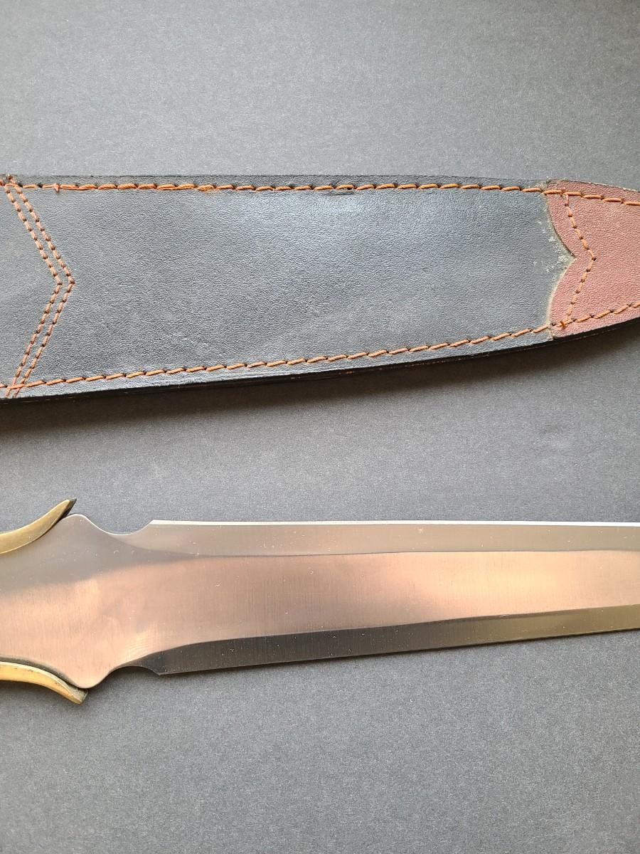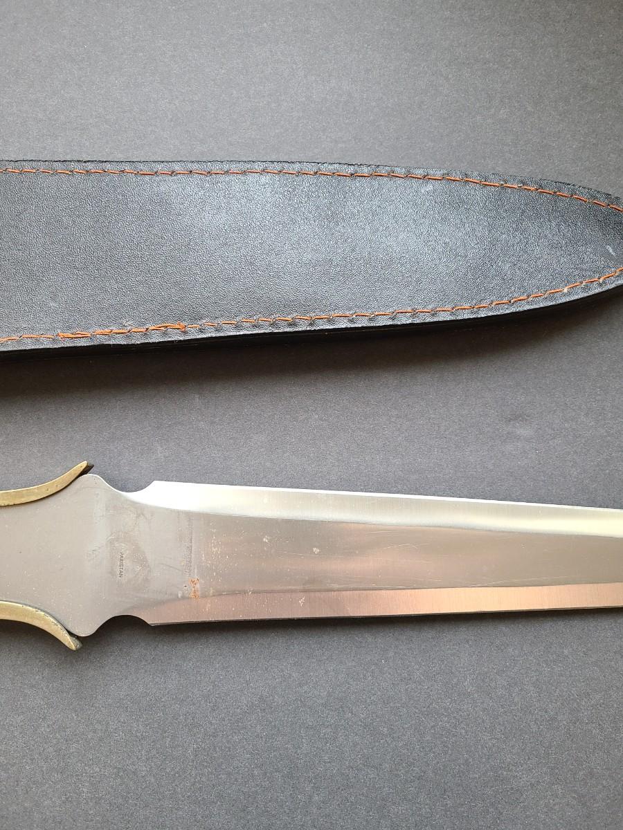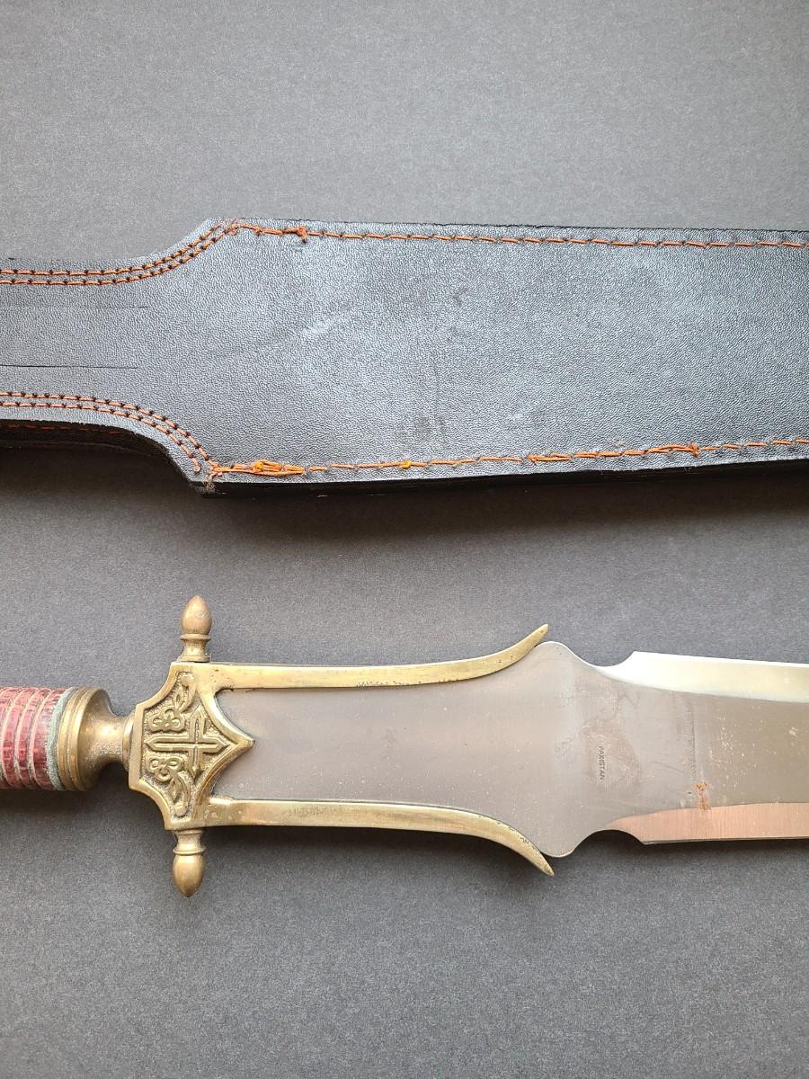 LOT 40: Stainless Steel Short Blade Sword Made in Pakistan (Brass & Wood, Cross Emblem)