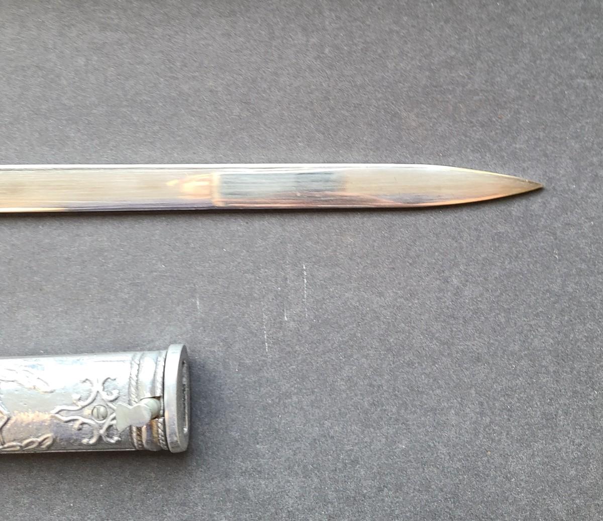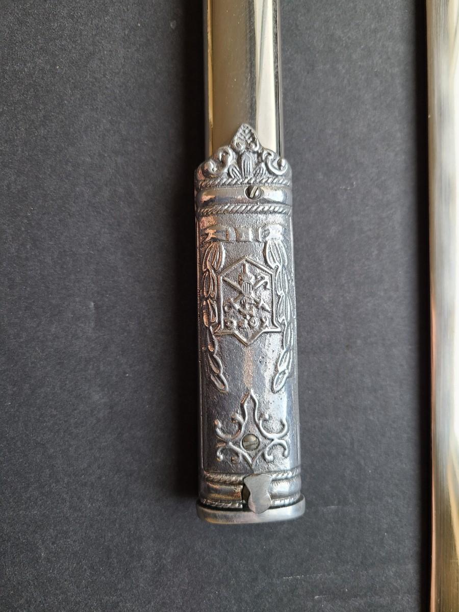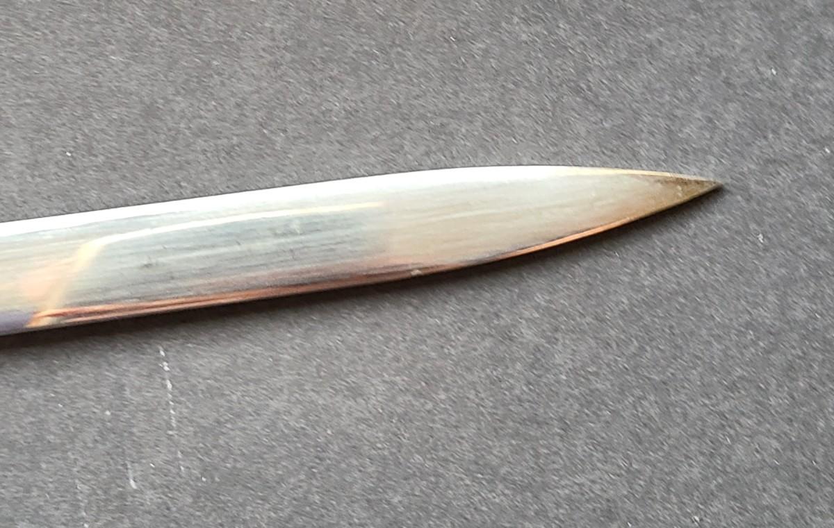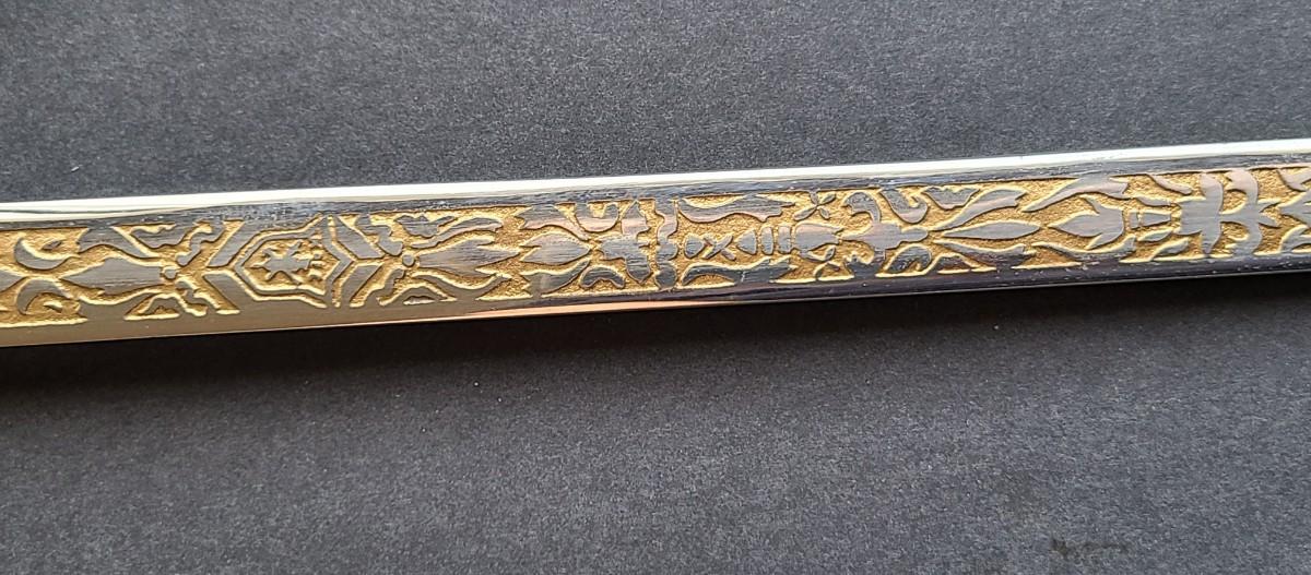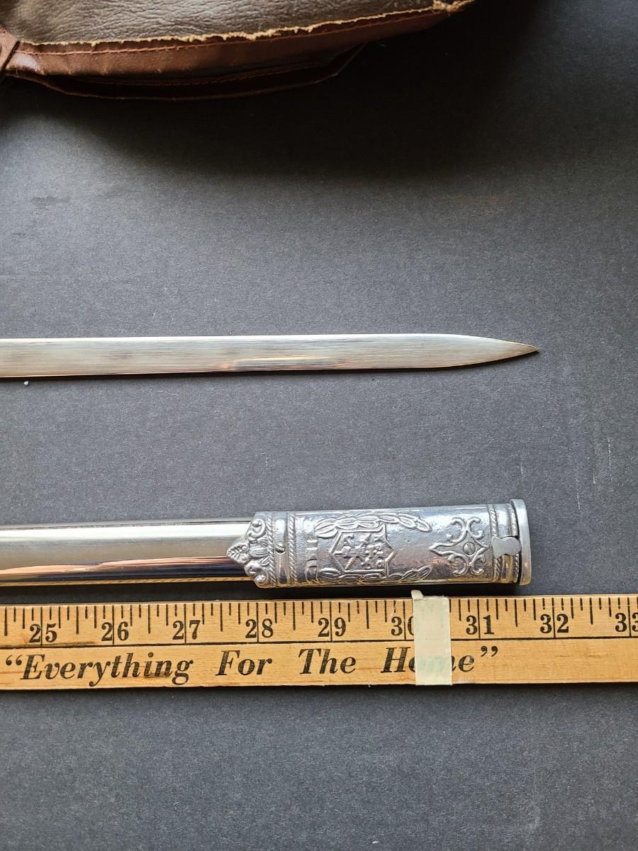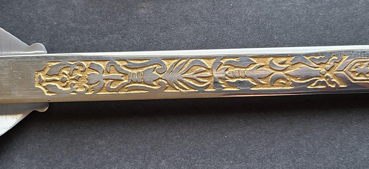 With the head facing forward, this is a newer present day sword, and the blade is not marked with a name except for KofC. Please see all pictures as they are the best representation of the items. The pictures show condition, measurements if taken, and what is included in the lot. Due to the large amount that we photograph and the time frame, we are not always able to take measurements. All items unless noted, are pre-owned and have been used. If you purchased furniture, you must bring help. We do not allow one person to carry large furniture out on their own. Bring help, tools and a truck for the safety of our client’s homes, and your personal safety. Any damages that result to the property including walls, and floors due to moving of the furniture will be charged to the buyer. Company policy. Thank you.