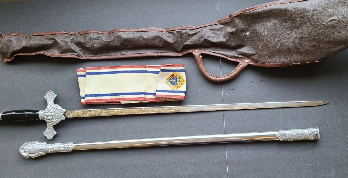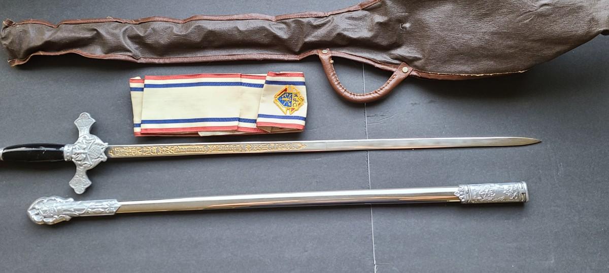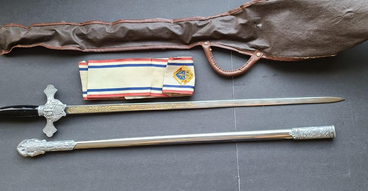 LOT 49: Lynch & Kelly Knights of Columbus Sword w/Scabbard, Sash, and Carry Case