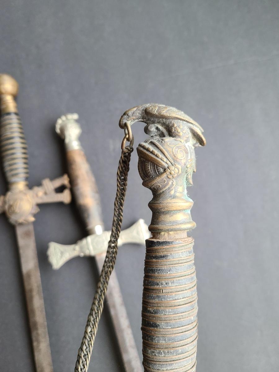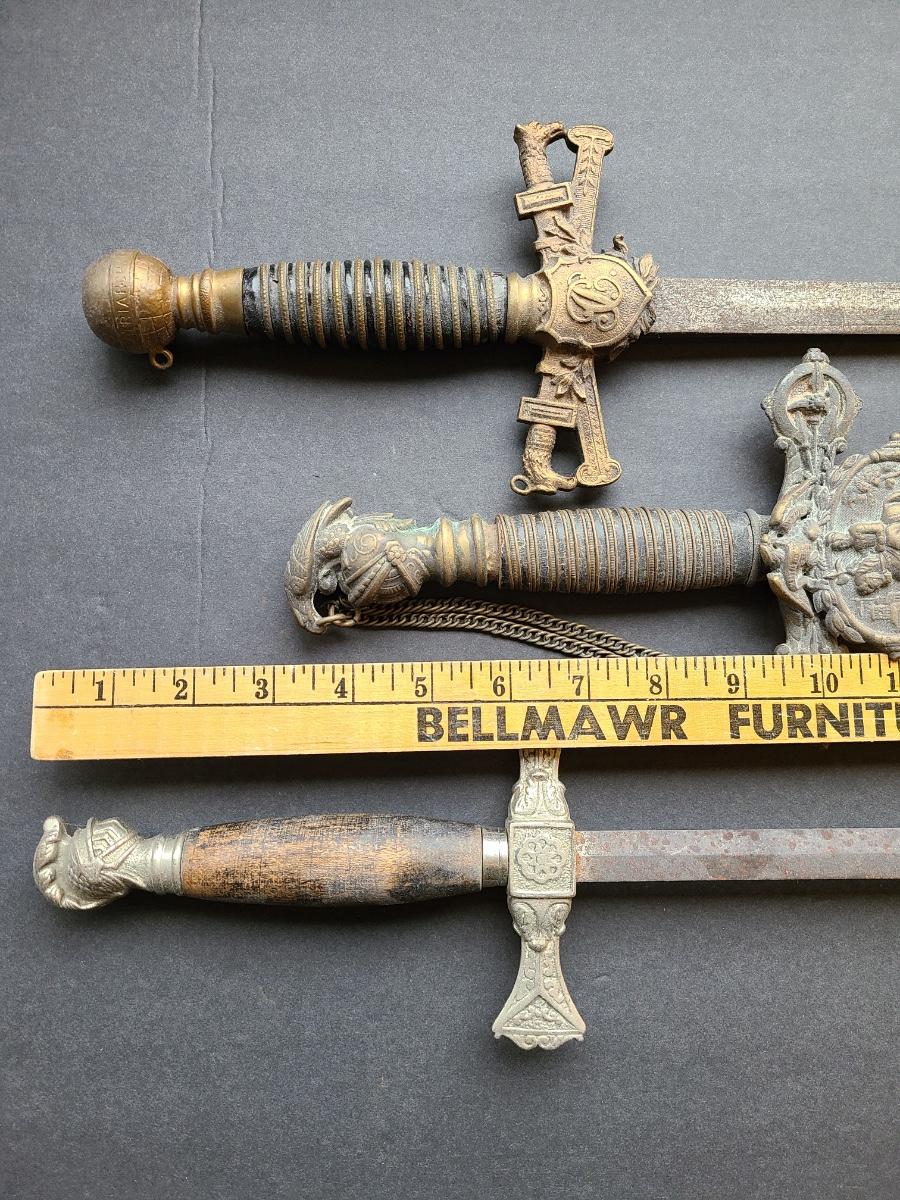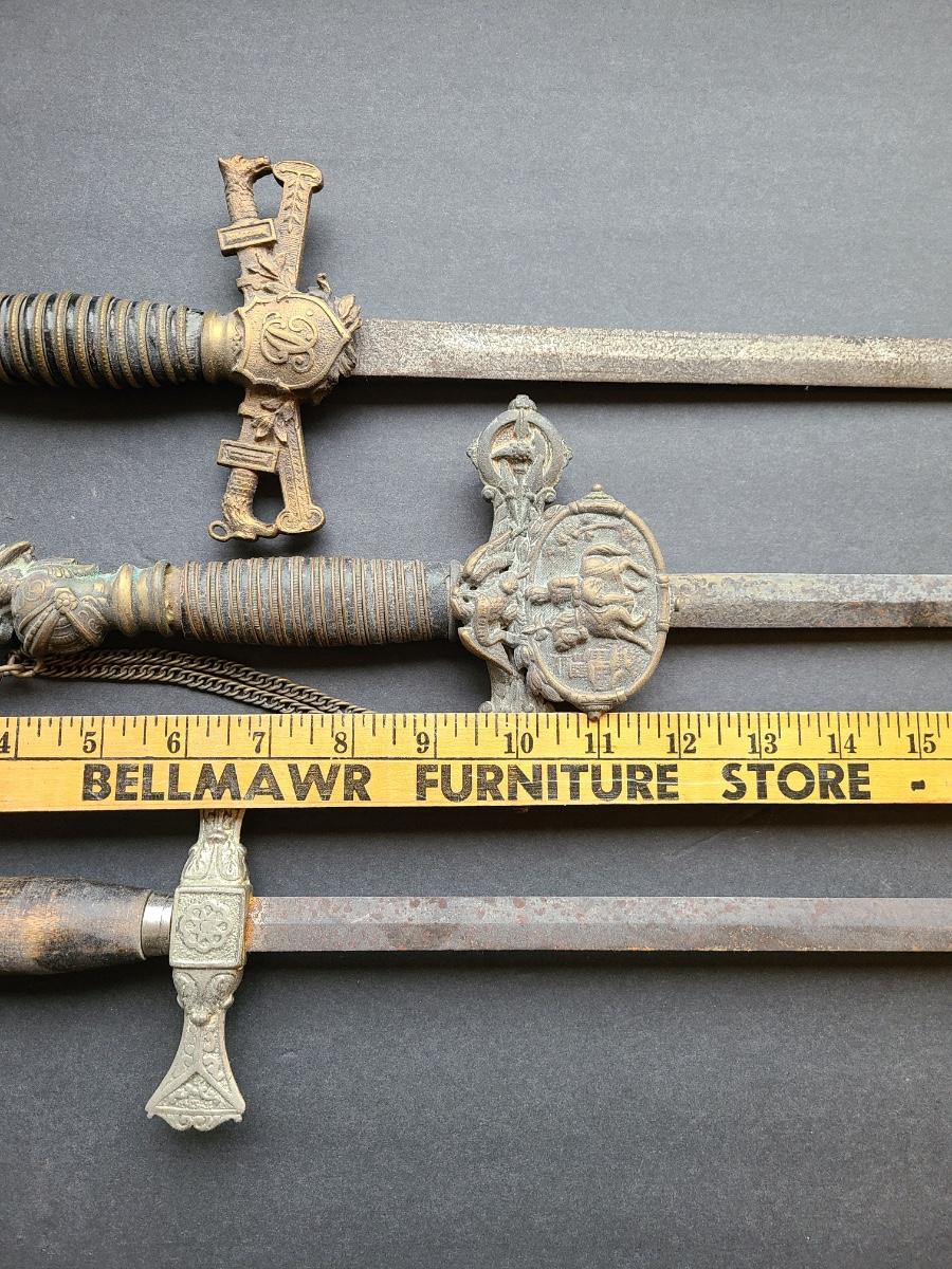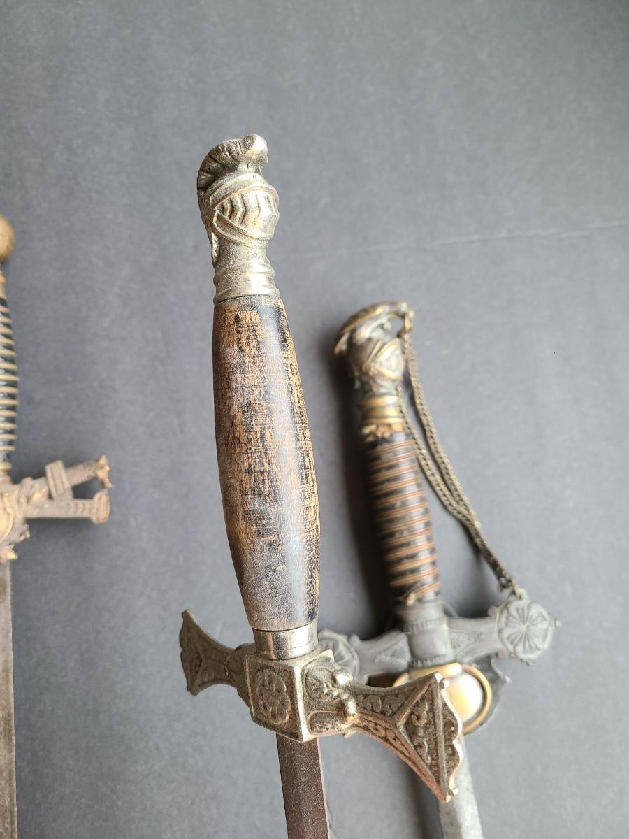 LOT 61S: Fraternal Swords, Two are as-is, One with Patriarch Circle Pommel (Wolf/Eagle on Guard)
