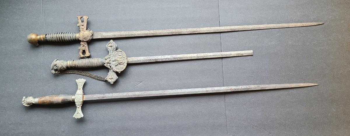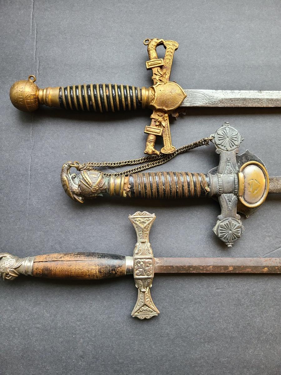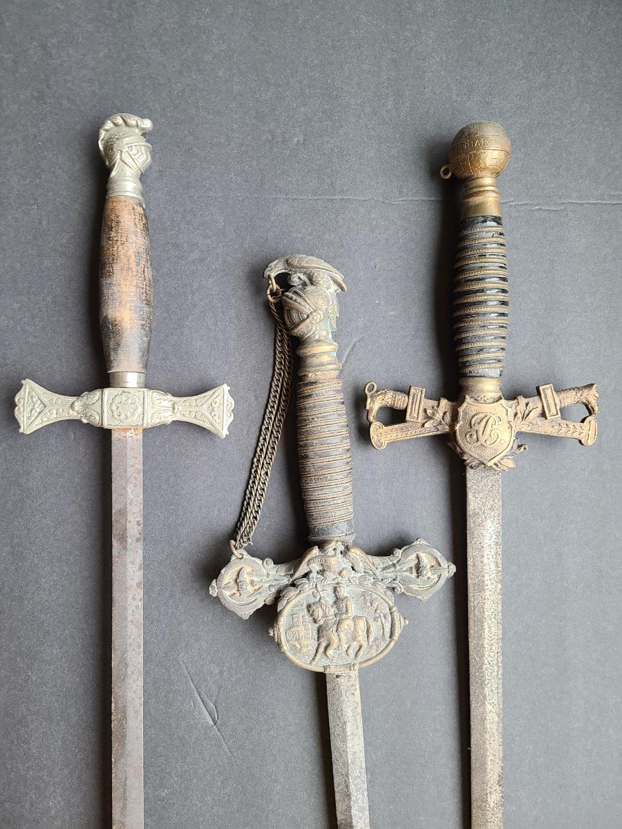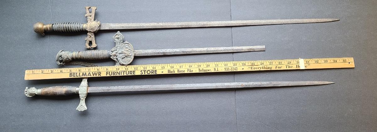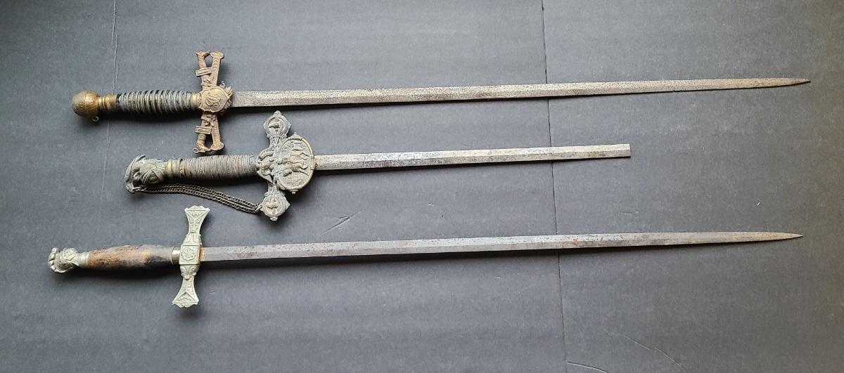 LOT 61S: Fraternal Swords, Two are as-is, One with Patriarch Circle Pommel (Wolf/Eagle on Guard)