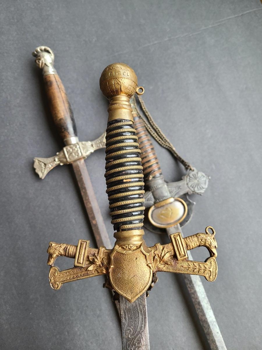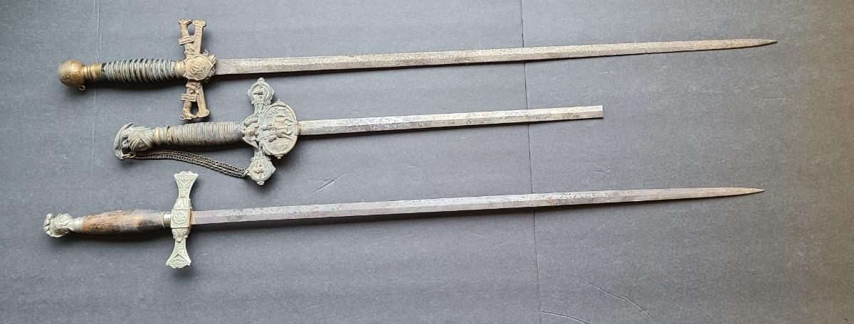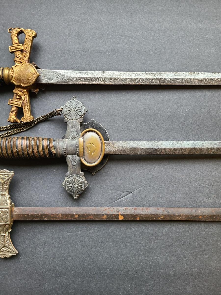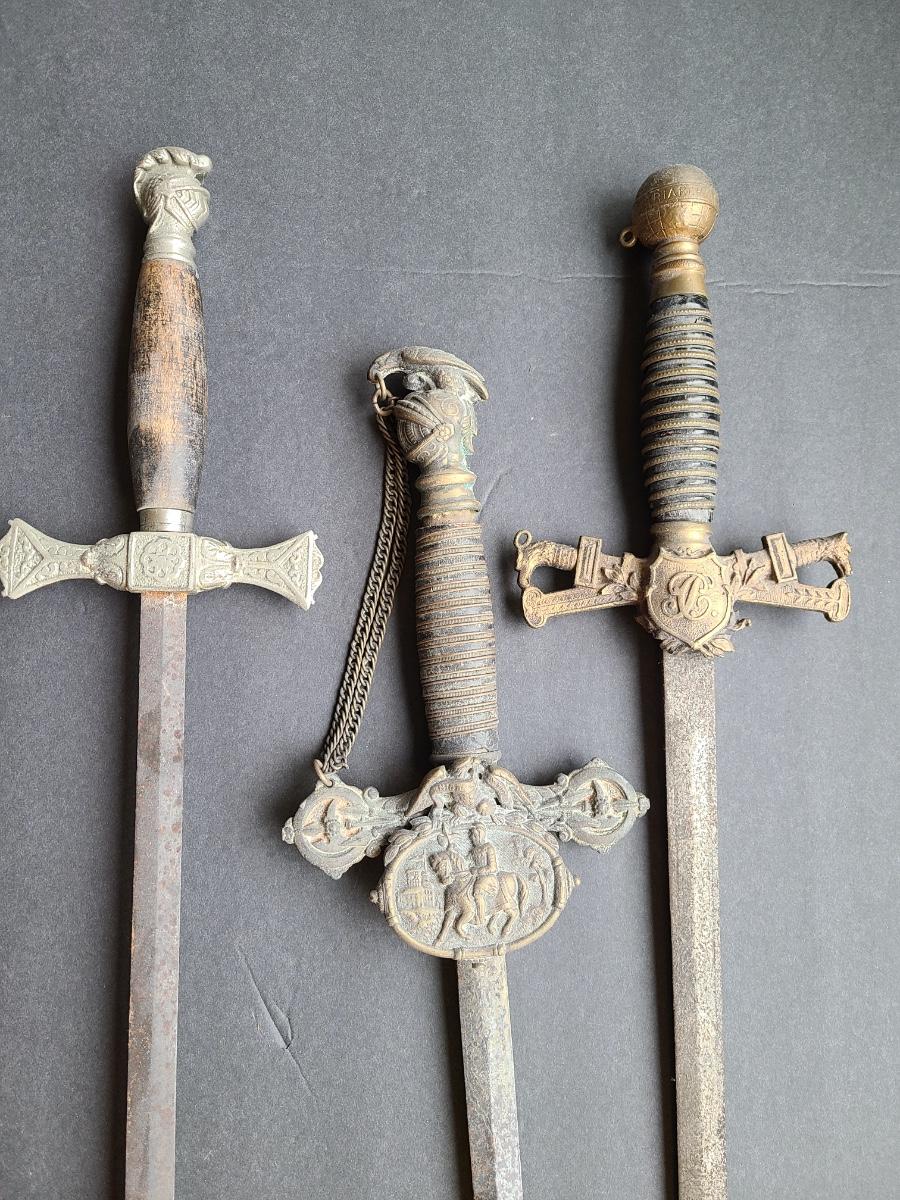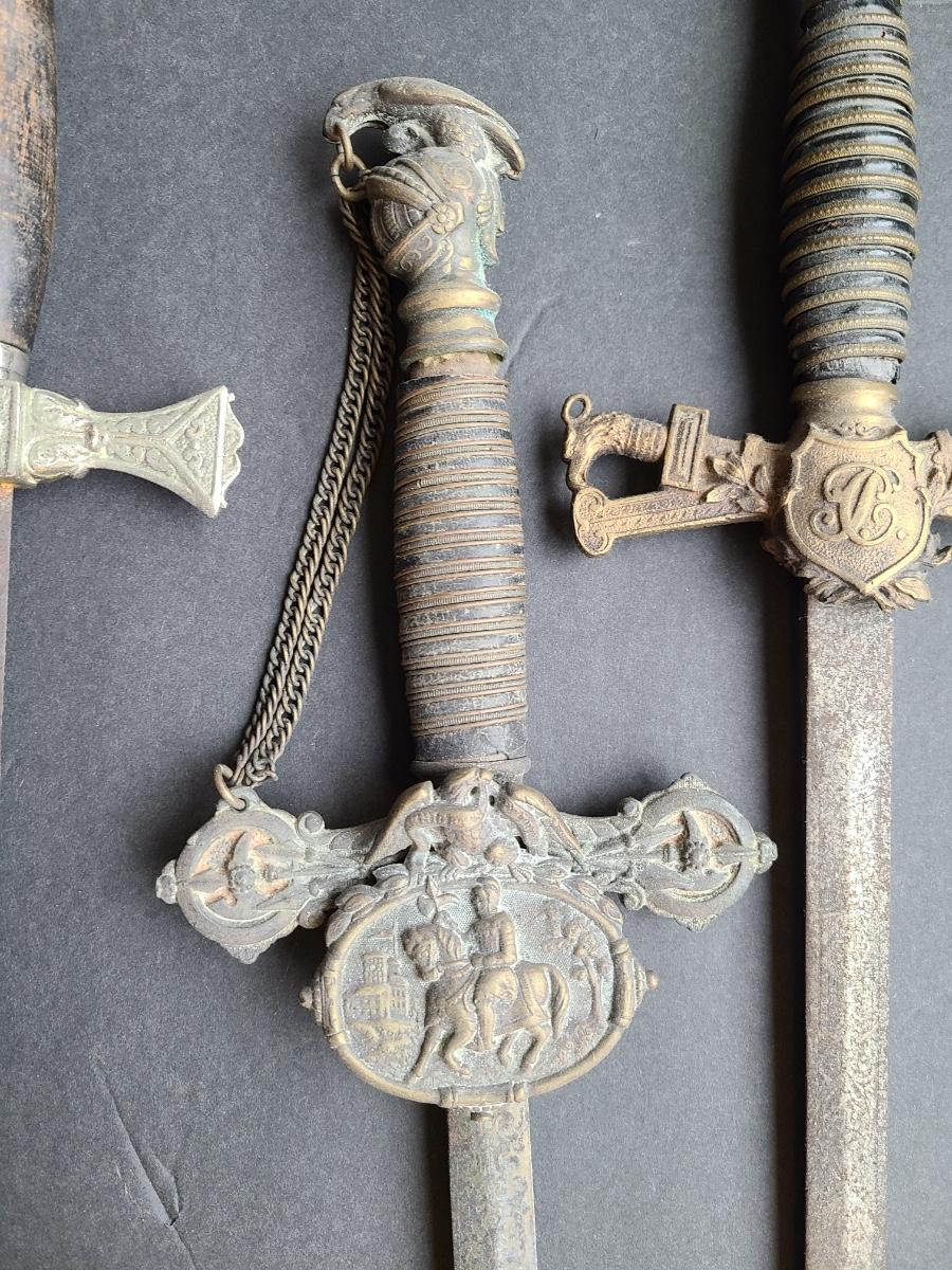 LOT 61S: Fraternal Swords, Two are as-is, One with Patriarch Circle Pommel (Wolf/Eagle on Guard)