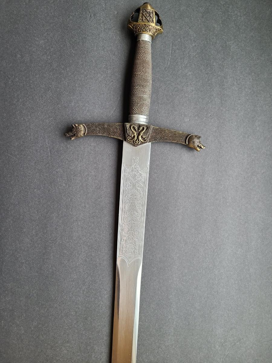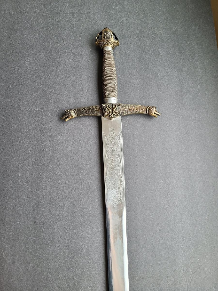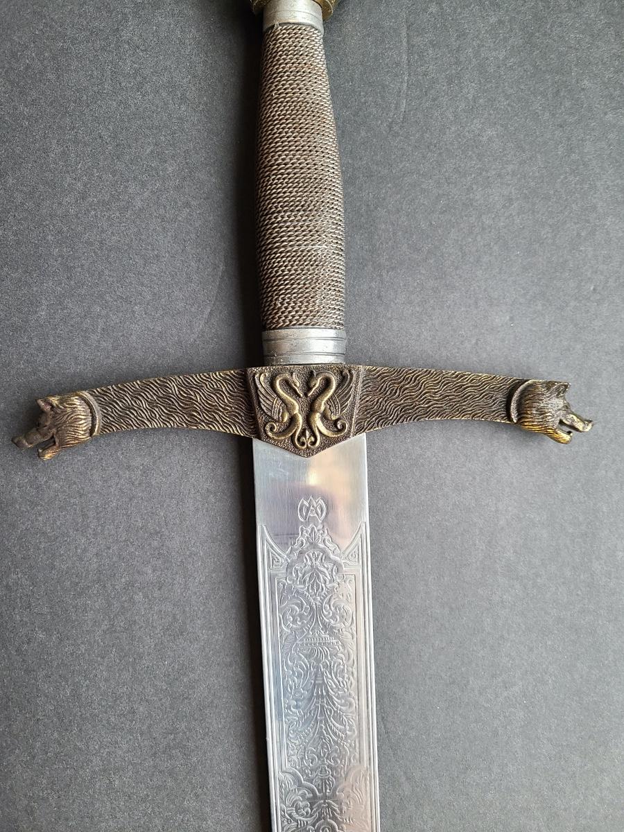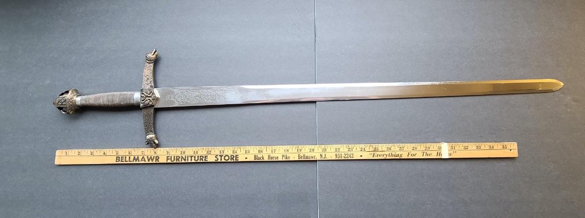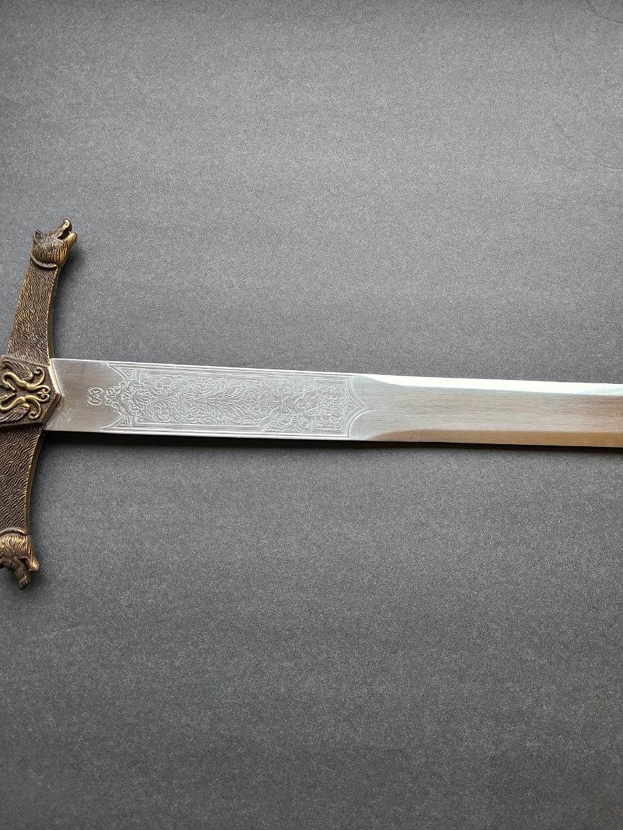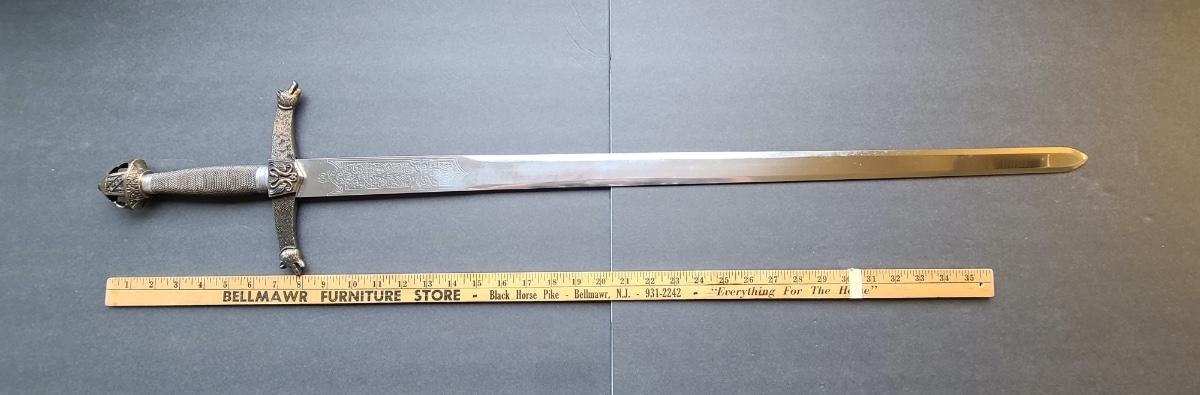 LOT 69S: Fantasy Stainless Steel Blade Sword w/Crown Pommel & Wolf Head Guards