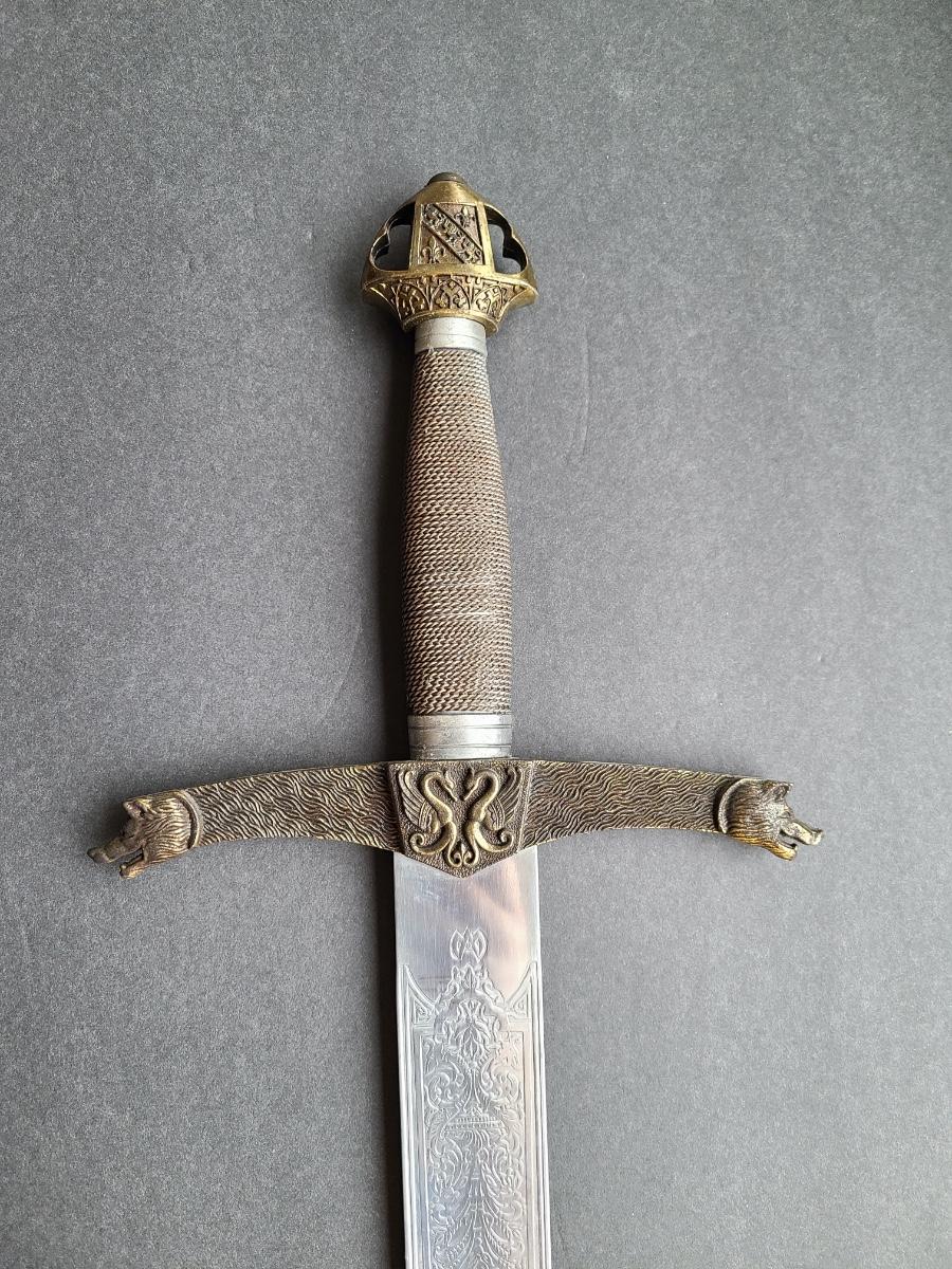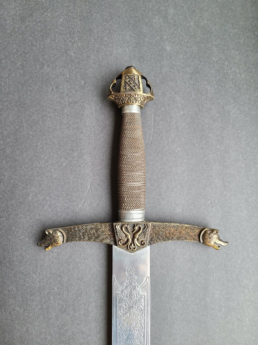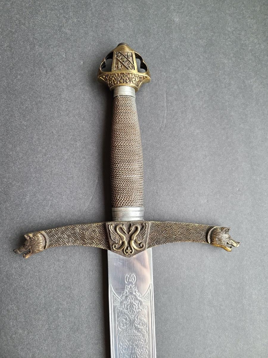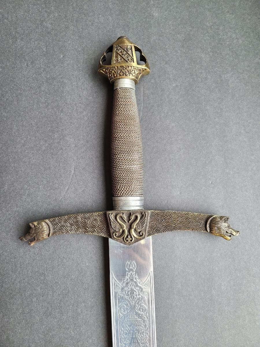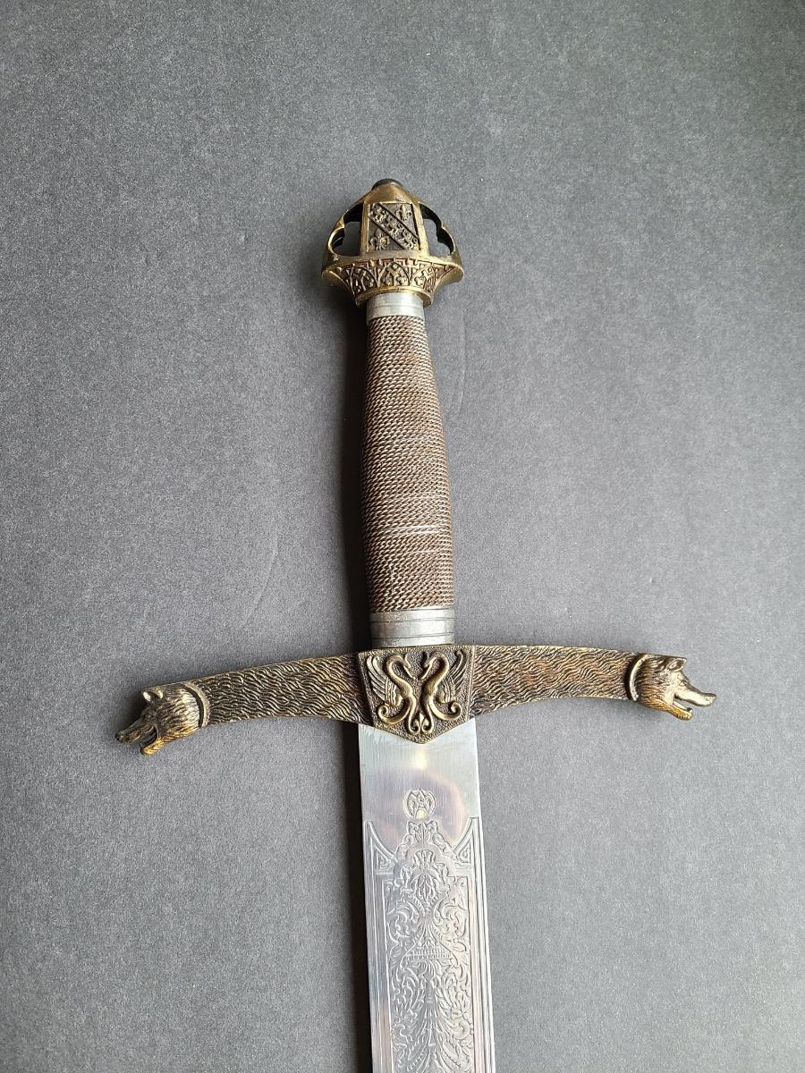 LOT 69S: Fantasy Stainless Steel Blade Sword w/Crown Pommel & Wolf Head Guards