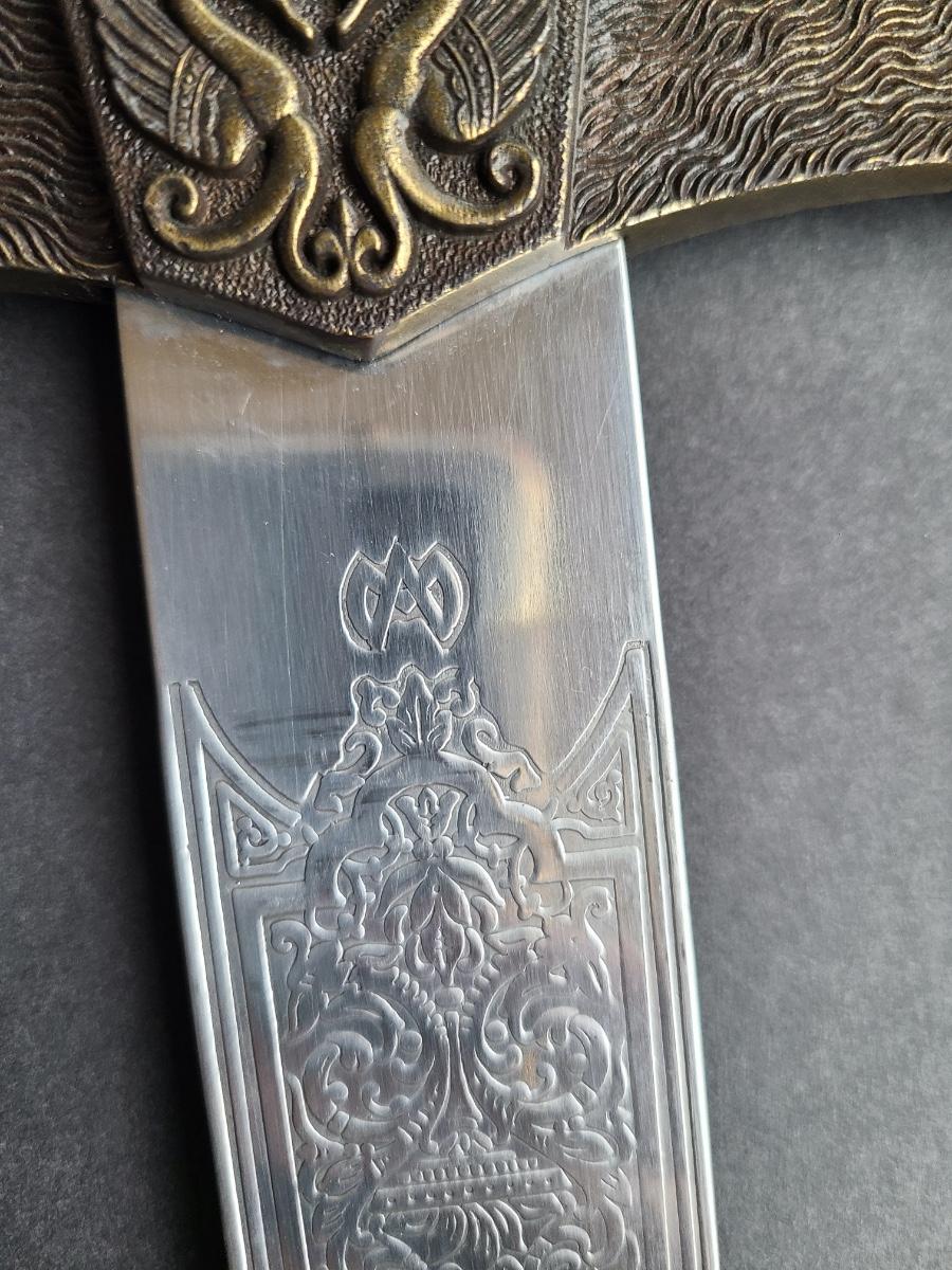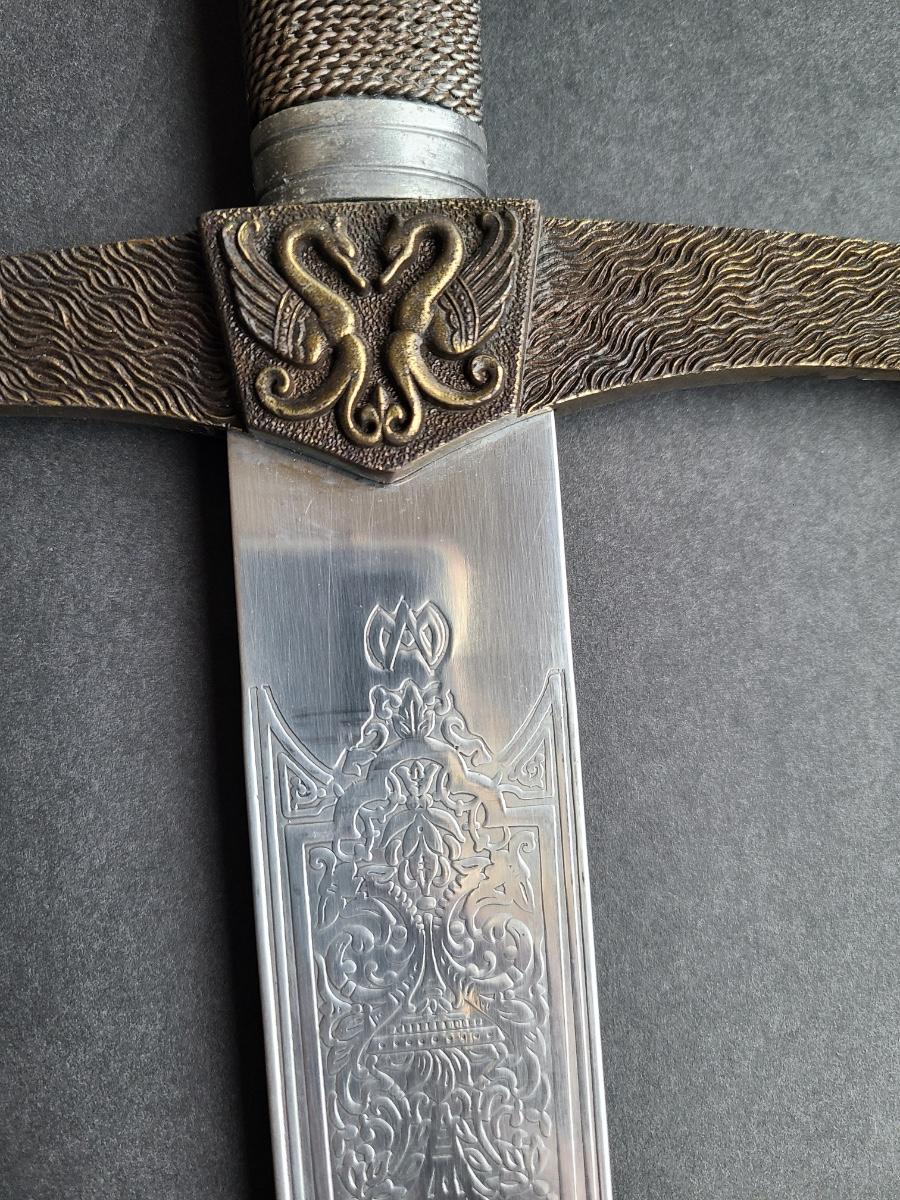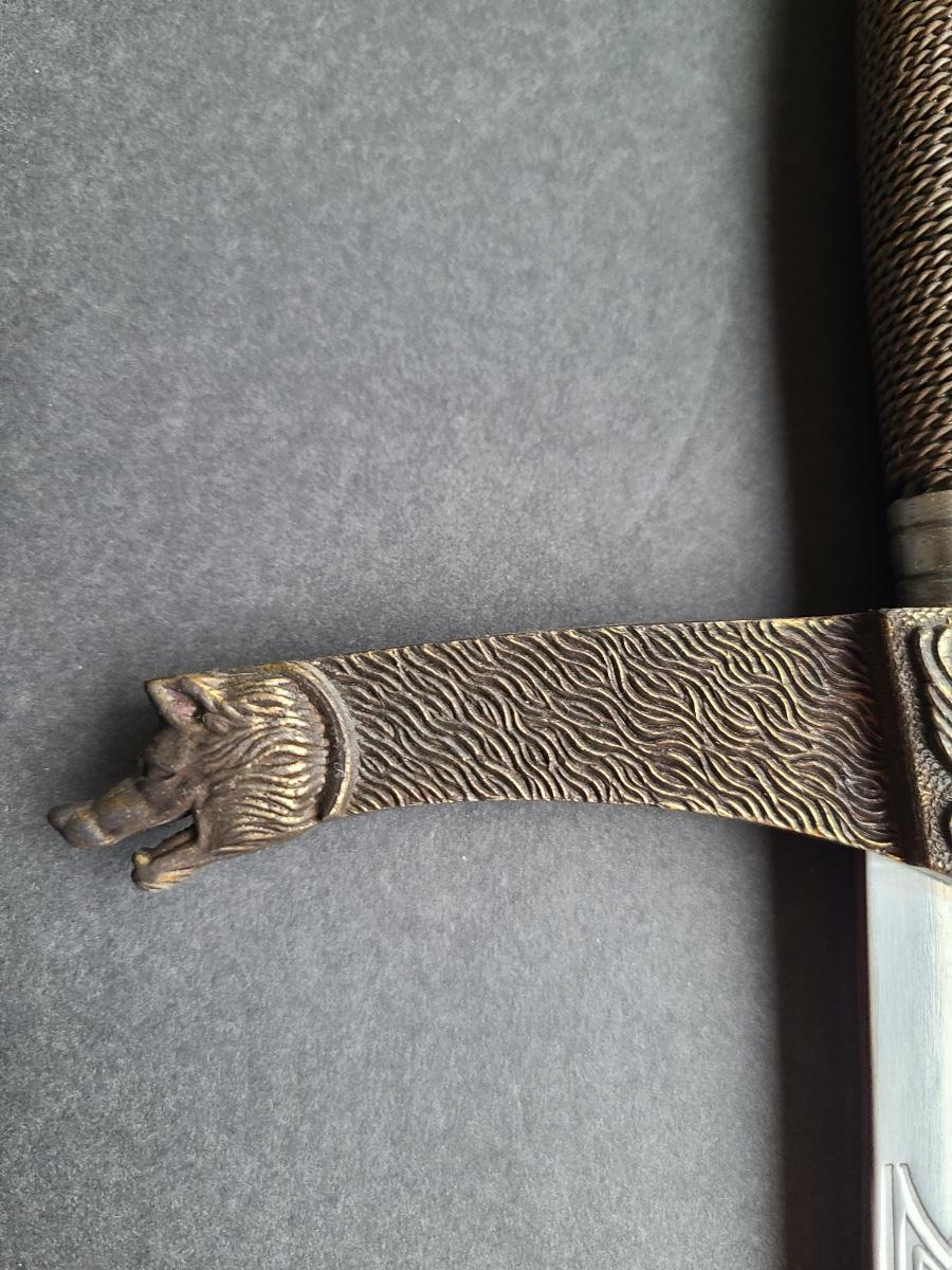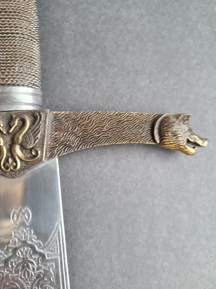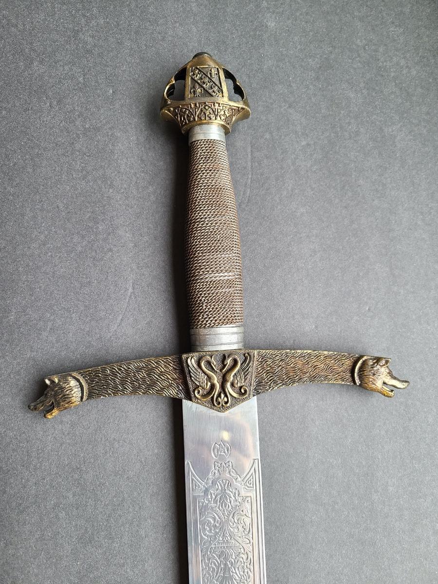 LOT 69S: Fantasy Stainless Steel Blade Sword w/Crown Pommel & Wolf Head Guards
