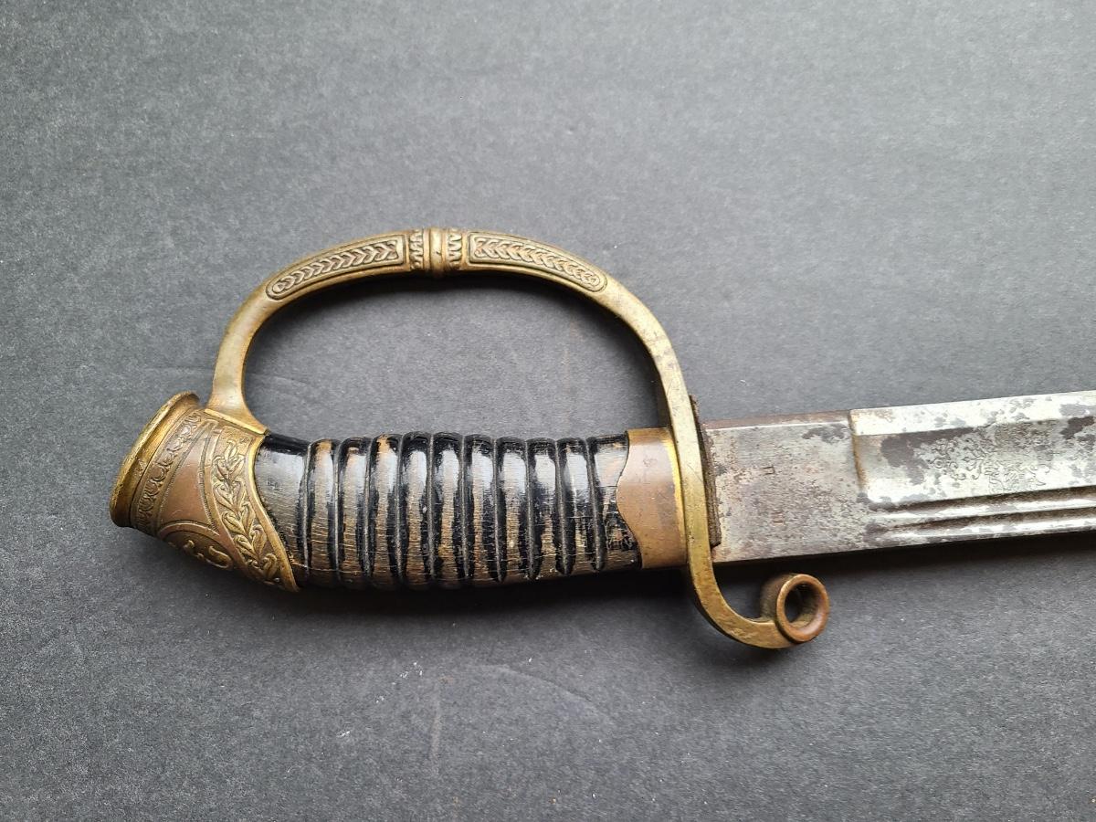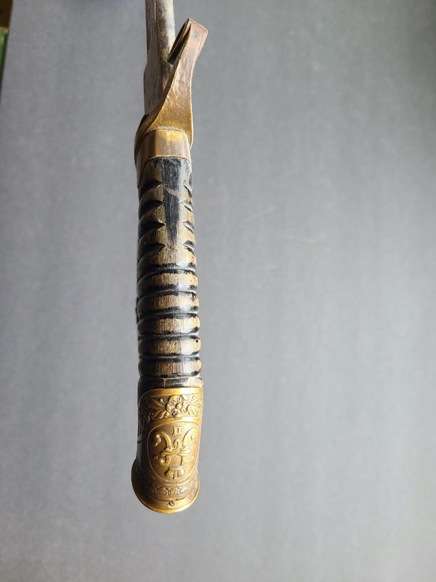 According to research, this is an imperial Russian Infantry Officer's sabre,. The brass hilt with wood grip, and monogram of Nicholas II. Blade with makers mark, monogram of Nicholas II and the imperial eagle on blade. Please see all pictures as they are the best representation of the items. The pictures show condition, measurements if taken, and what is included in the lot. Due to the large amount that we photograph and the time frame, we are not always able to take measurements. All items unless noted, are pre-owned and have been used. If you purchased furniture, you must bring help. We do not allow one person to carry large furniture out on their own. Bring help, tools and a truck for the safety of our client’s homes, and your personal safety. Any damages that result to the property including walls, and floors due to moving of the furniture will be charged to the buyer. Company policy. Thank you.