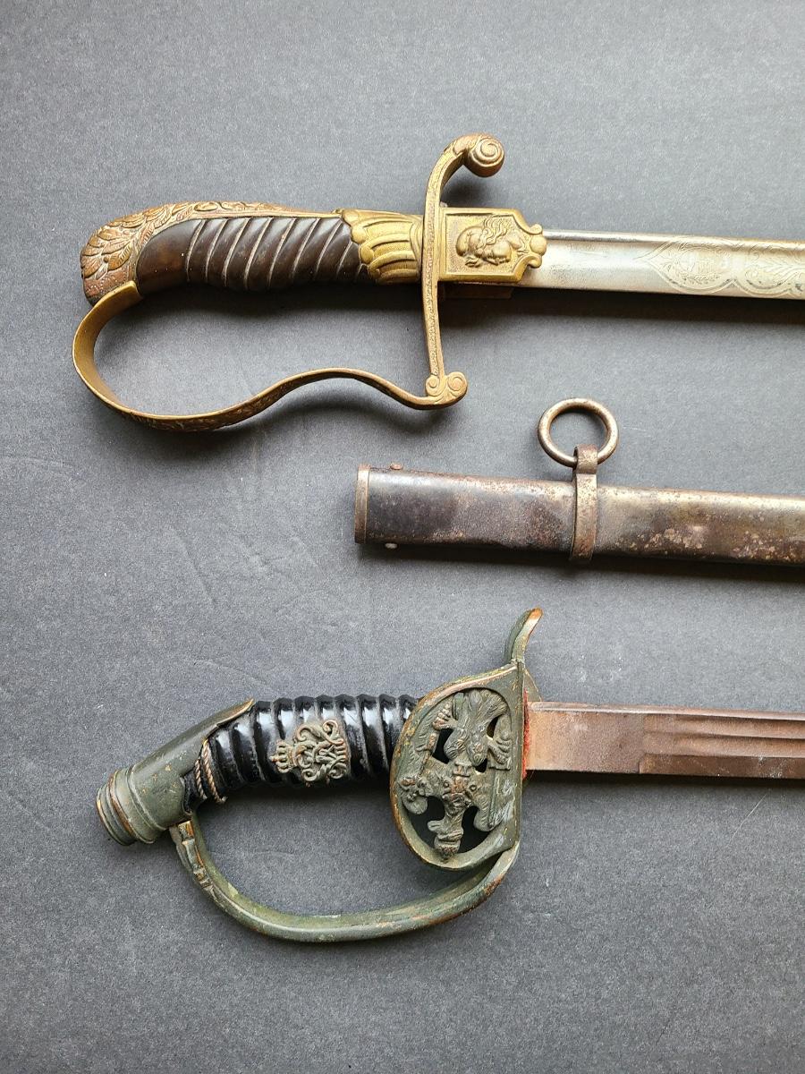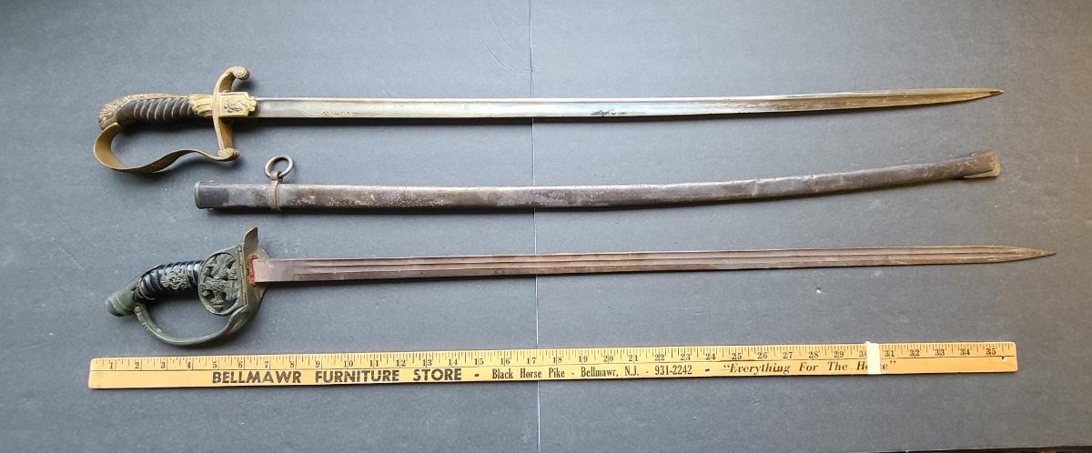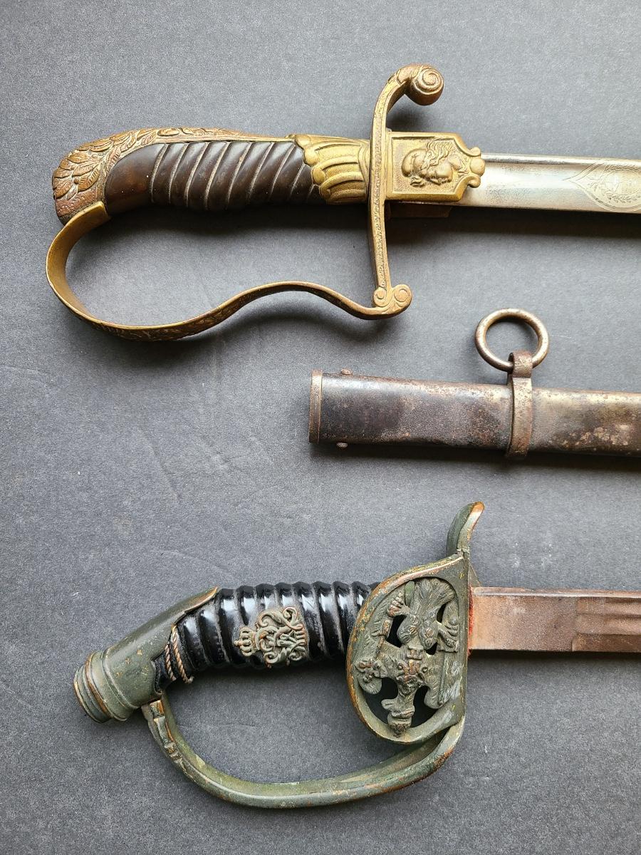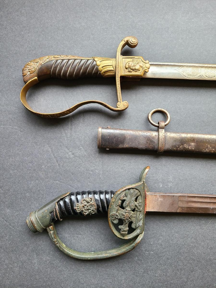One sword is has the Sean Eternal Los Laurels which is "may the laurels be eternal" which is part of the national anthem, it also ha s the Clemen & Jung Forge Stamp. The other has the Nicholas II Griffin on the guard. Please see all pictures as they are the best representation of the items. The pictures show condition, measurements if taken, and what is included in the lot. Due to the large amount that we photograph and the time frame, we are not always able to take measurements. All items unless noted, are pre-owned and have been used. If you purchased furniture, you must bring help. We do not allow one person to carry large furniture out on their own. Bring help, tools and a truck for the safety of our client’s homes, and your personal safety. Any damages that result to the property including walls, and floors due to moving of the furniture will be charged to the buyer. Company policy. Thank you.
