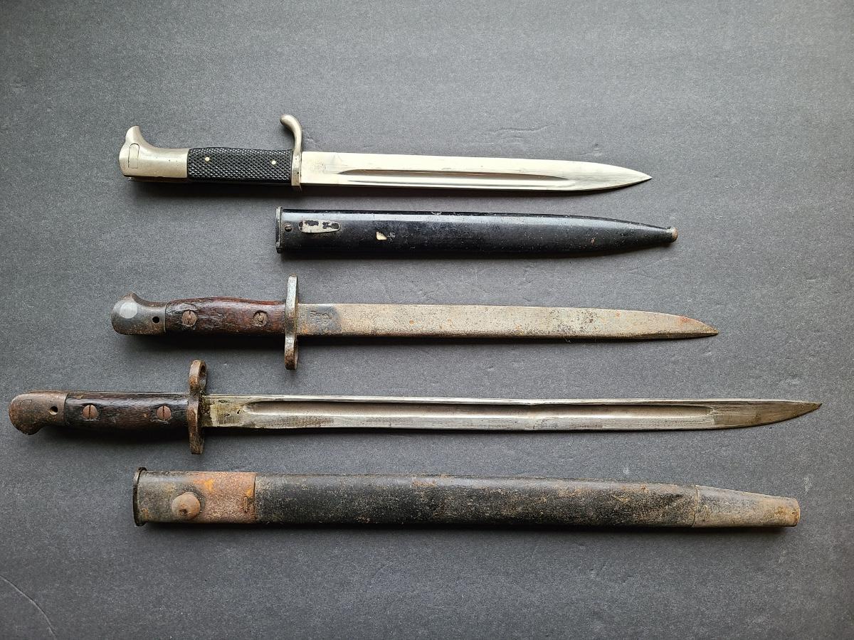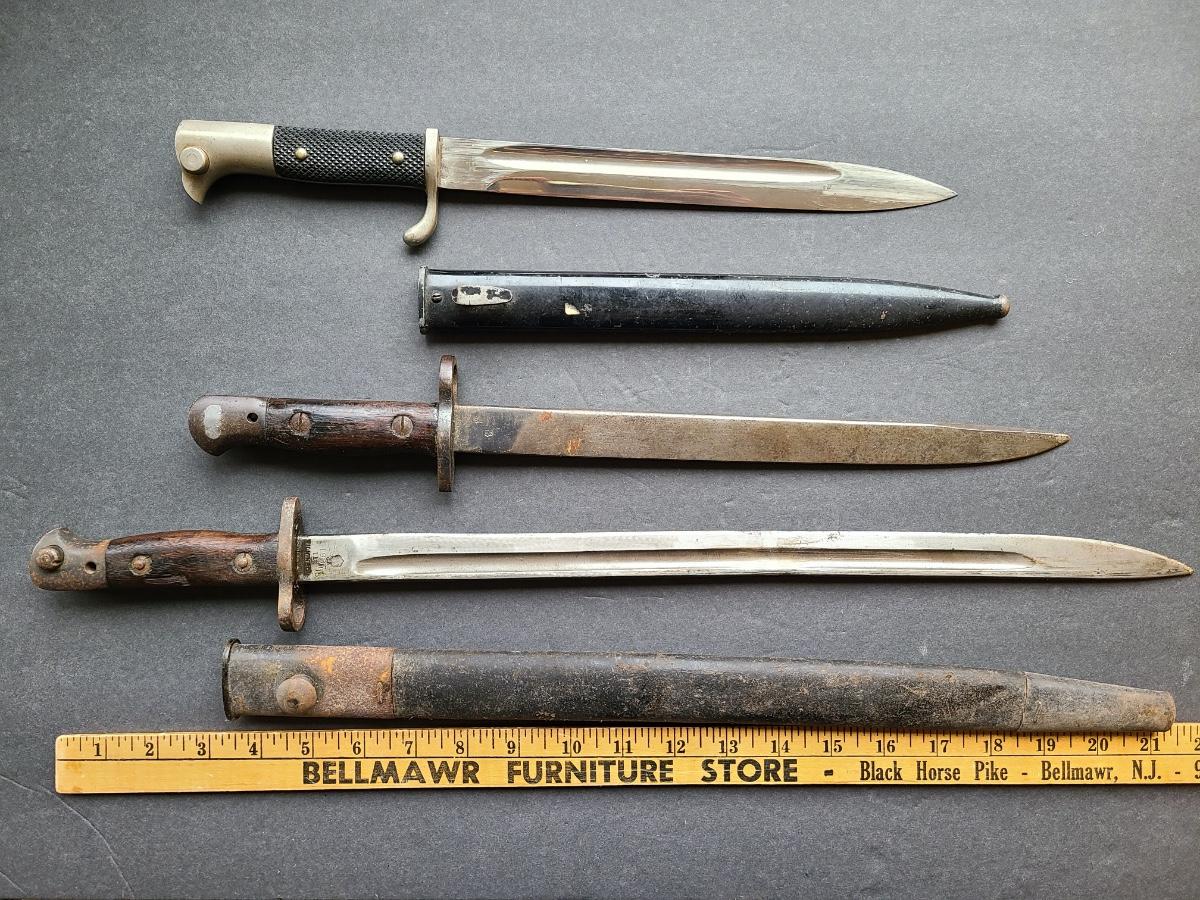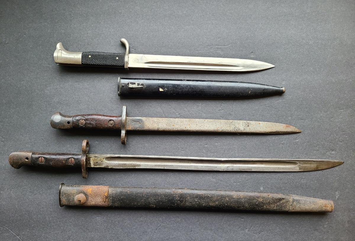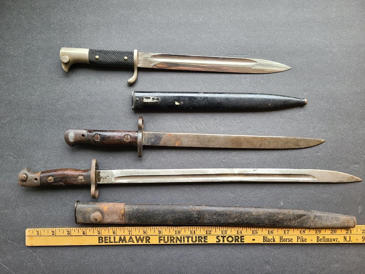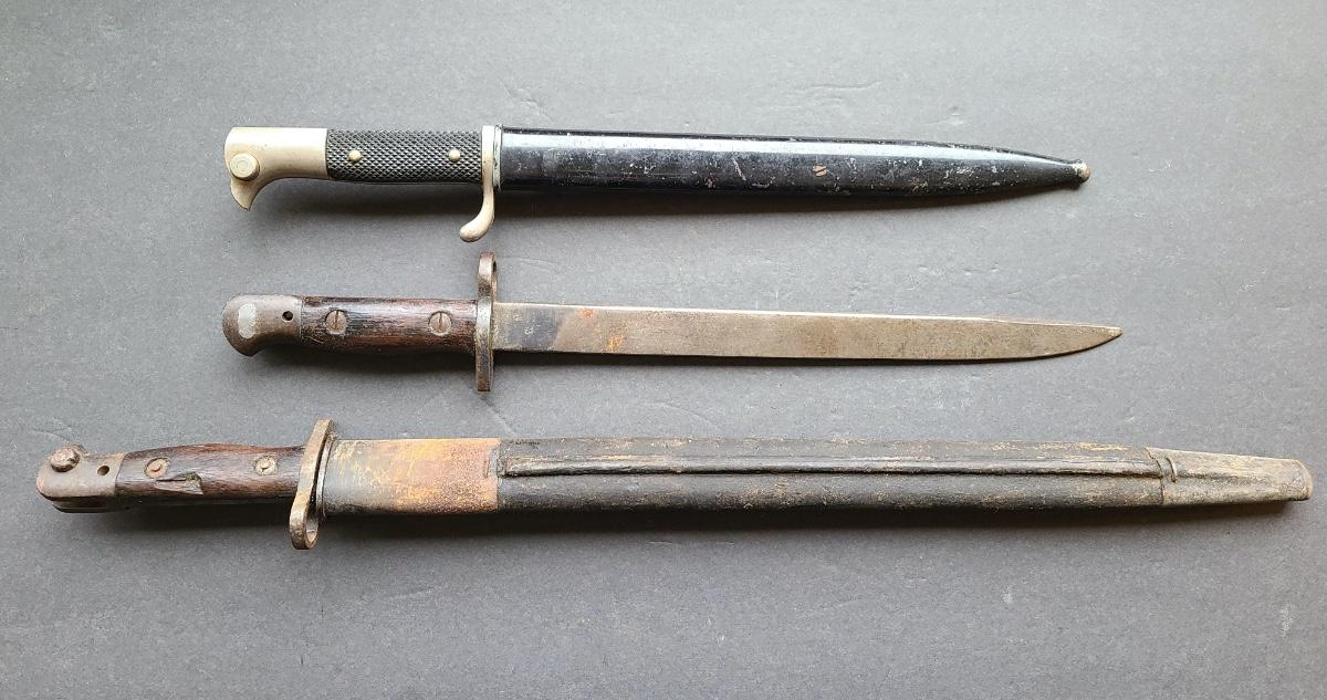 LOT 96S: 1907 Wilkinson, Carl Eickhorn Solingen, & GRI MKI 9 42 RFI marked Bayonets