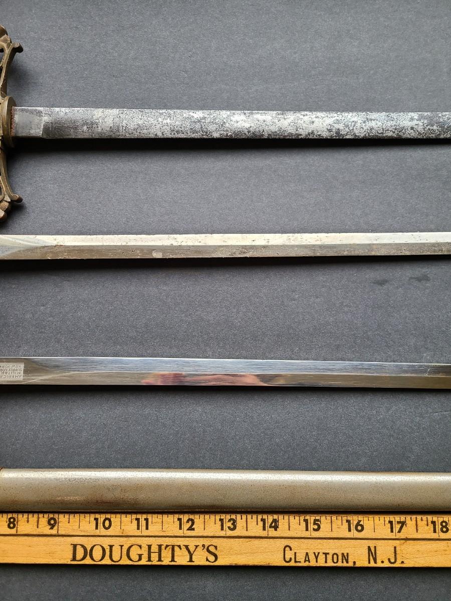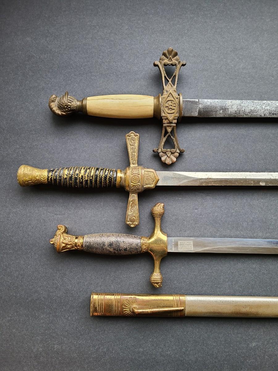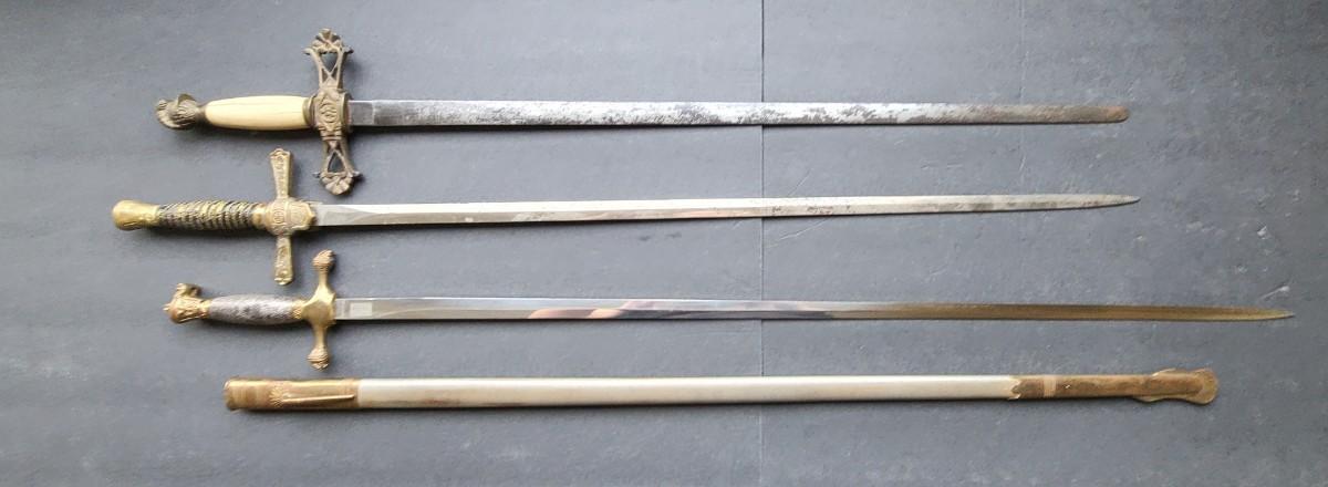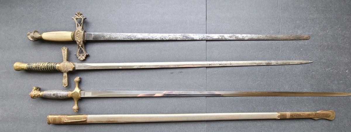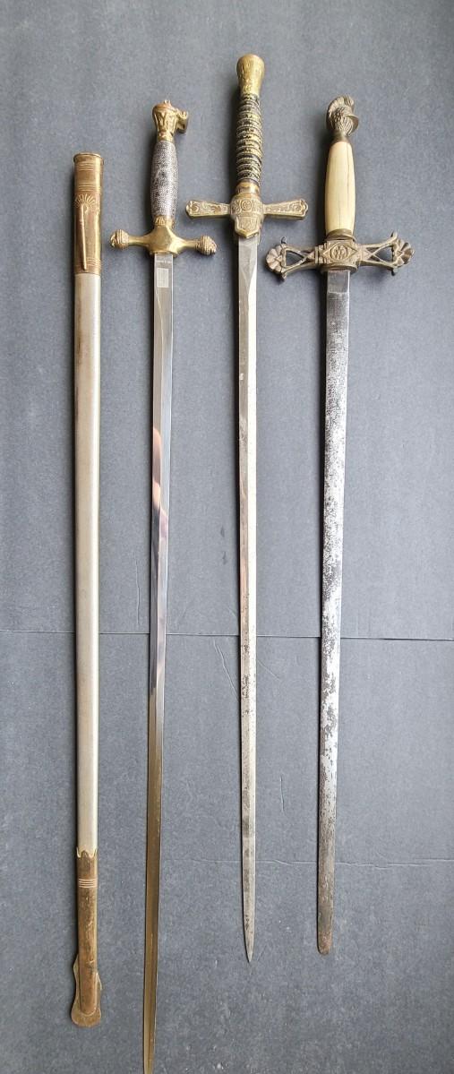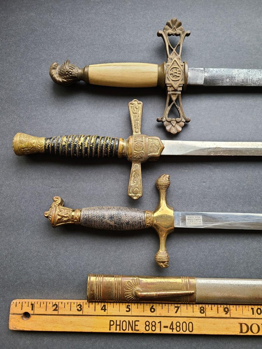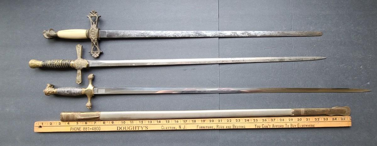 LOT 98: American Military Supply Company Cadet Sword & Scabbard, Two Fraternal Swords One WKC Made