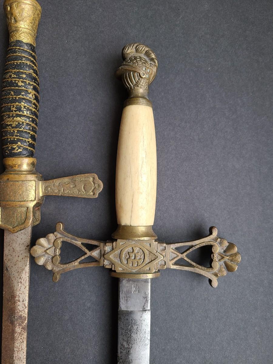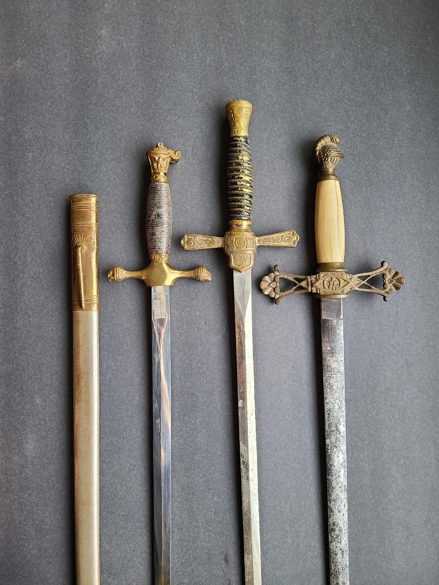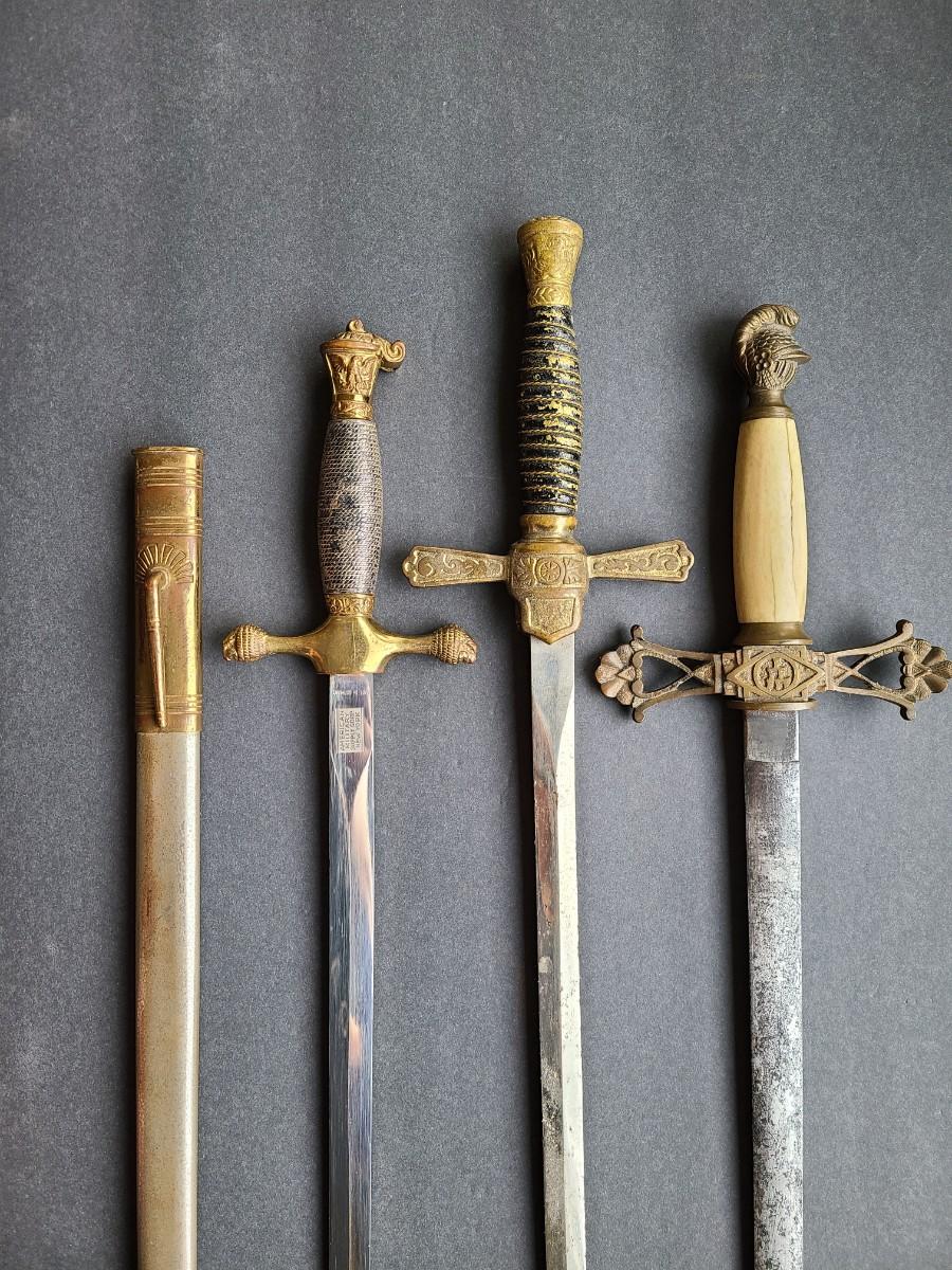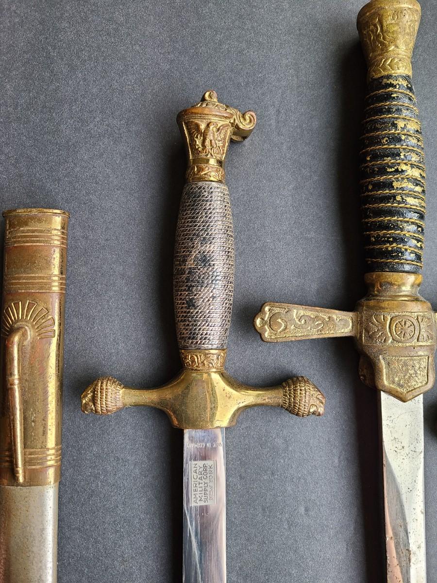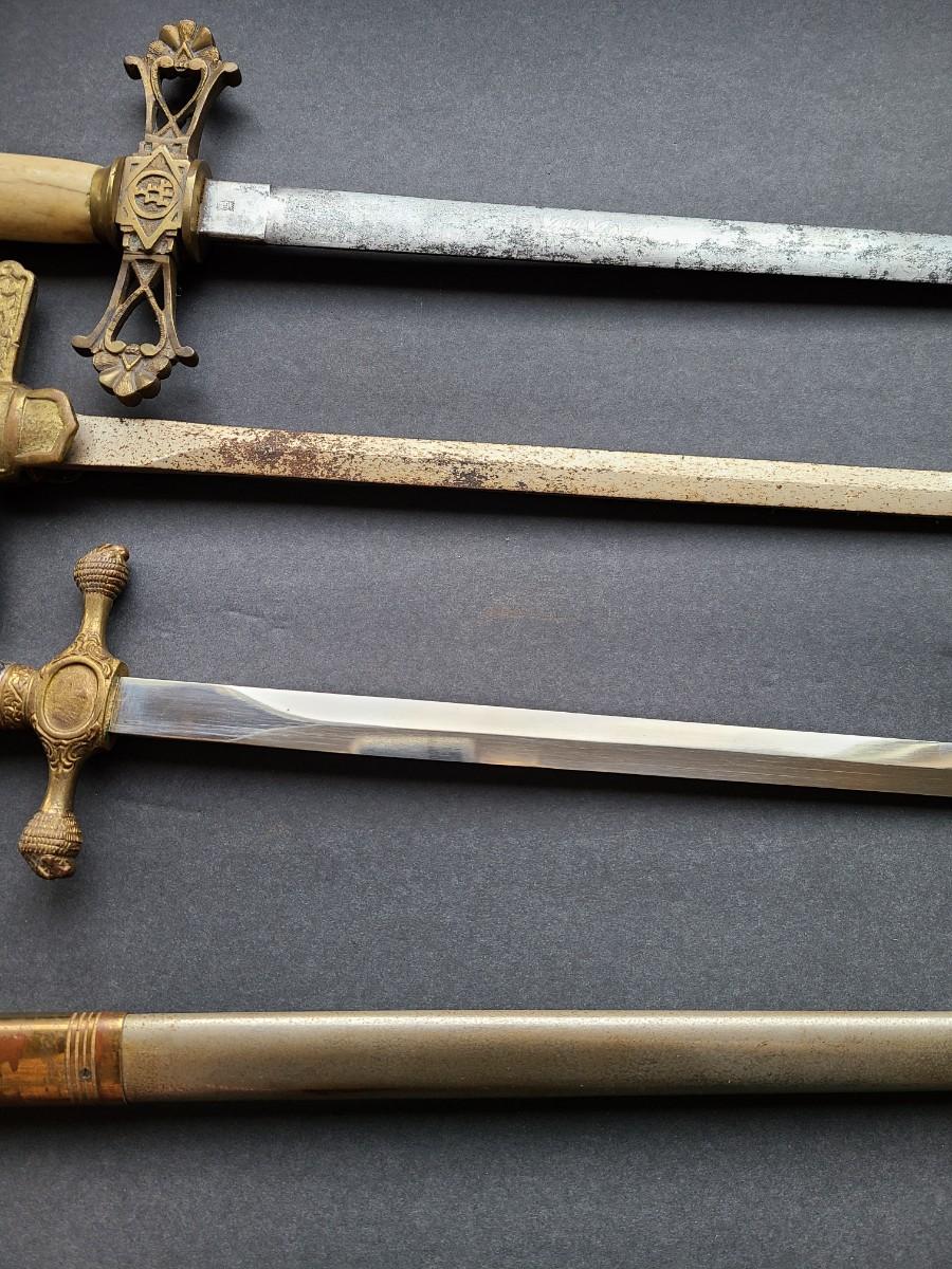 LOT 98: American Military Supply Company Cadet Sword & Scabbard, Two Fraternal Swords One WKC Made