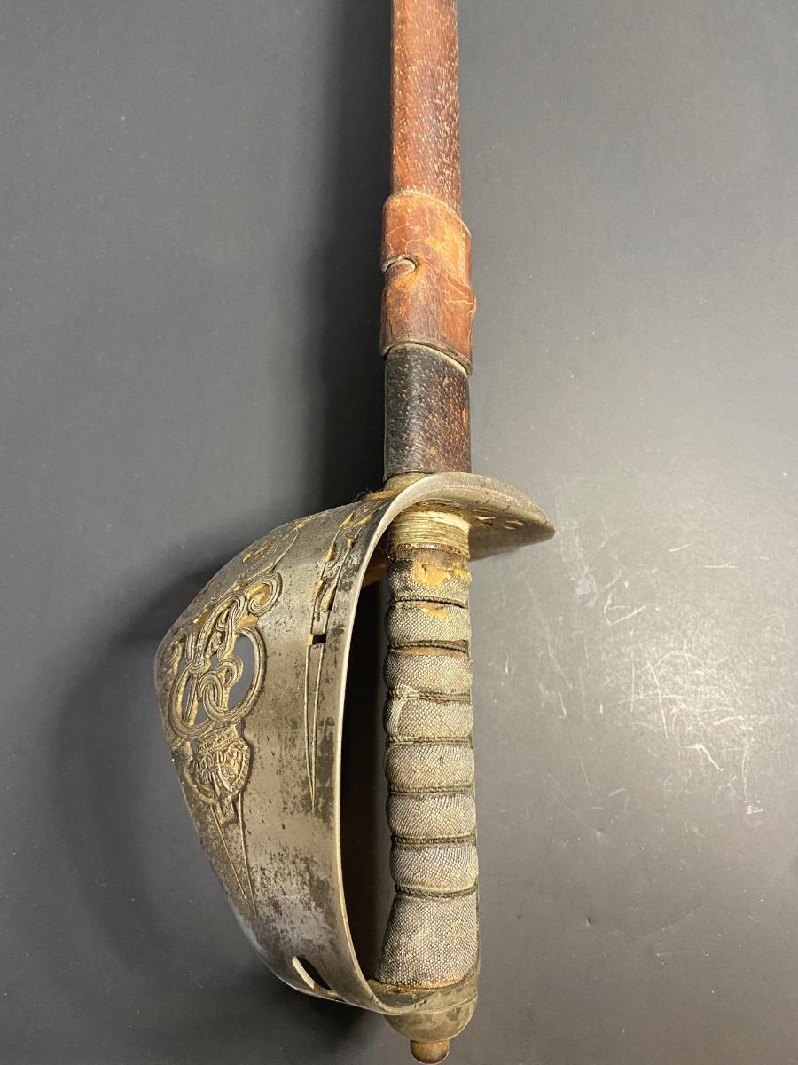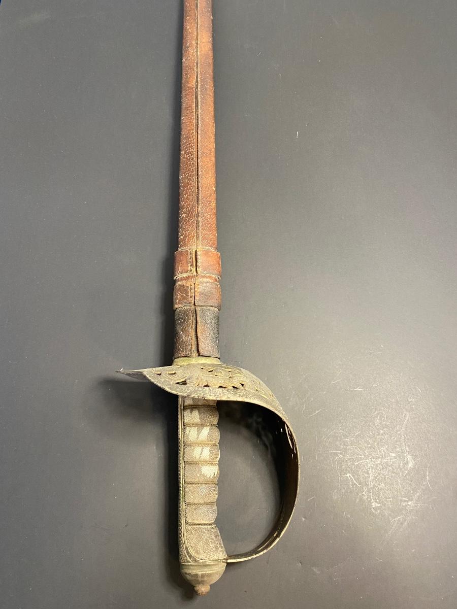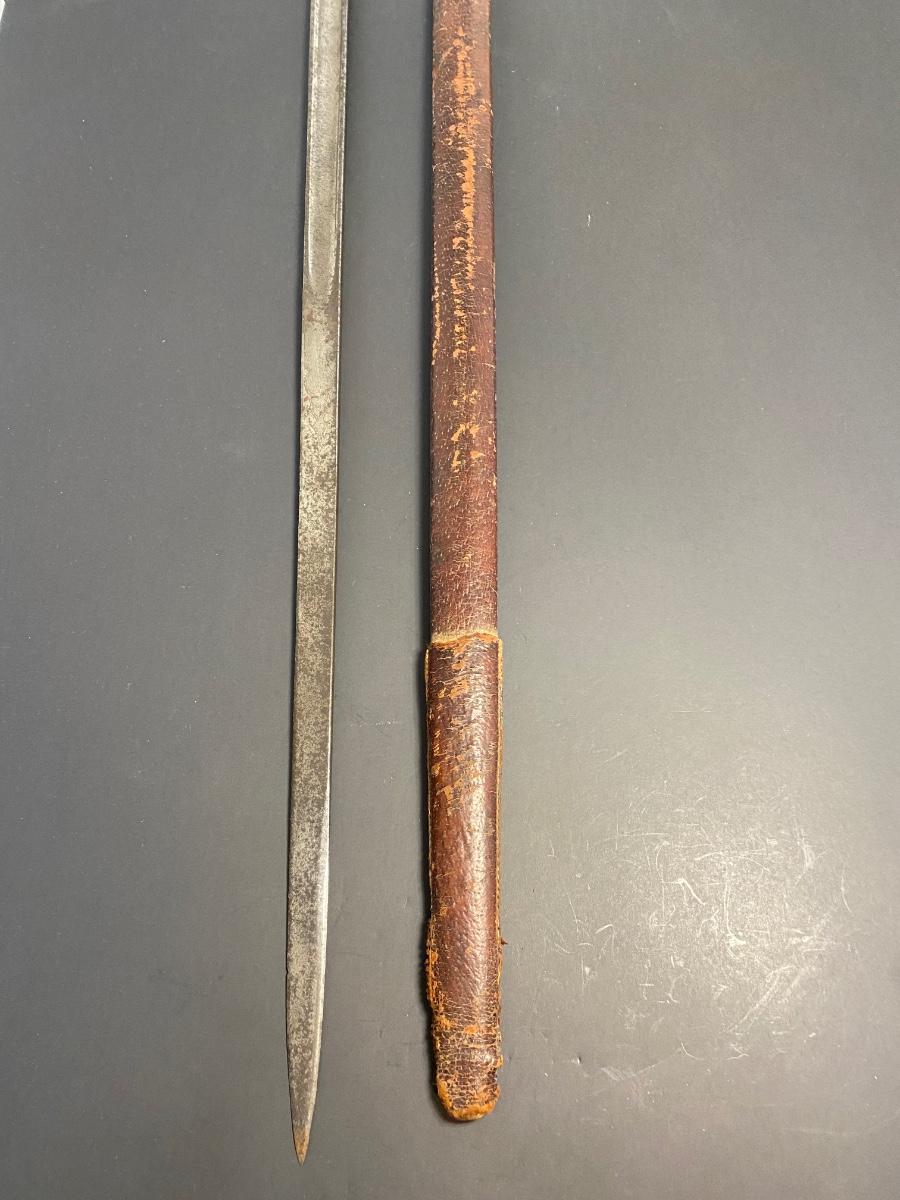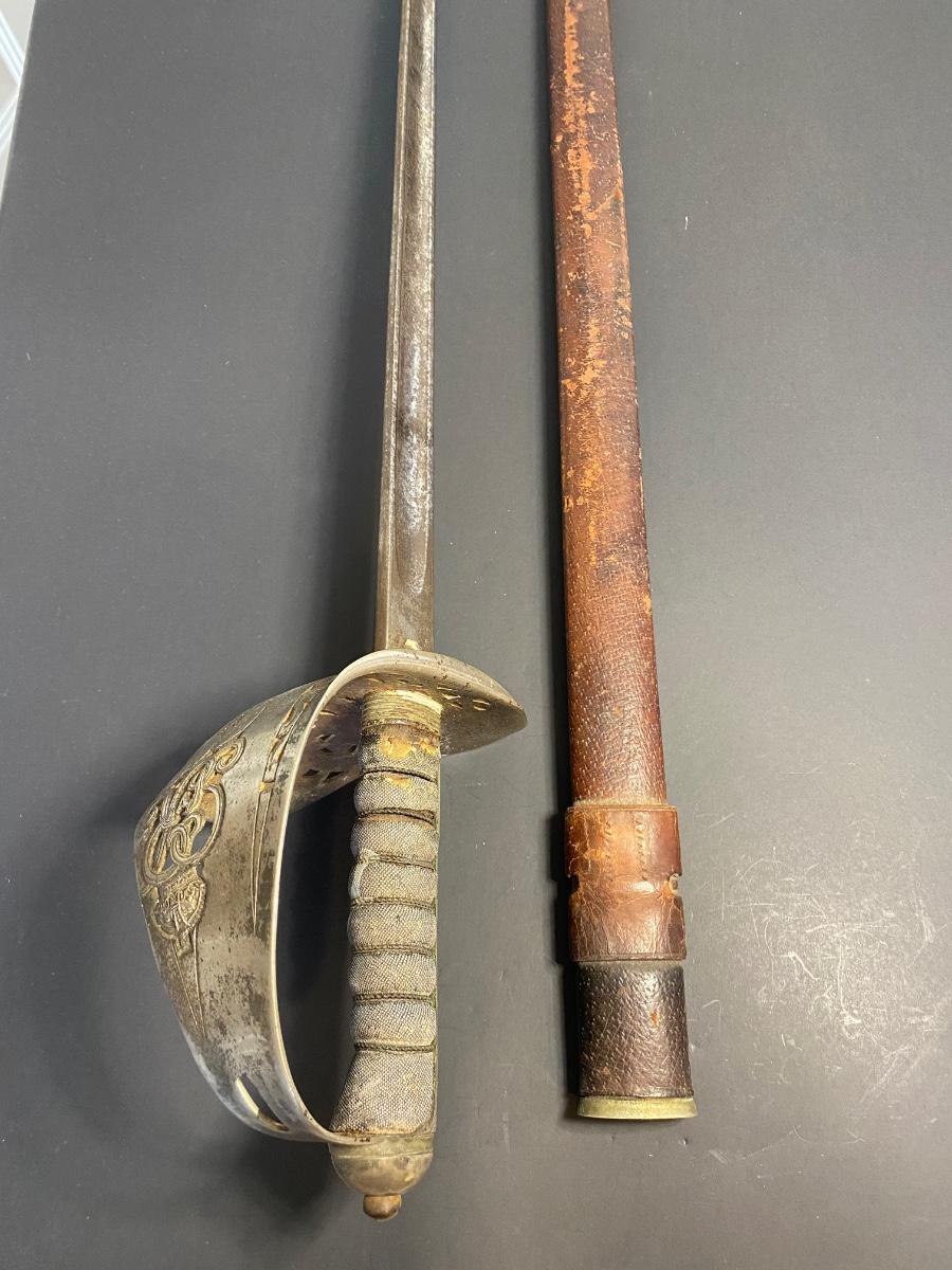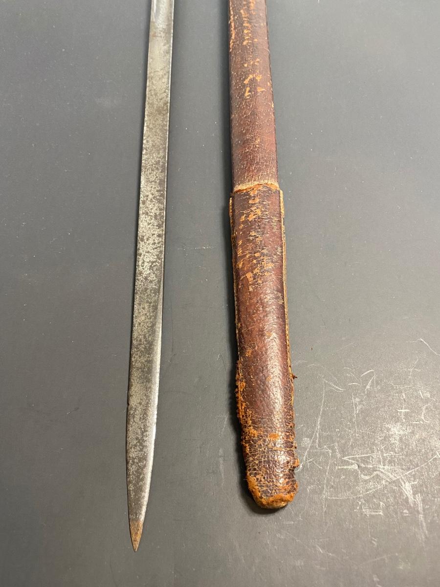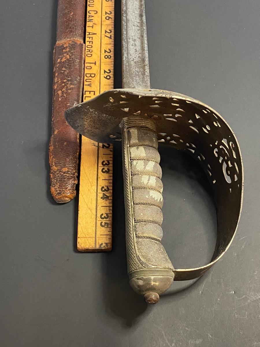 LOT 106G: Antique Sword with Crown Markings & Leather Scabbard
