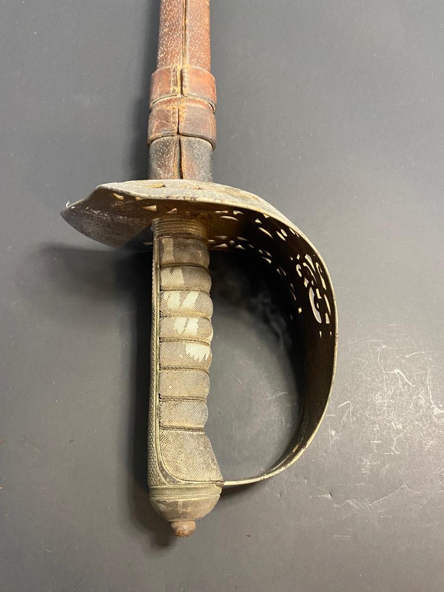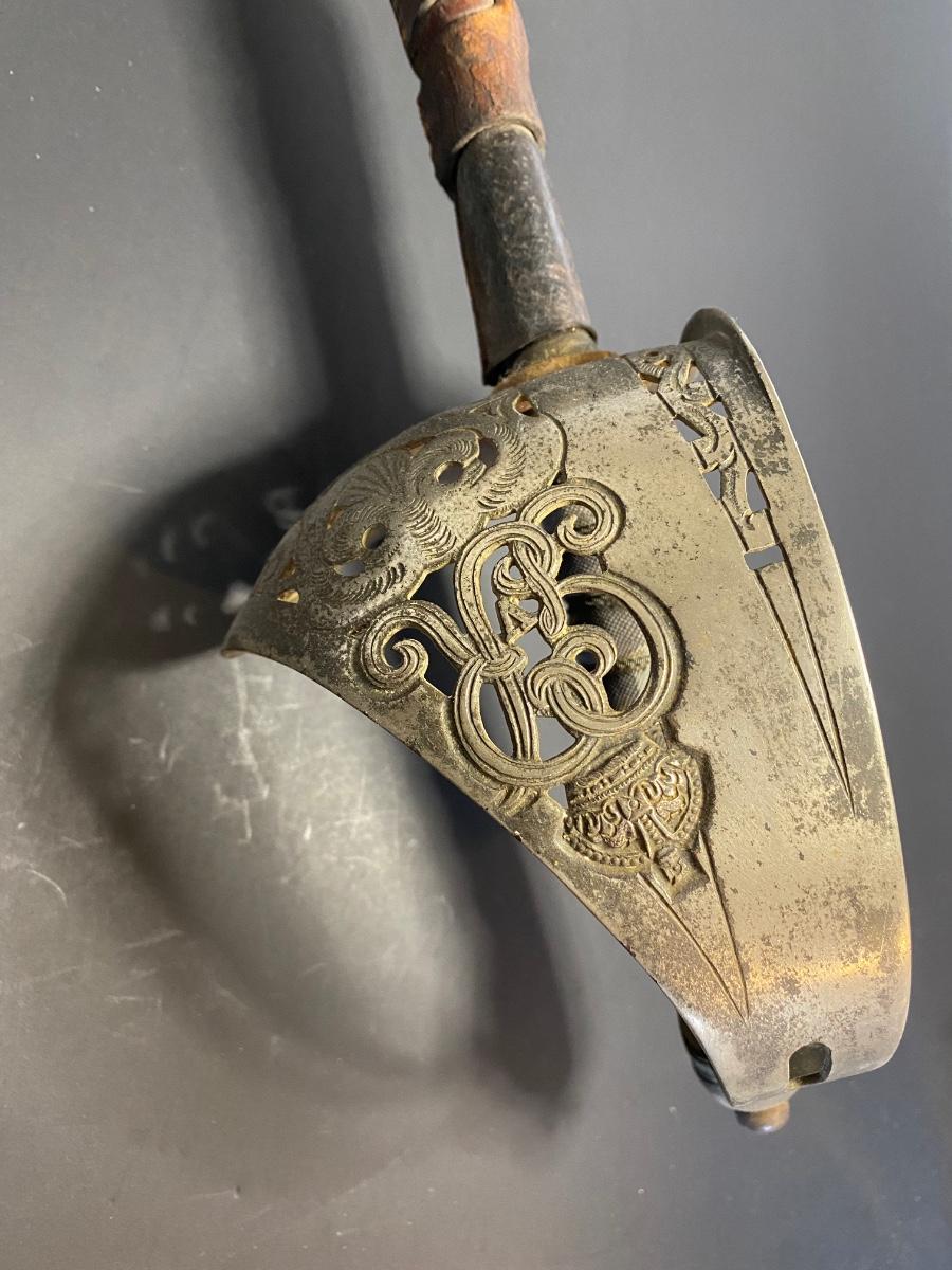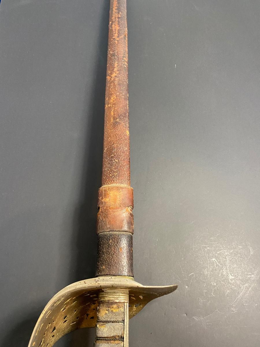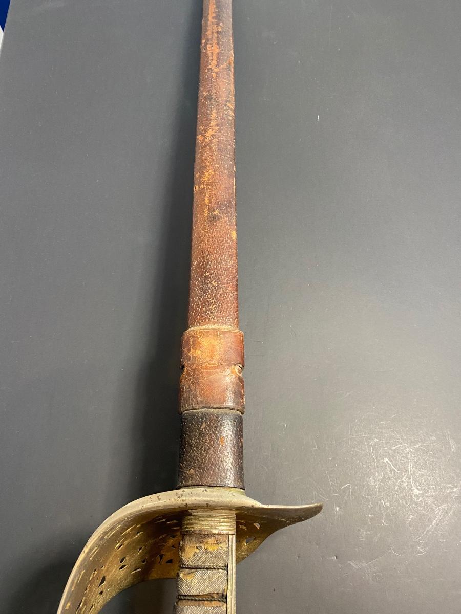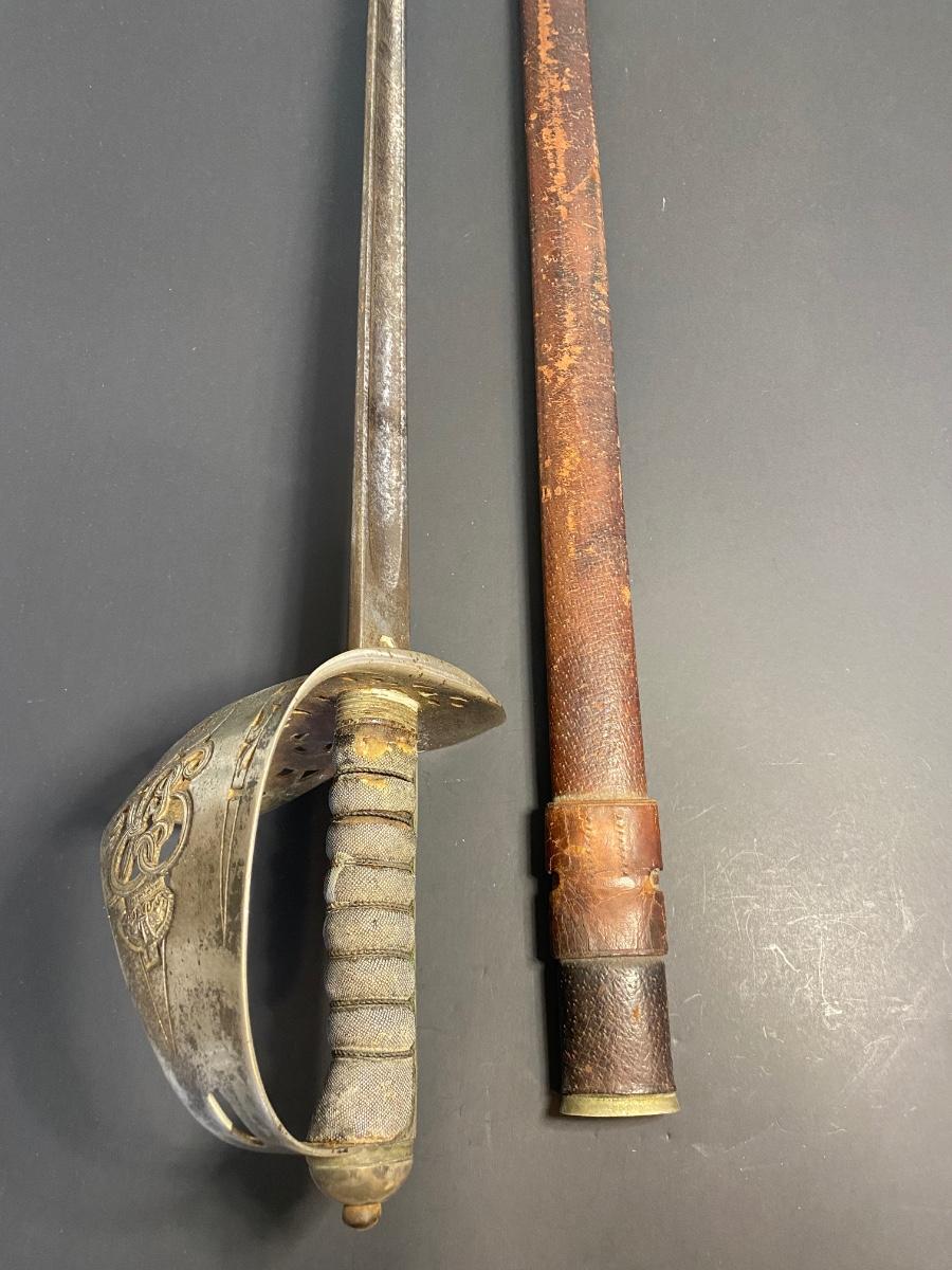LOT 106G: Antique Sword with Crown Markings & Leather Scabbard