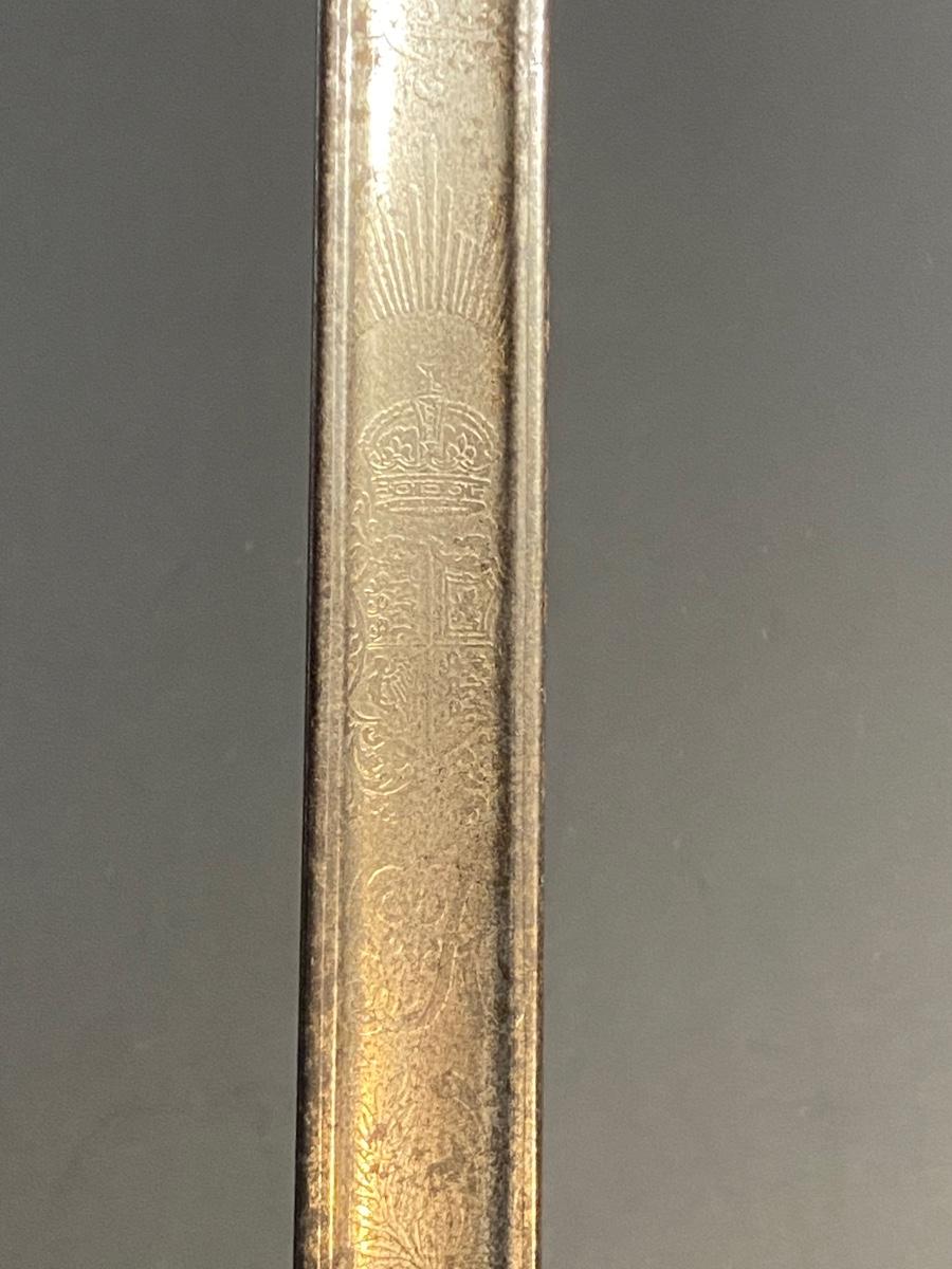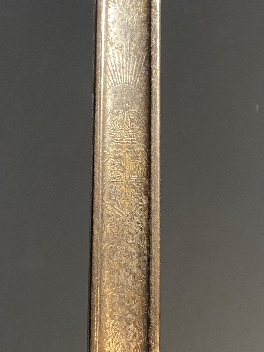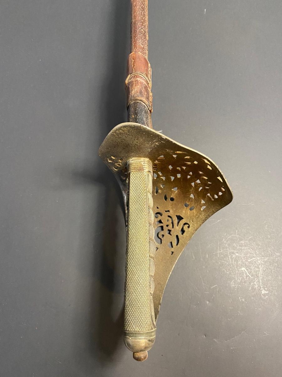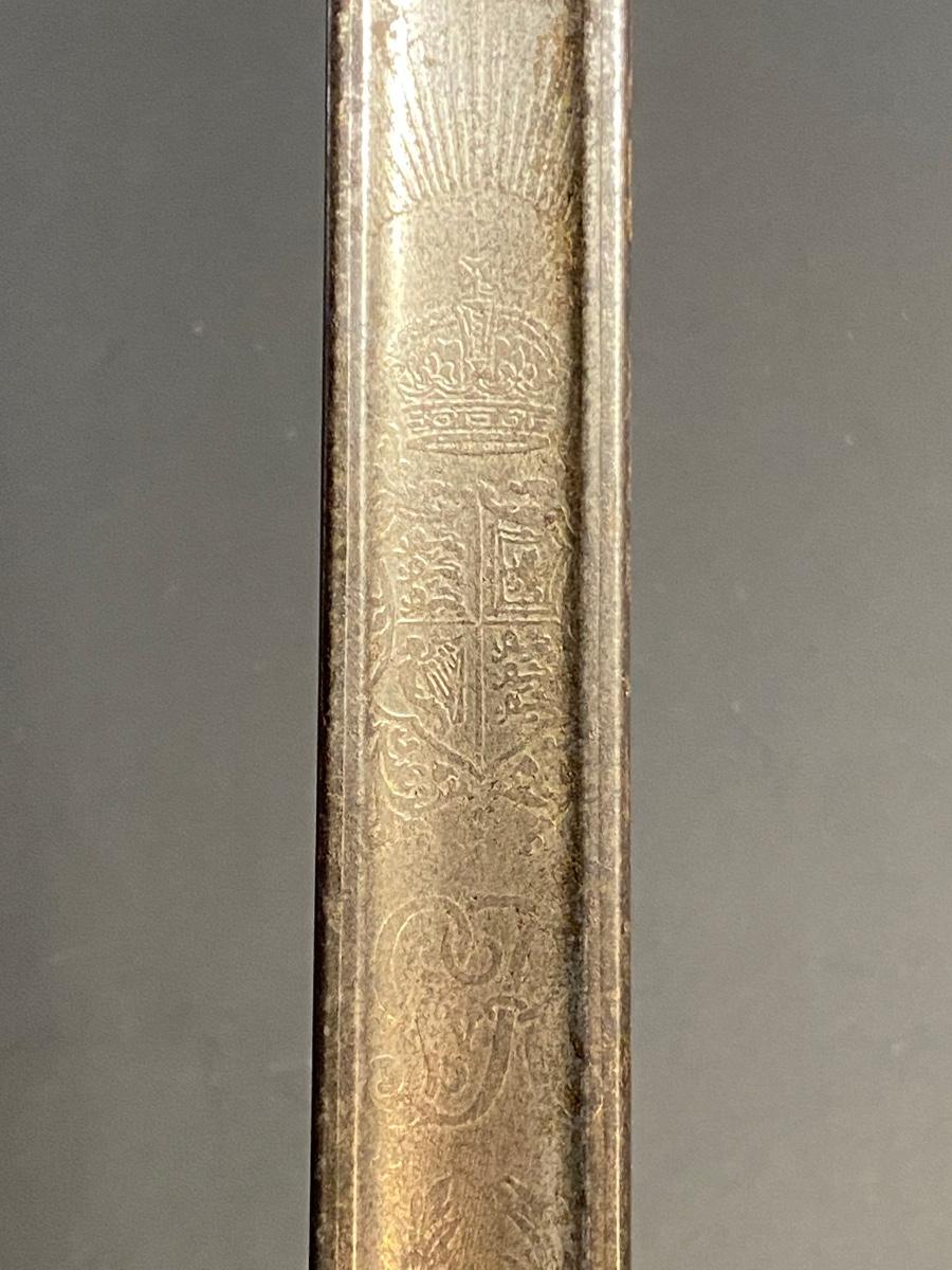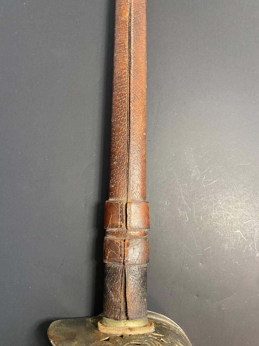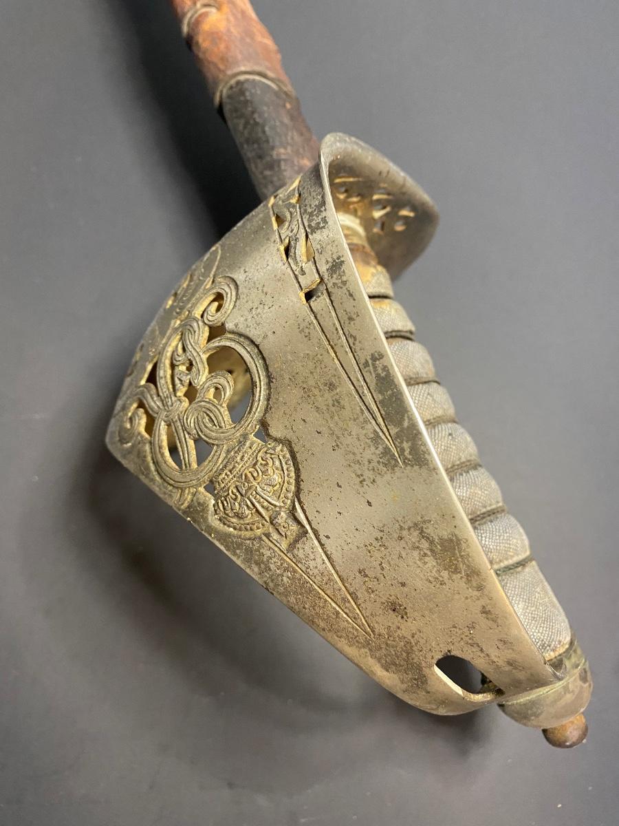 LOT 106G: Antique Sword with Crown Markings & Leather Scabbard