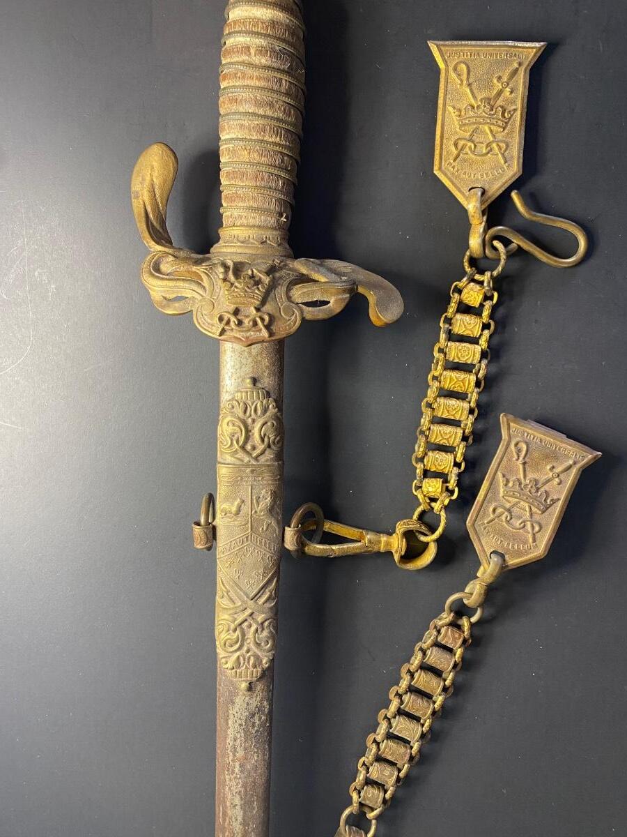 LOT 117G: VTG Paxaut Bellum Sword & Scabbard w/Belt Clips