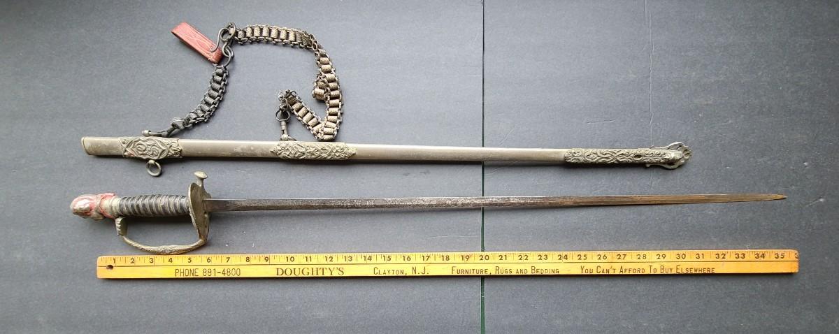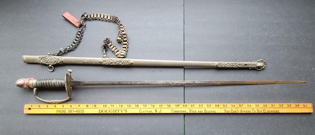 LOT 124: P.O.S.A. Patriotic Order Sons of America Fraternal, George Washington Head Sword & Scabbard