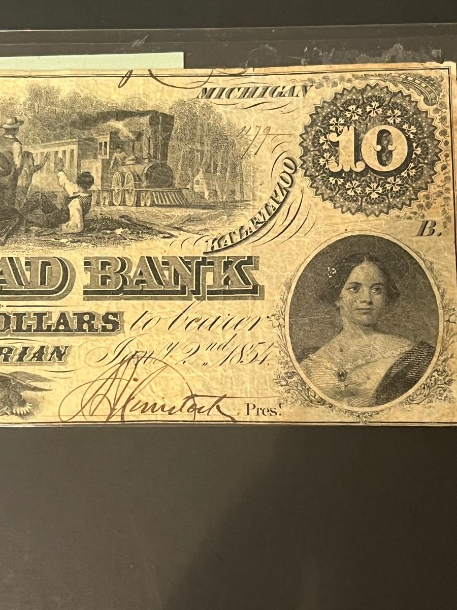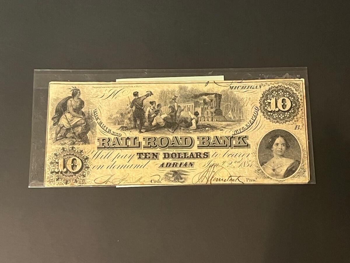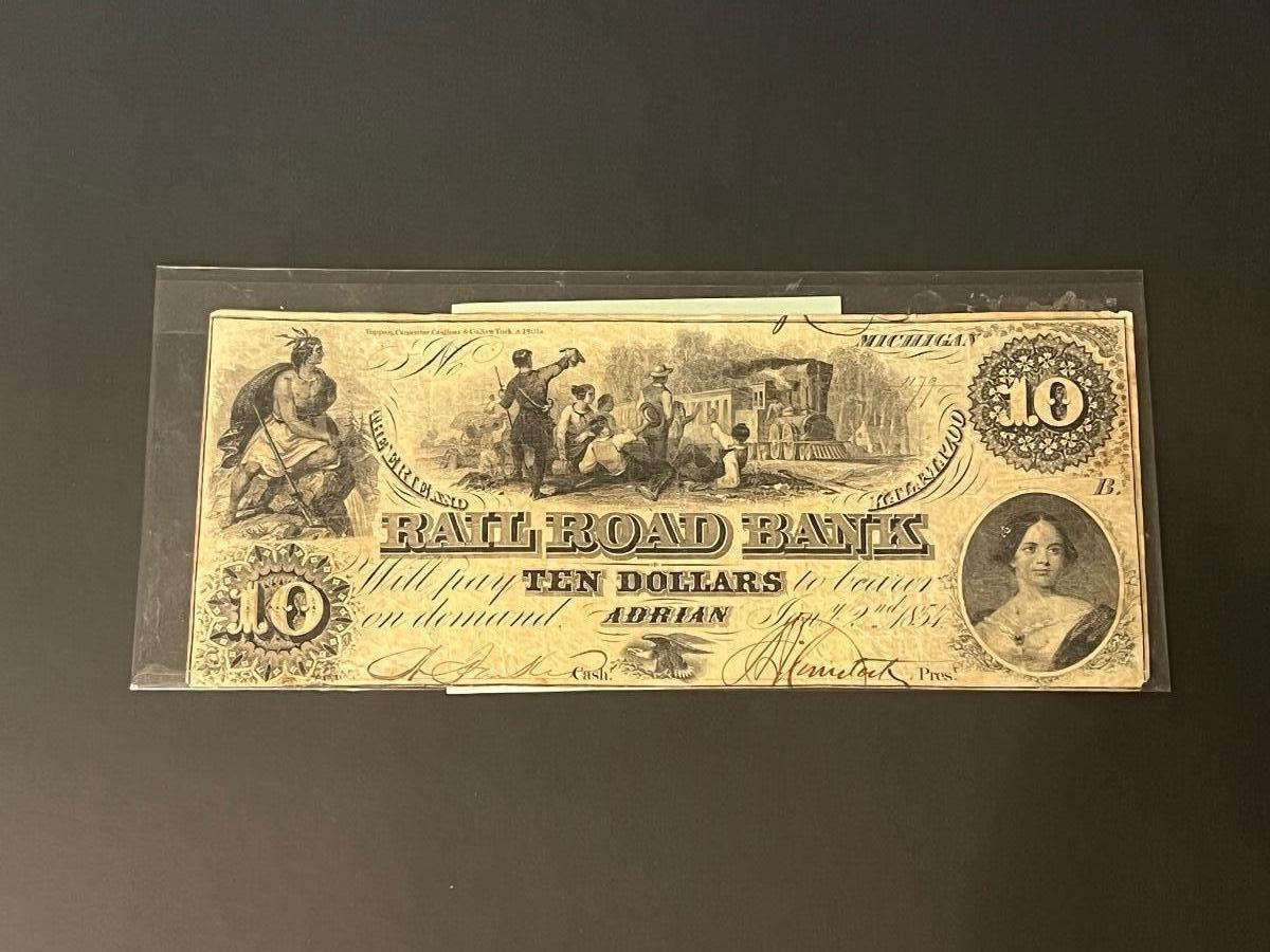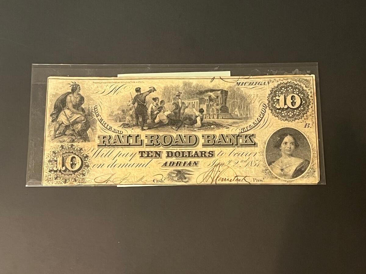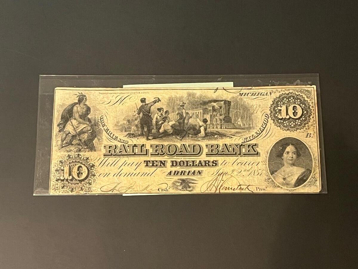 LOT 19C: 1854 Erie & Kalamazoo Railroad Bank $10 Note