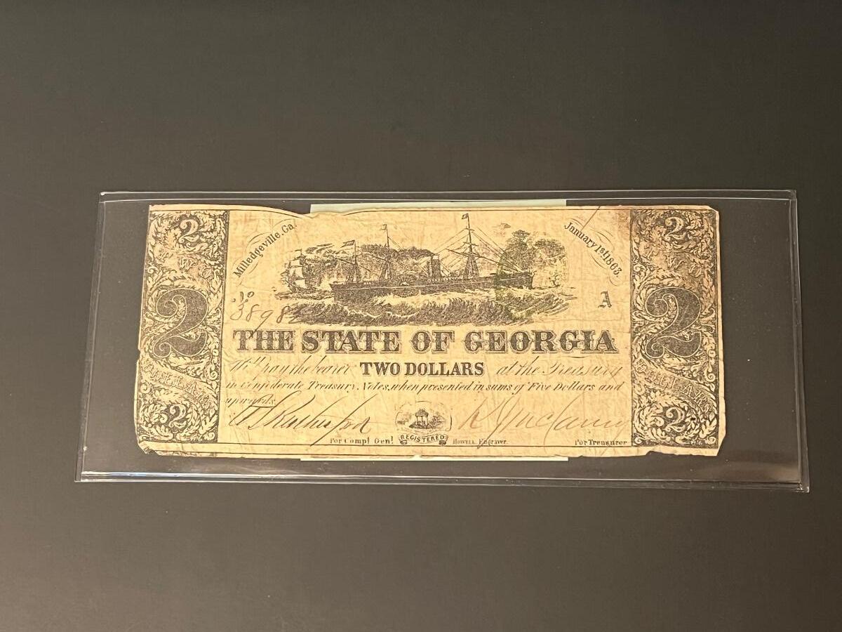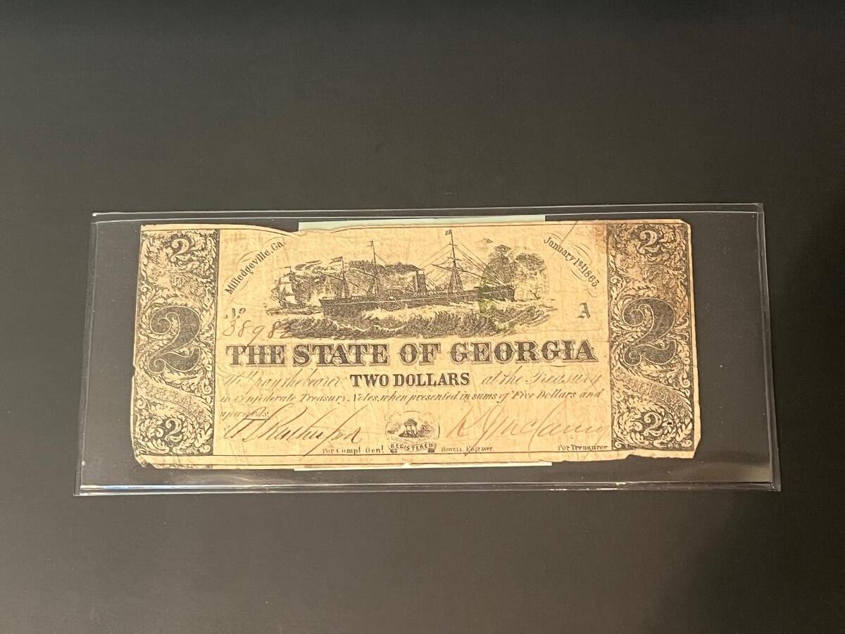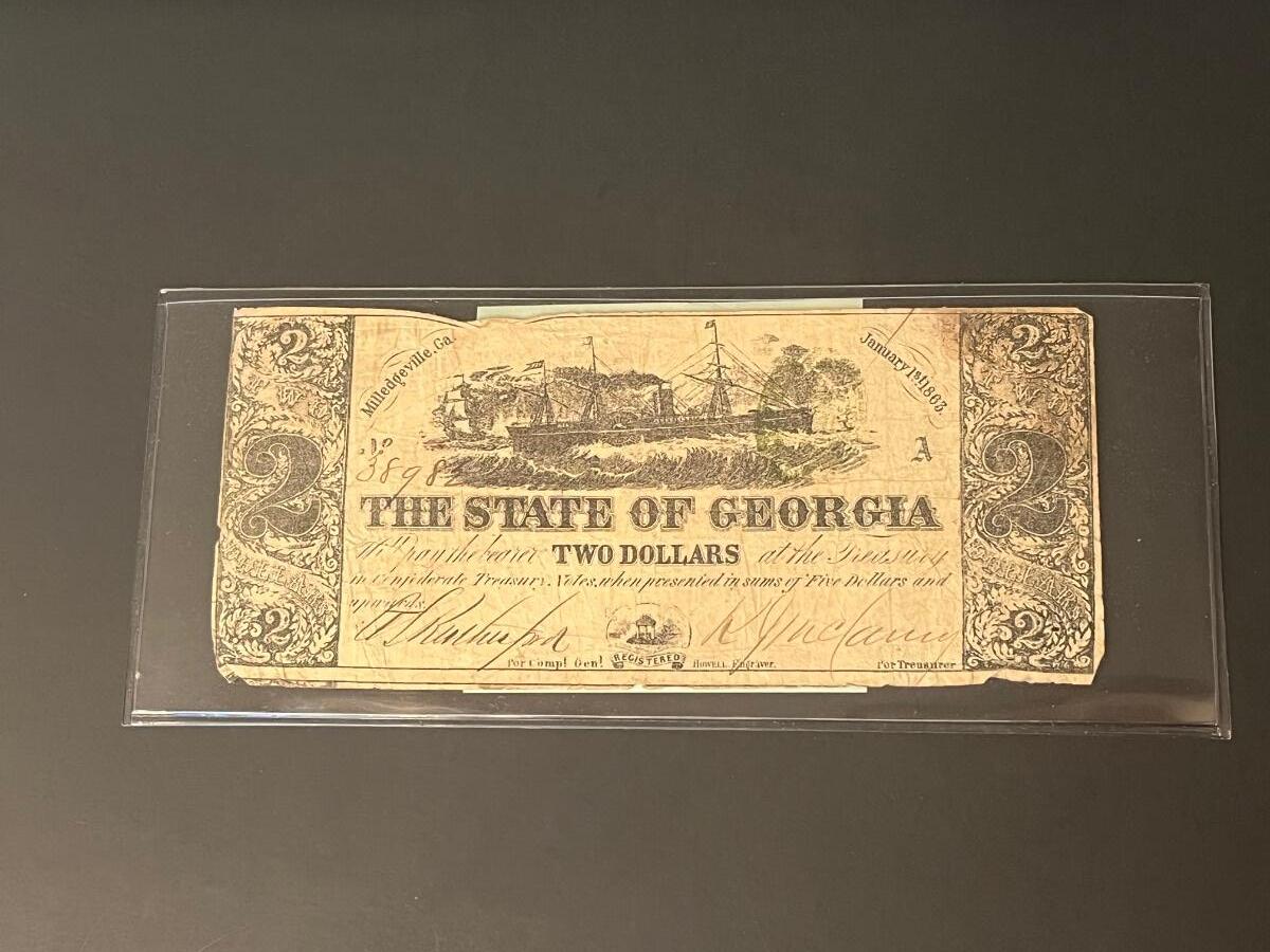 LOT 20C: State of Georgia 1863 Milledgeville $2.00 Note