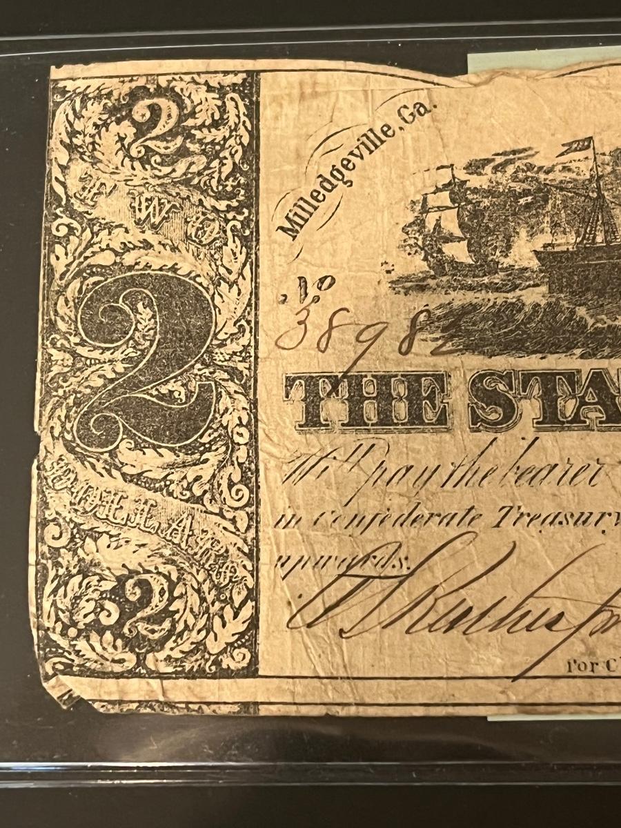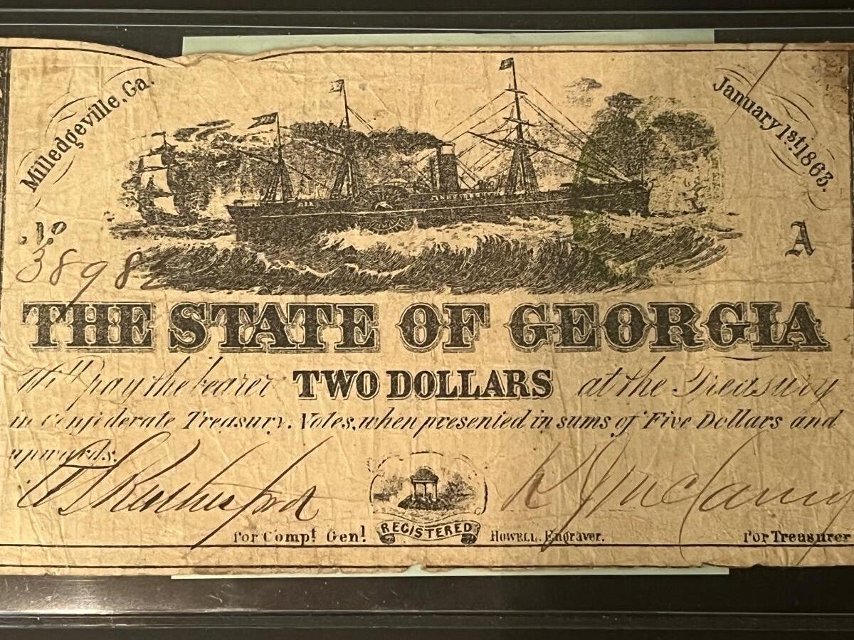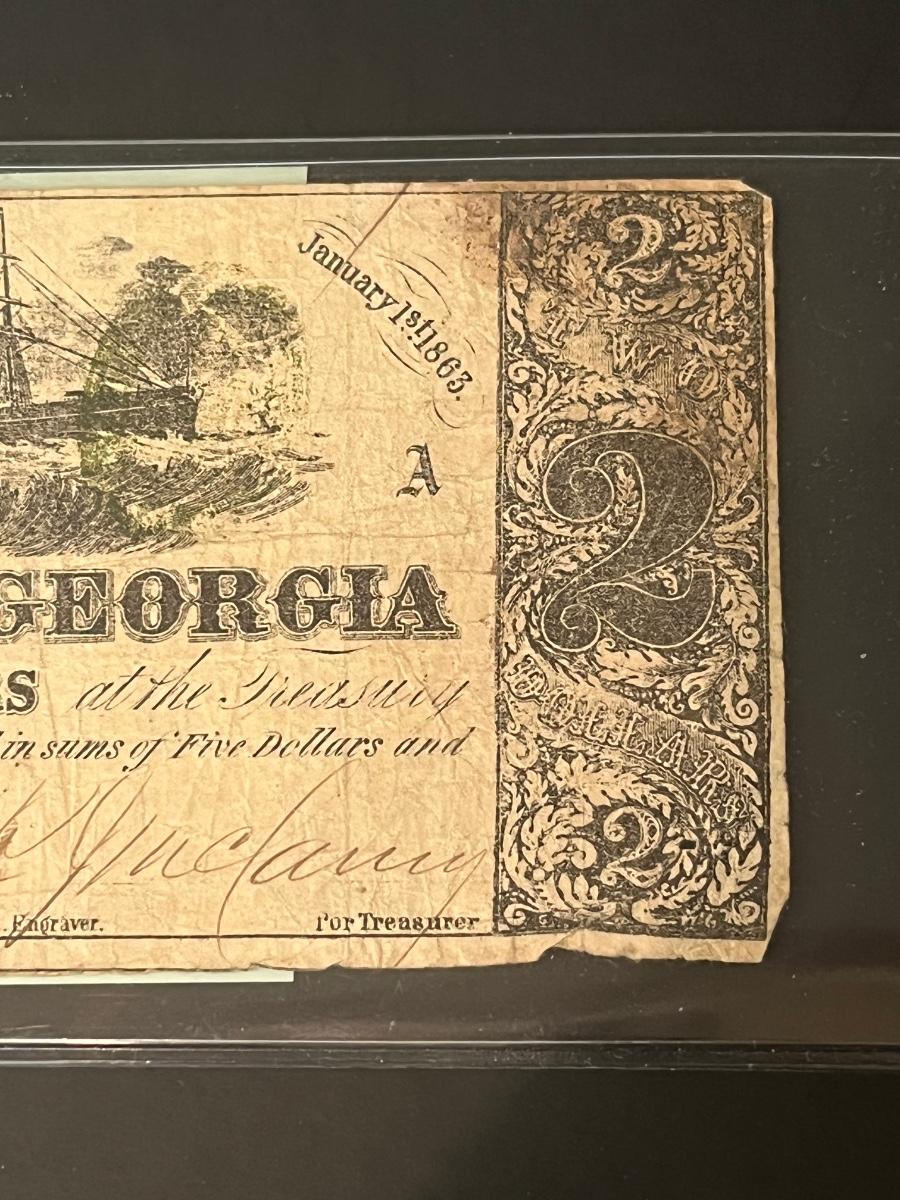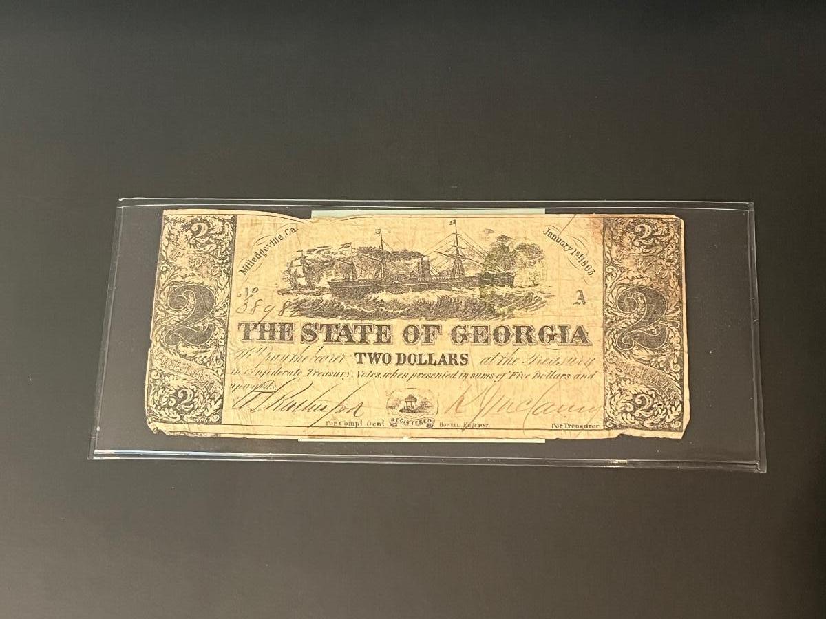 LOT 20C: State of Georgia 1863 Milledgeville $2.00 Note