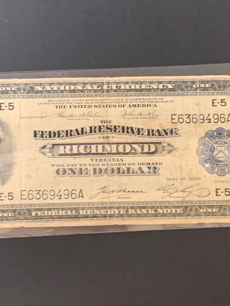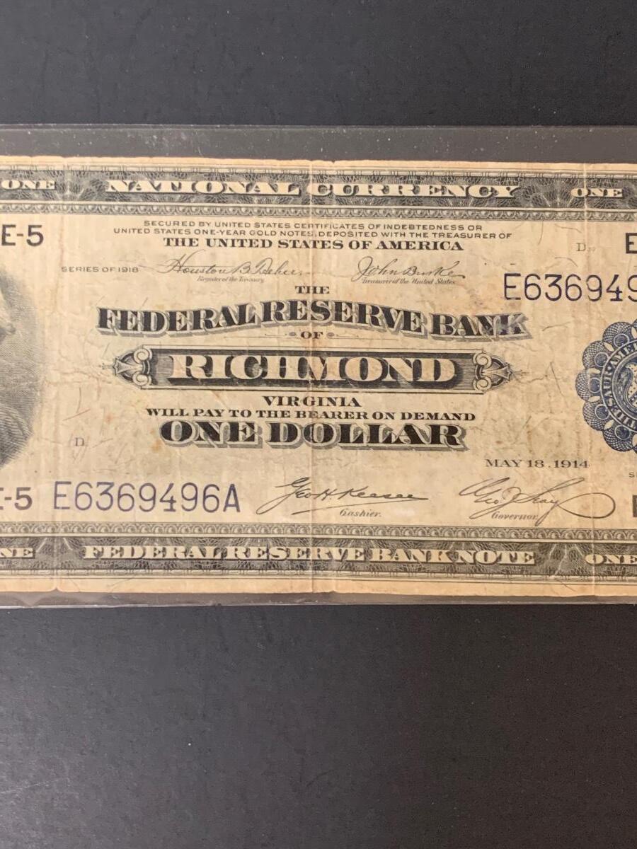 LOT 71: Federal Reserve Bank of Richmond $1 Note 1914