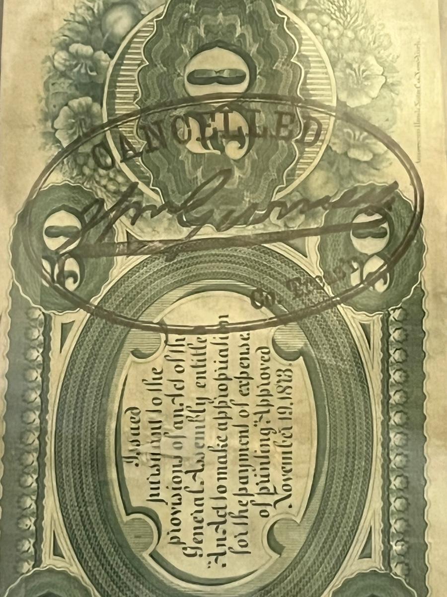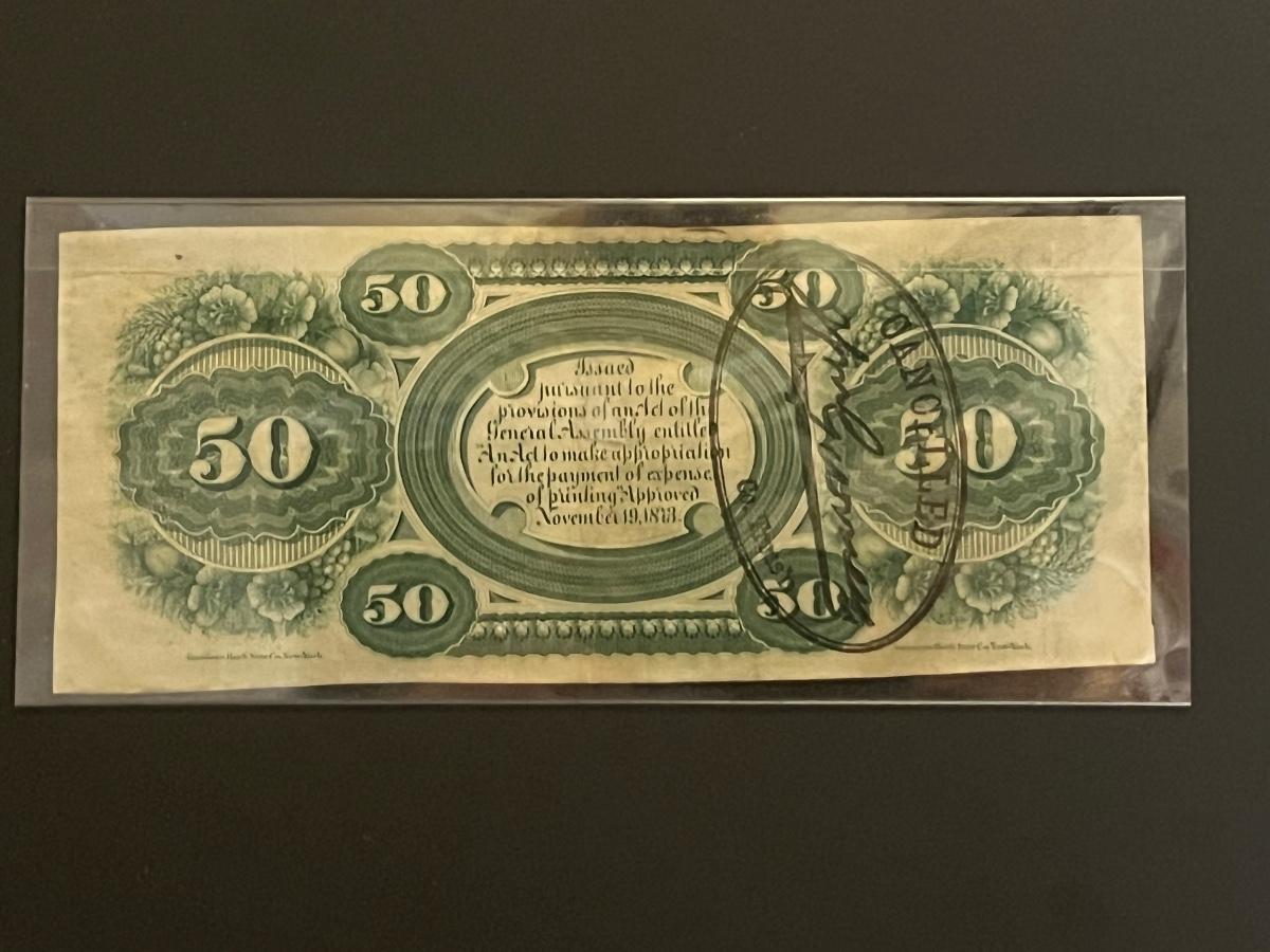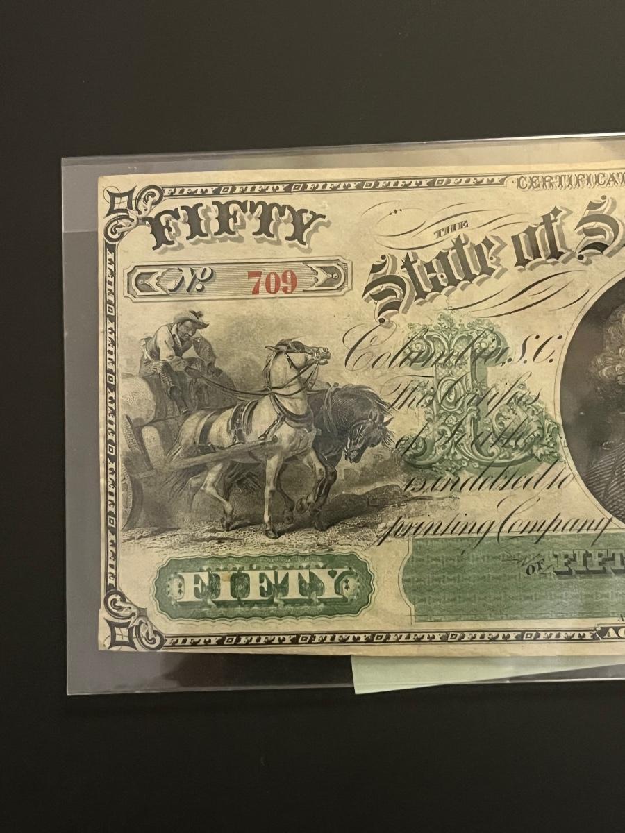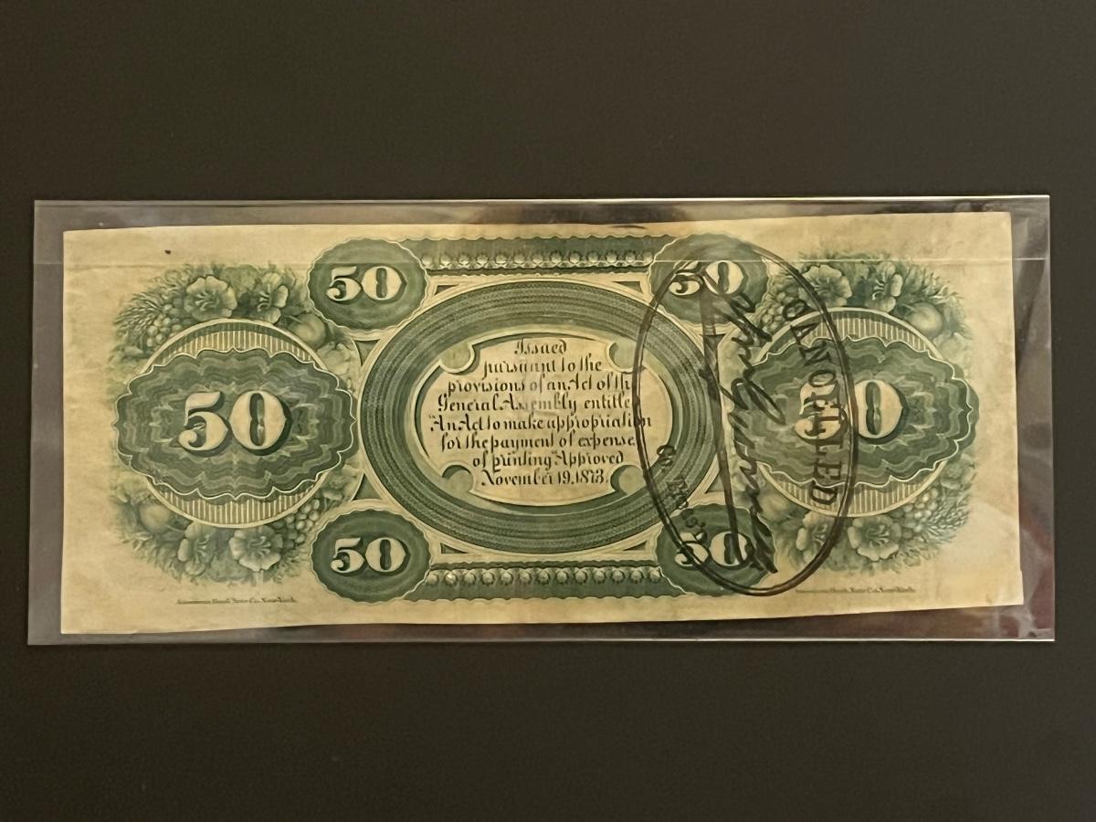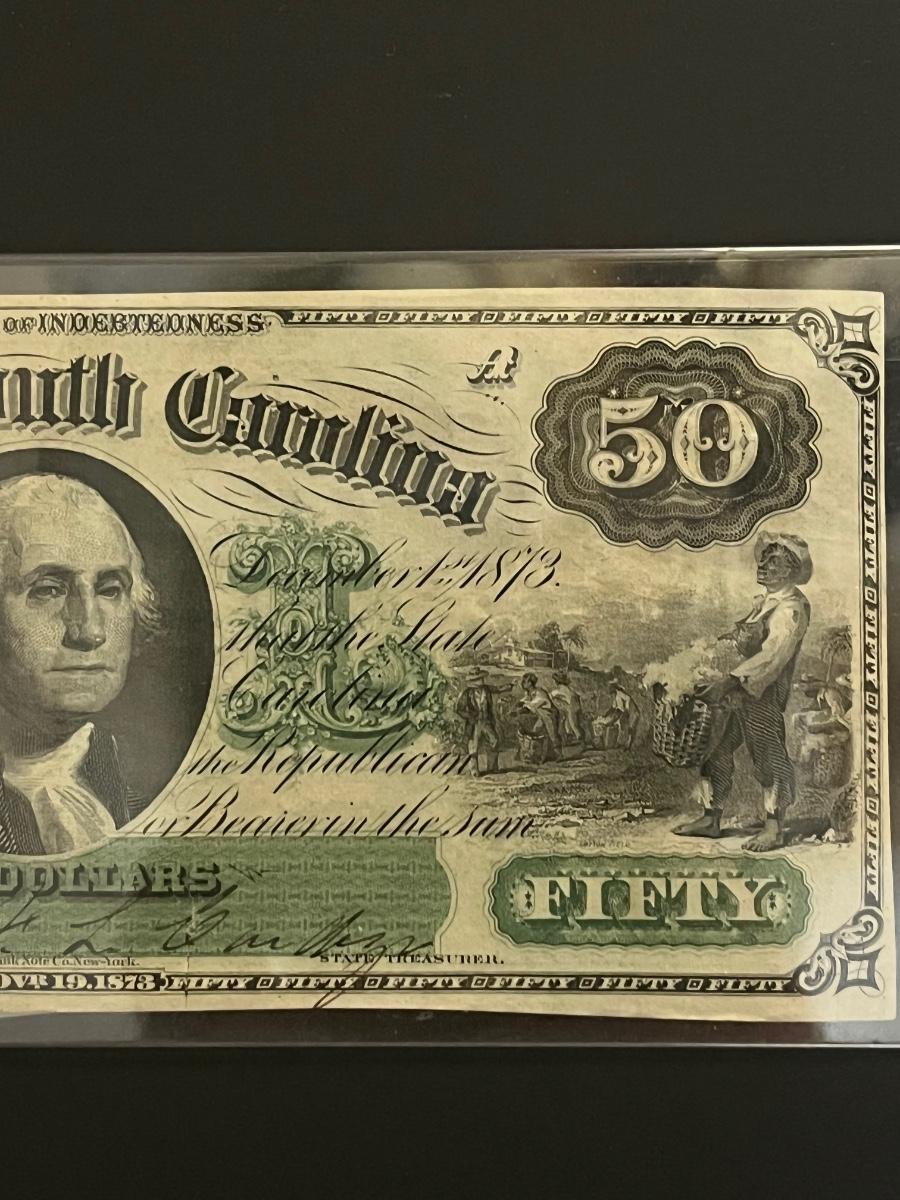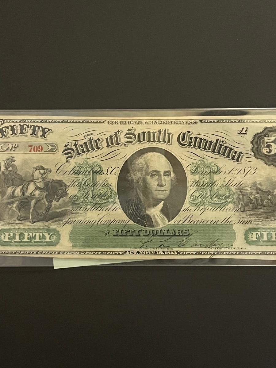 LOT 73C: 1873 State of South Carolina $50 Note Cancelled Certificate