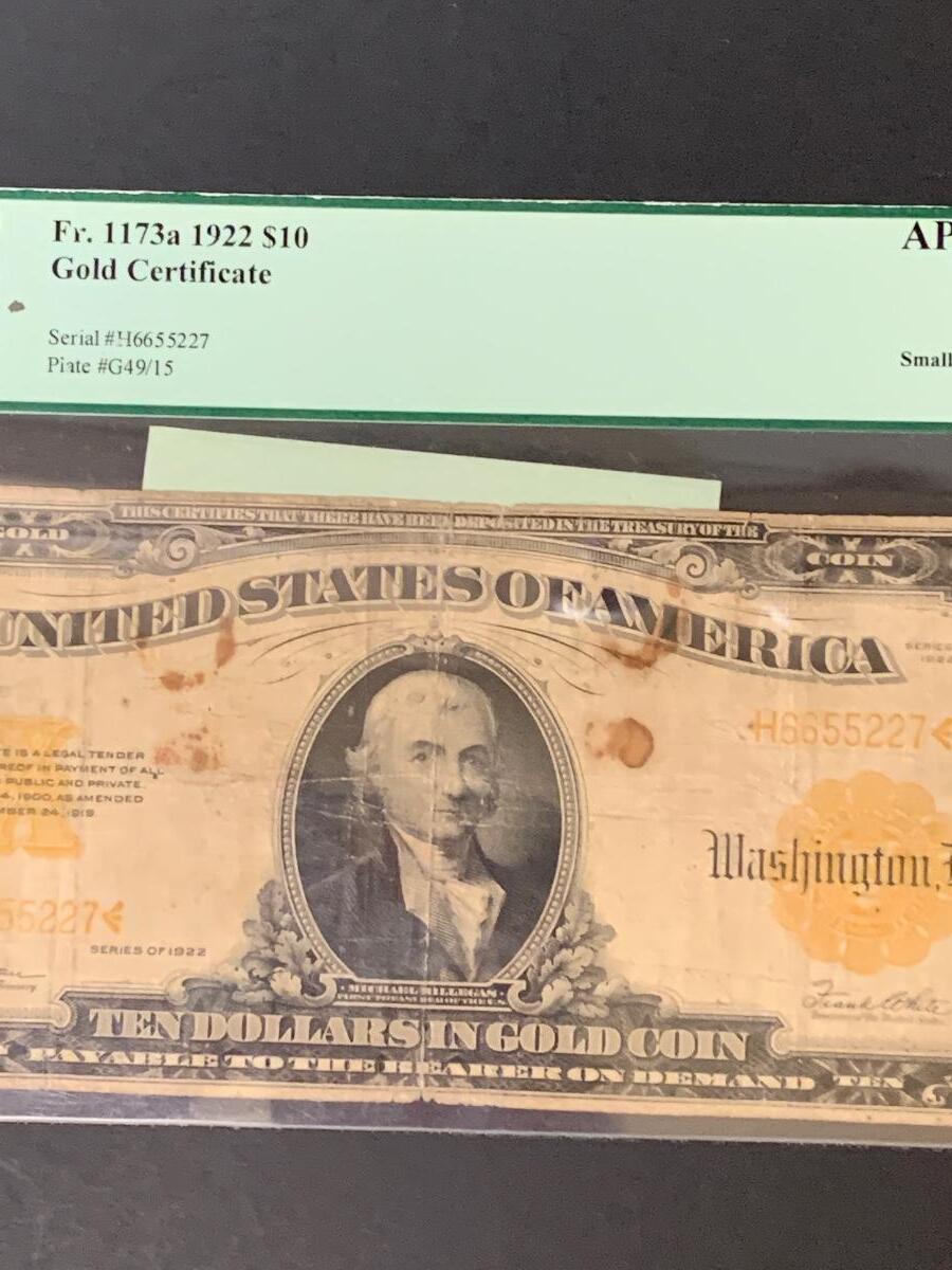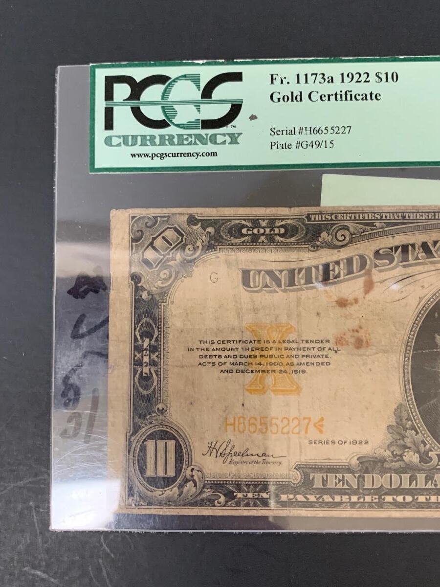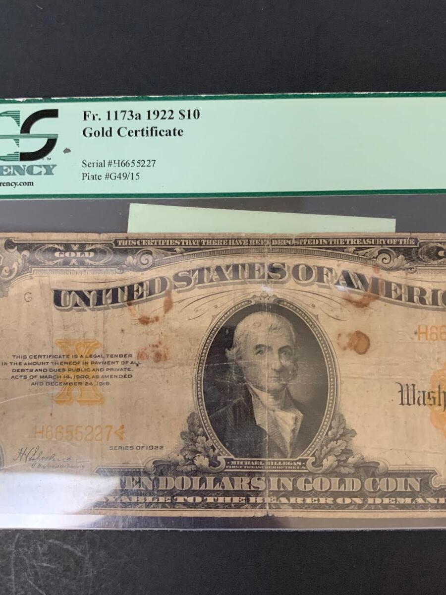 LOT 76: Graded 1922 US $10 Gold Certificate