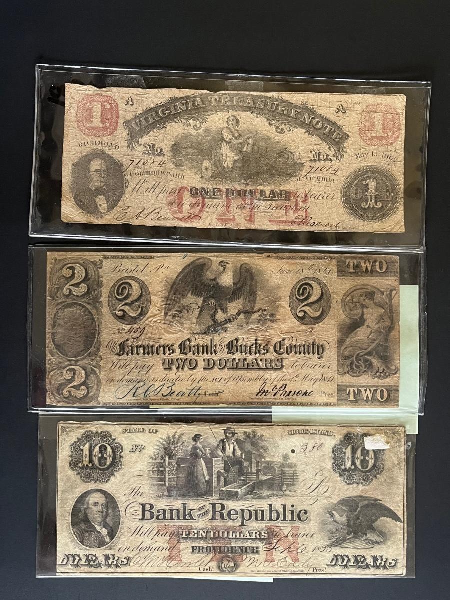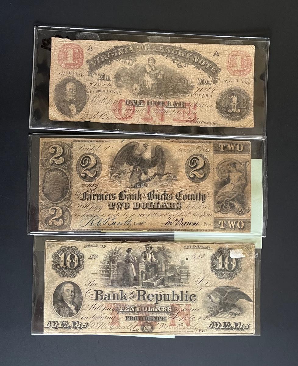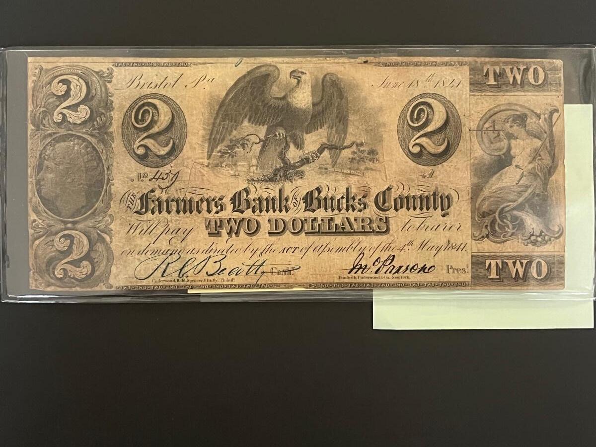 LOT 89C: 1841 $2 Dollar Bill for the Farmers Bank of Bucks County and More