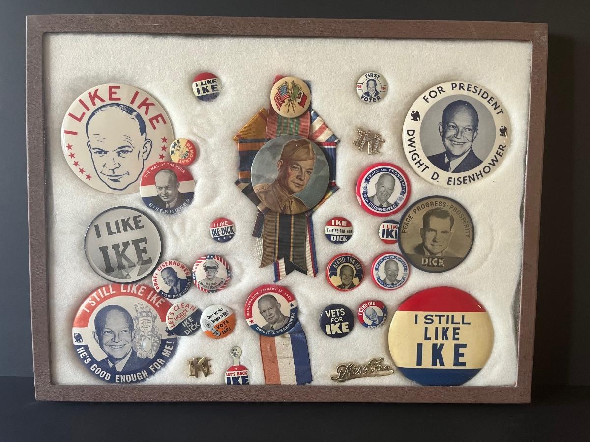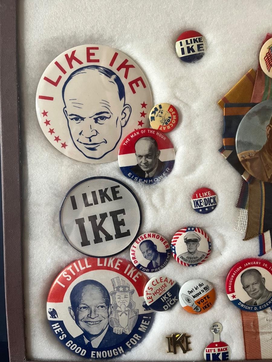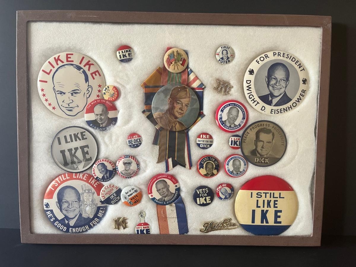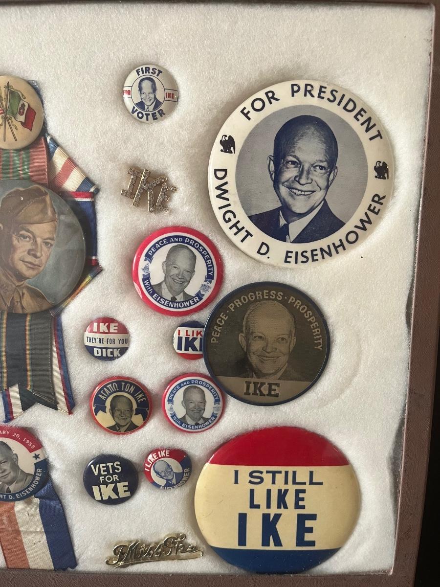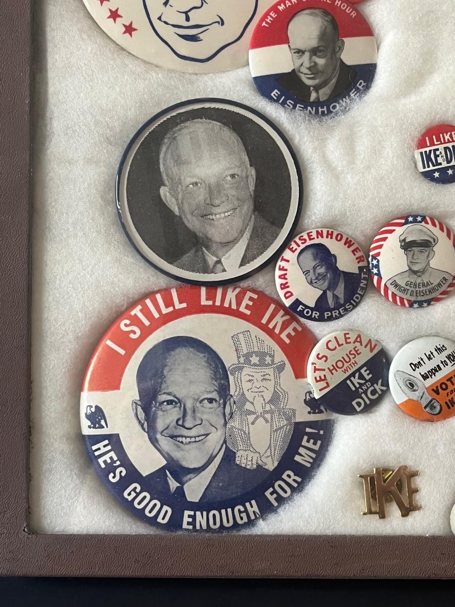 LOT 107C: President Dwight D Eisenhower Political Buttons in Box Frame