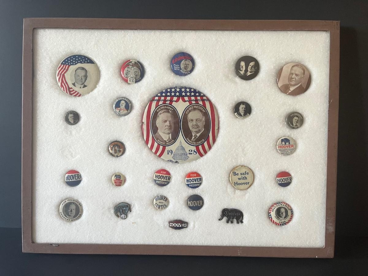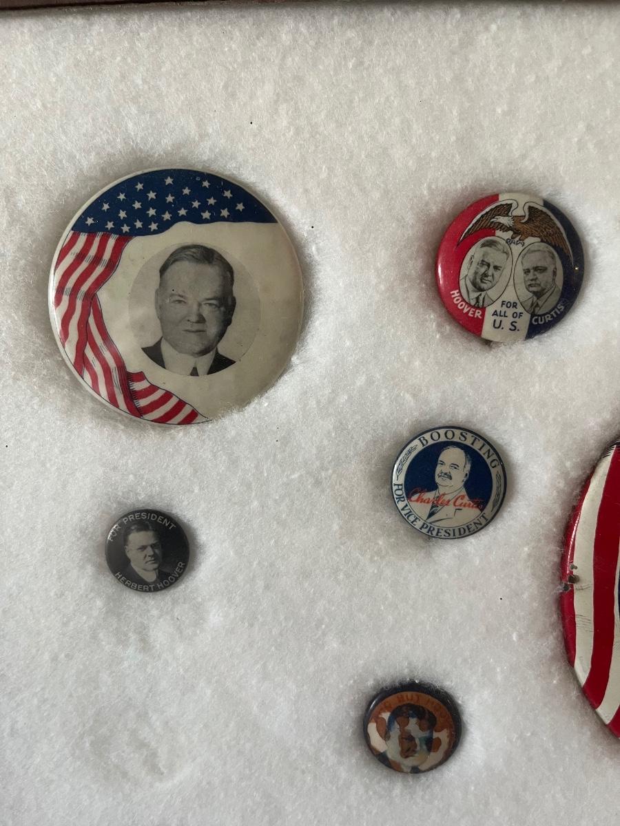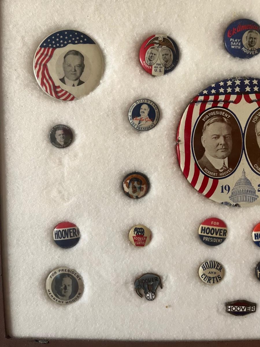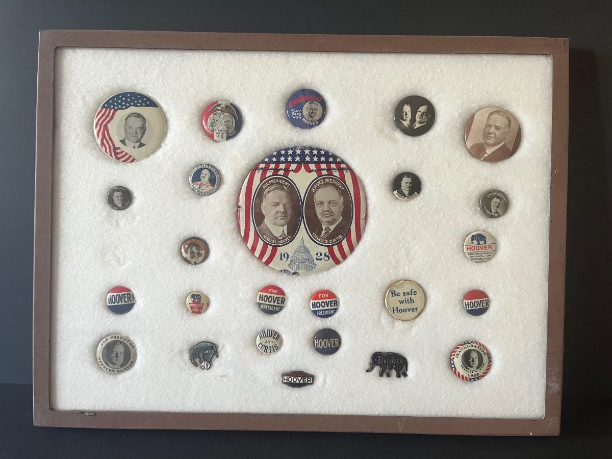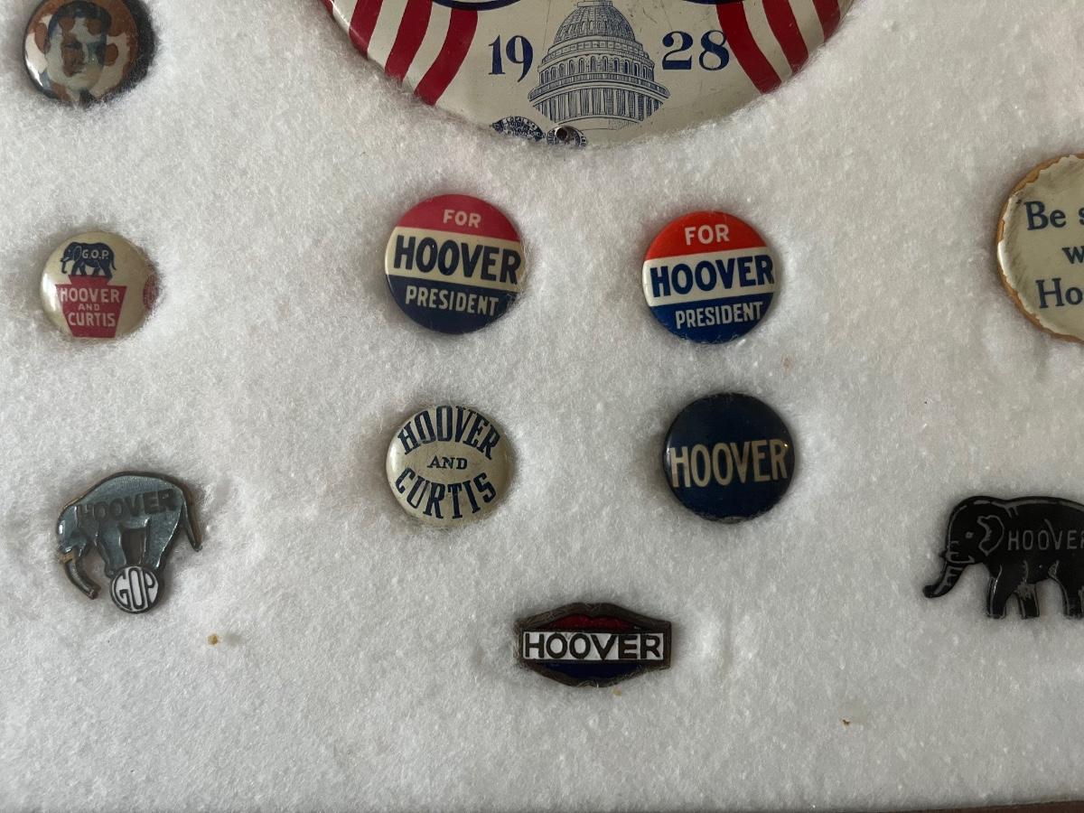 LOT 108C: Herbert Hoover and More Political Buttons in Boxed Frame