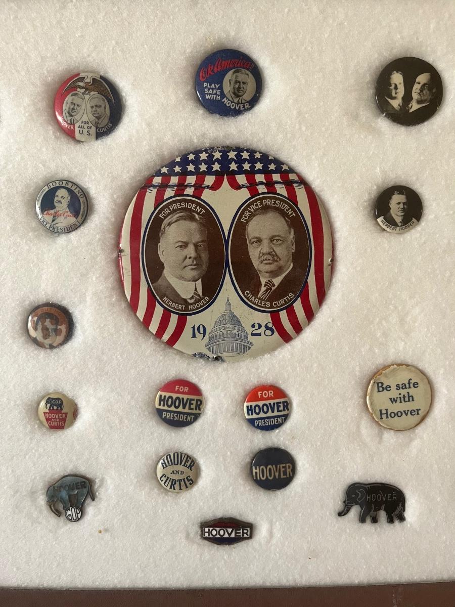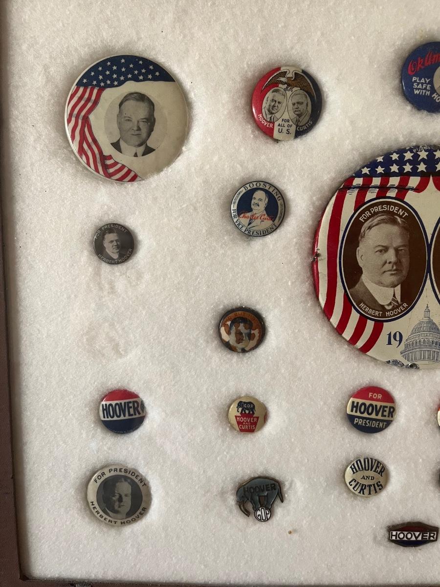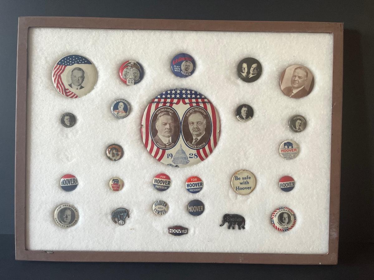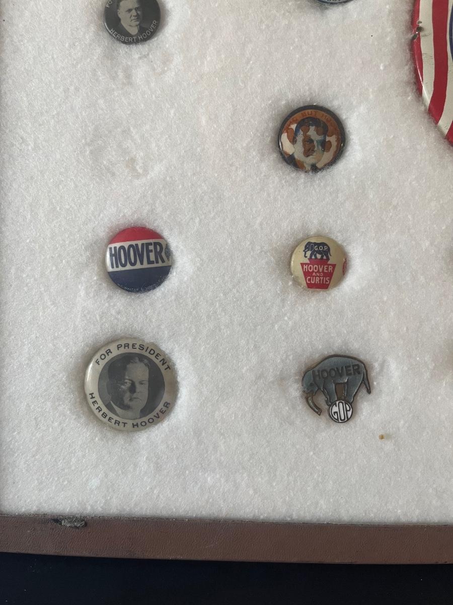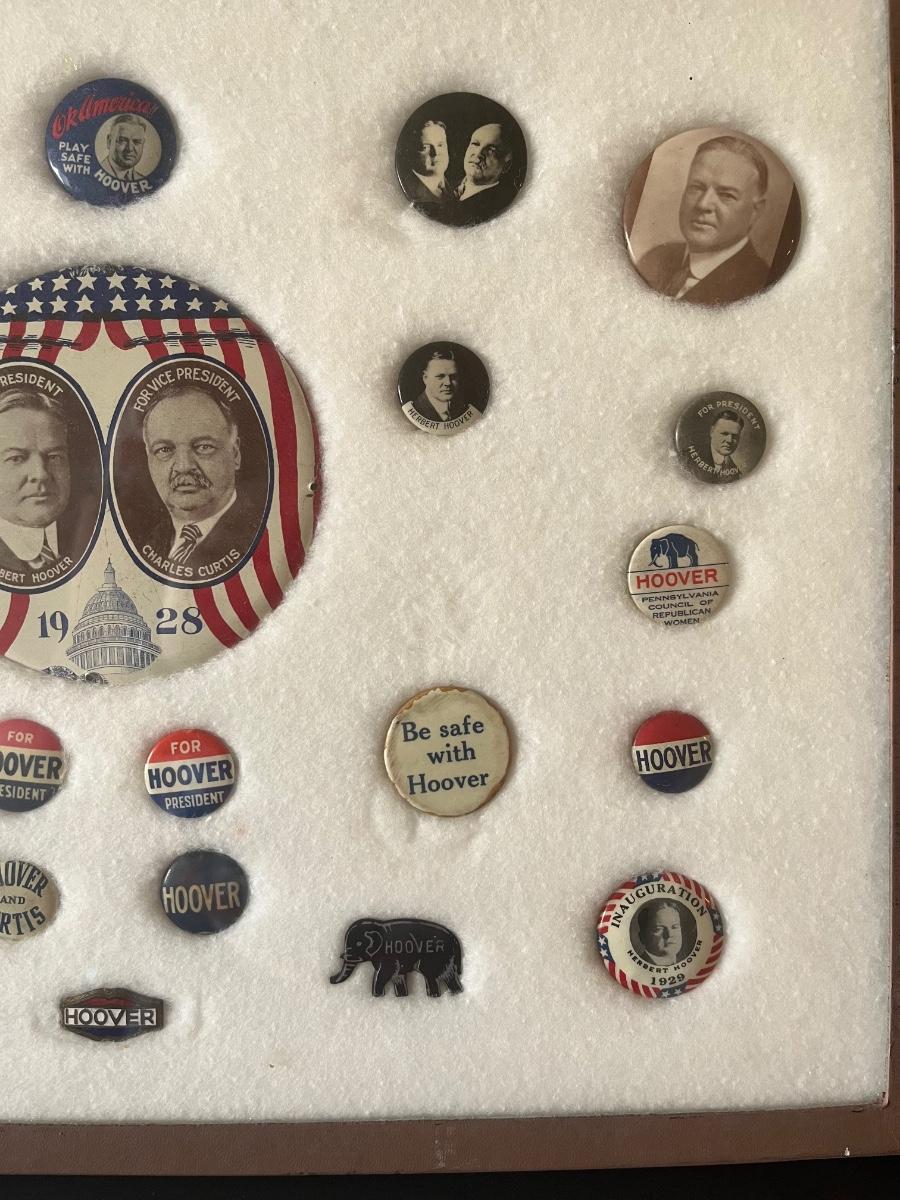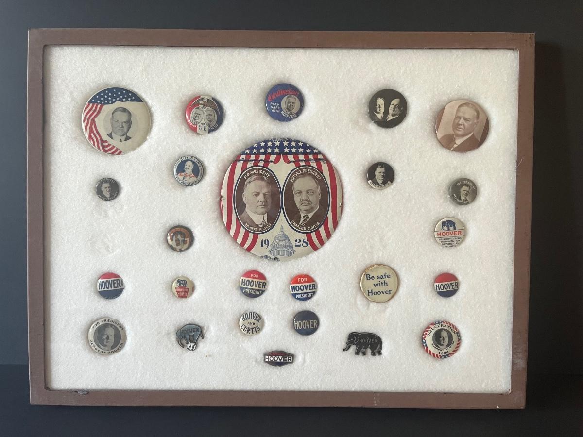 LOT 108C: Herbert Hoover and More Political Buttons in Boxed Frame