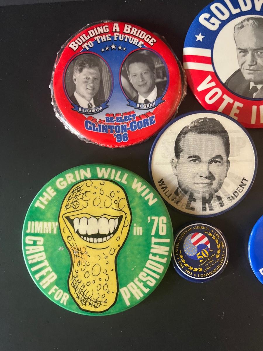LOT 127C: Jimmy Carter Peanut Grin Pin, Clinton, JFK and More Campaign Buttons
