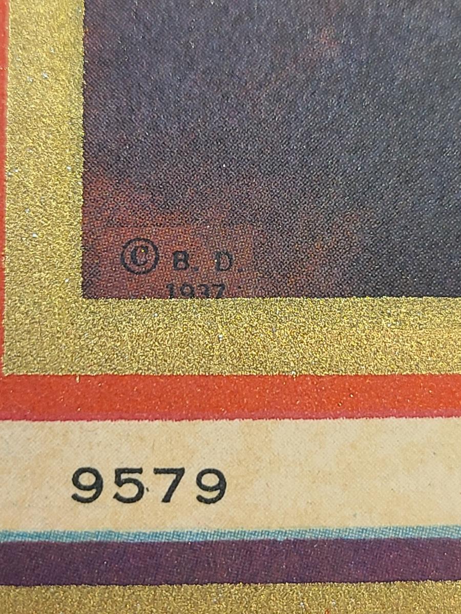 This colorful lithograph would have been used for a calendar or advertising piece in store. Please see all pictures as they are the best representation of the items. The pictures show condition, measurements if taken, and what is included in the lot. Due to the large amount that we photograph and the time frame, we are not always able to take measurements. All items unless noted, are pre-owned and have been used. If you purchased furniture, you must bring help. We do not allow one person to carry large furniture out on their own. Bring help, tools and a truck for the safety of our client’s homes, and your personal safety. Any damages that result to the property including walls, and floors due to moving of the furniture will be charged to the buyer. Company policy. Thank you.