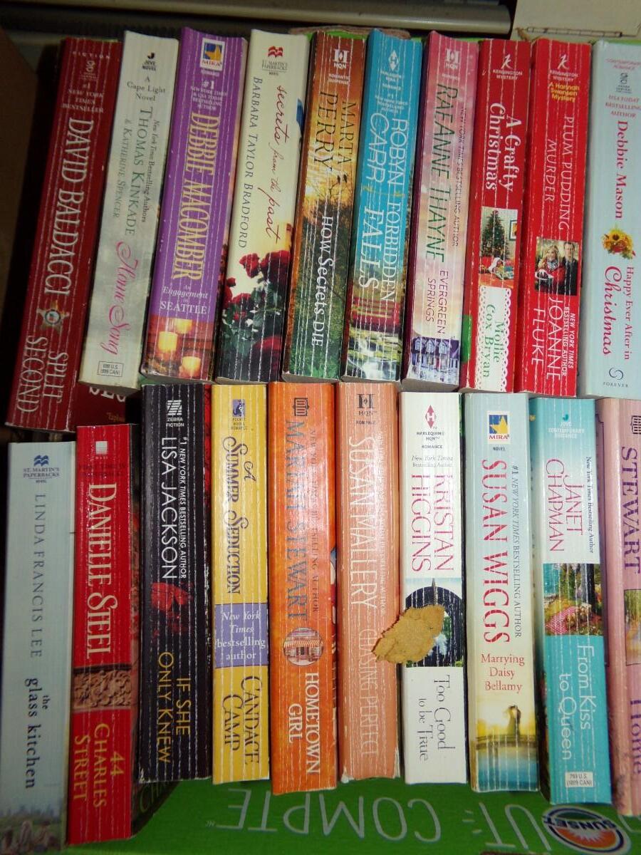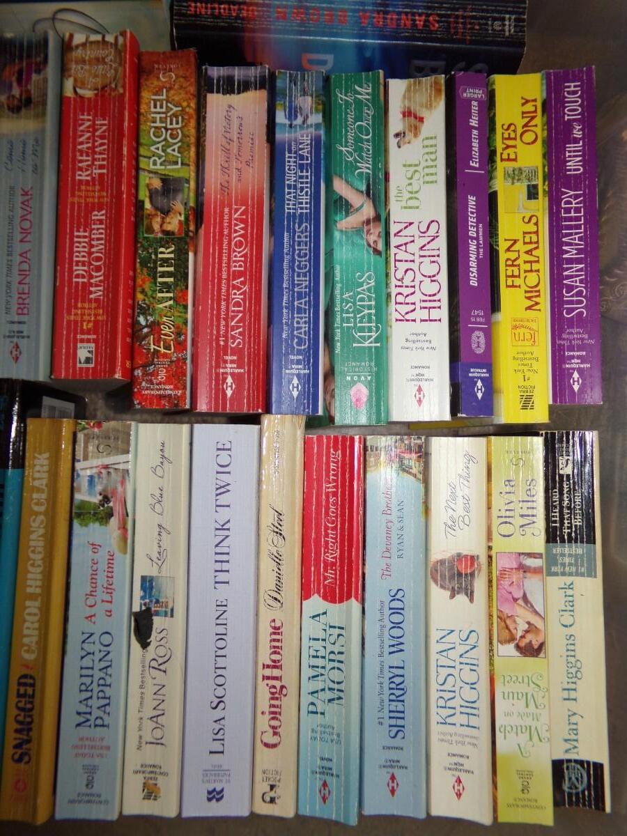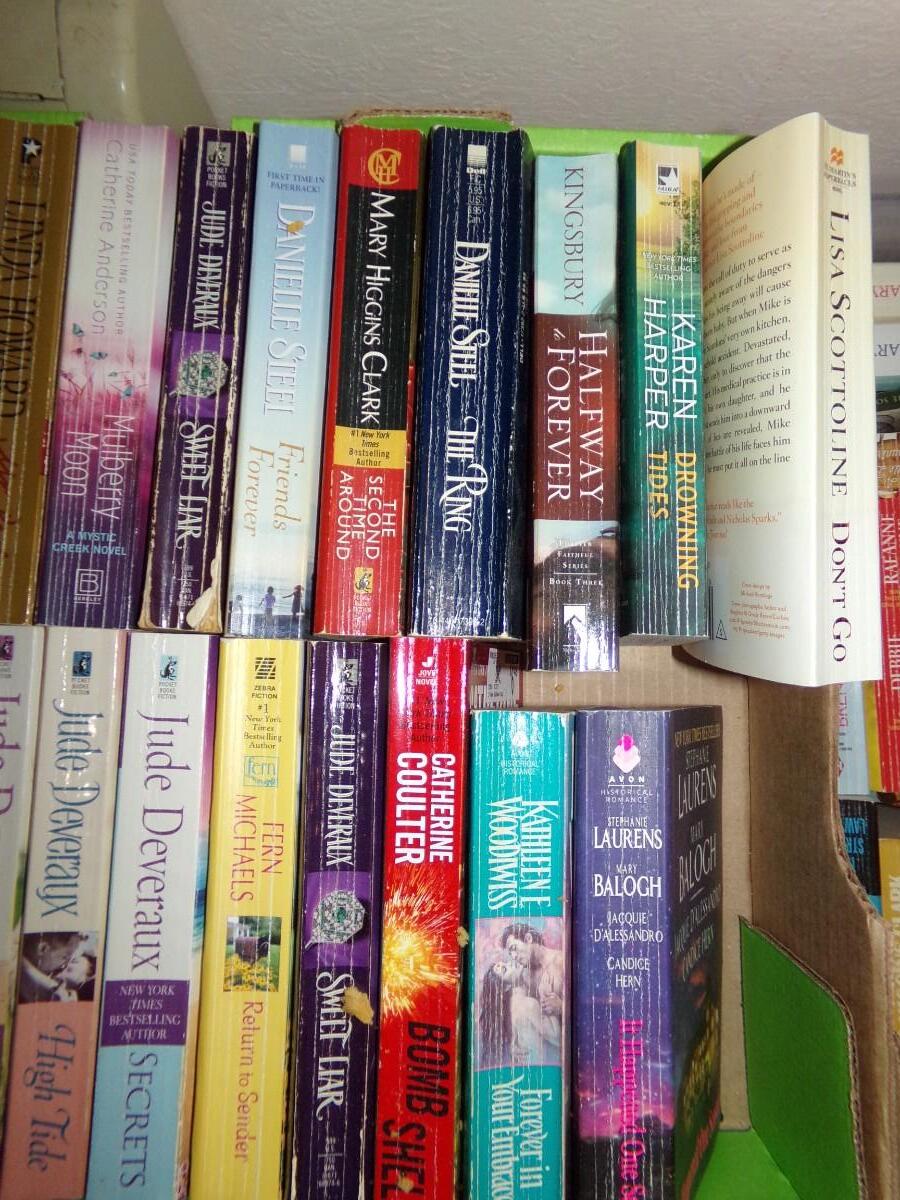 LARGE ASSORTMENT OF BOOKS. INCLUDING SUSAN WIGGS, JUDE DEVERAUX, KAREN HARPER AND MANY MORE. MOST ARE PAPERBACKS.
