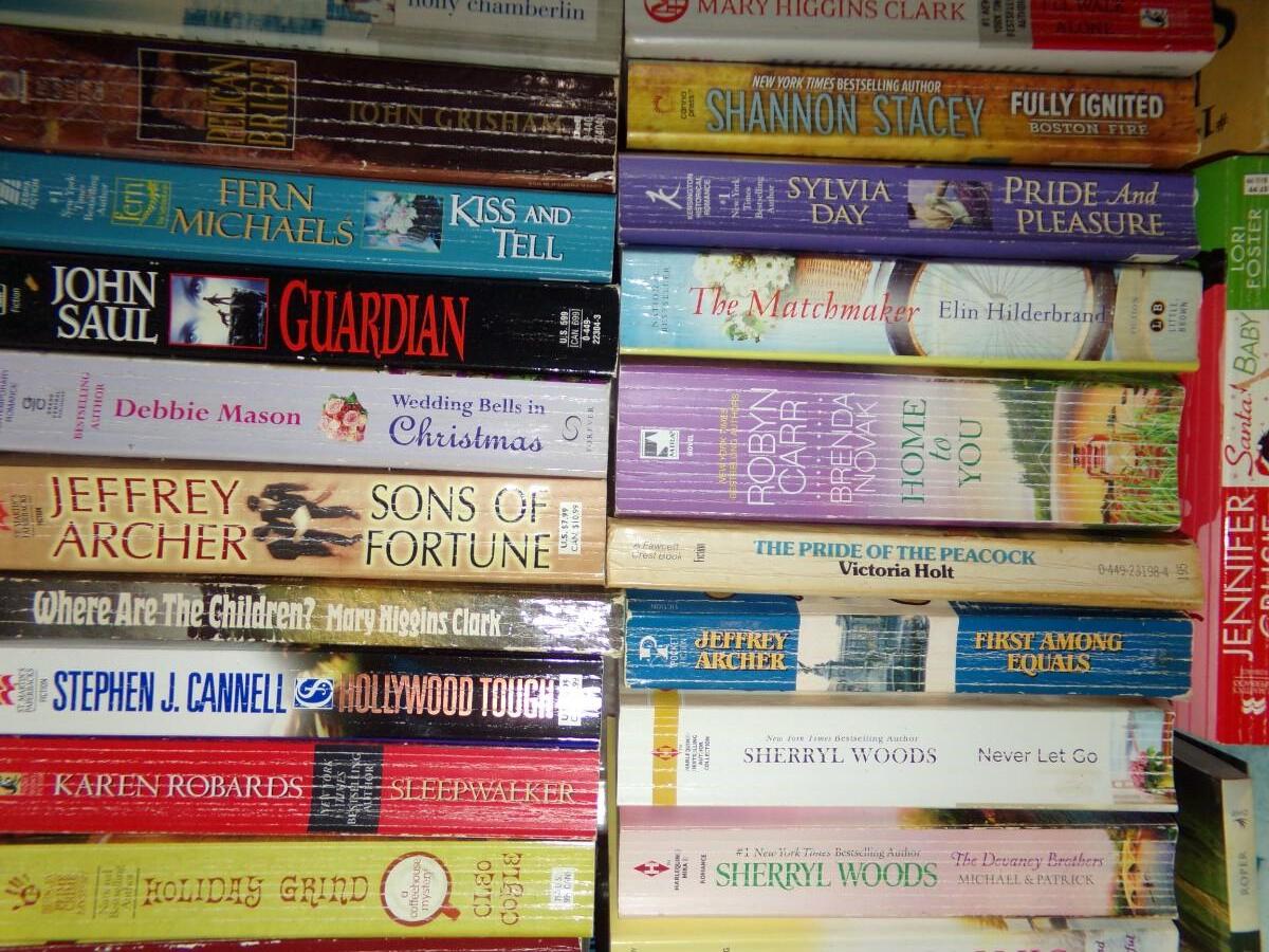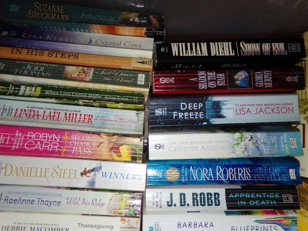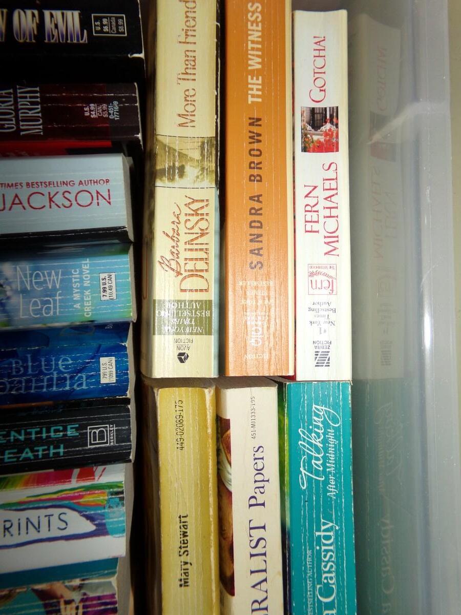 LARGE ASSORTMENT OF BOOKS. INCLUDING SUSAN WIGGS, JUDE DEVERAUX, KAREN HARPER AND MANY MORE. MOST ARE PAPERBACKS.