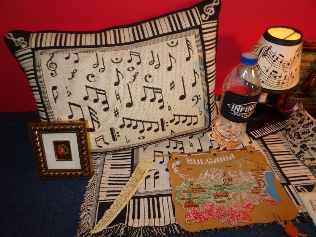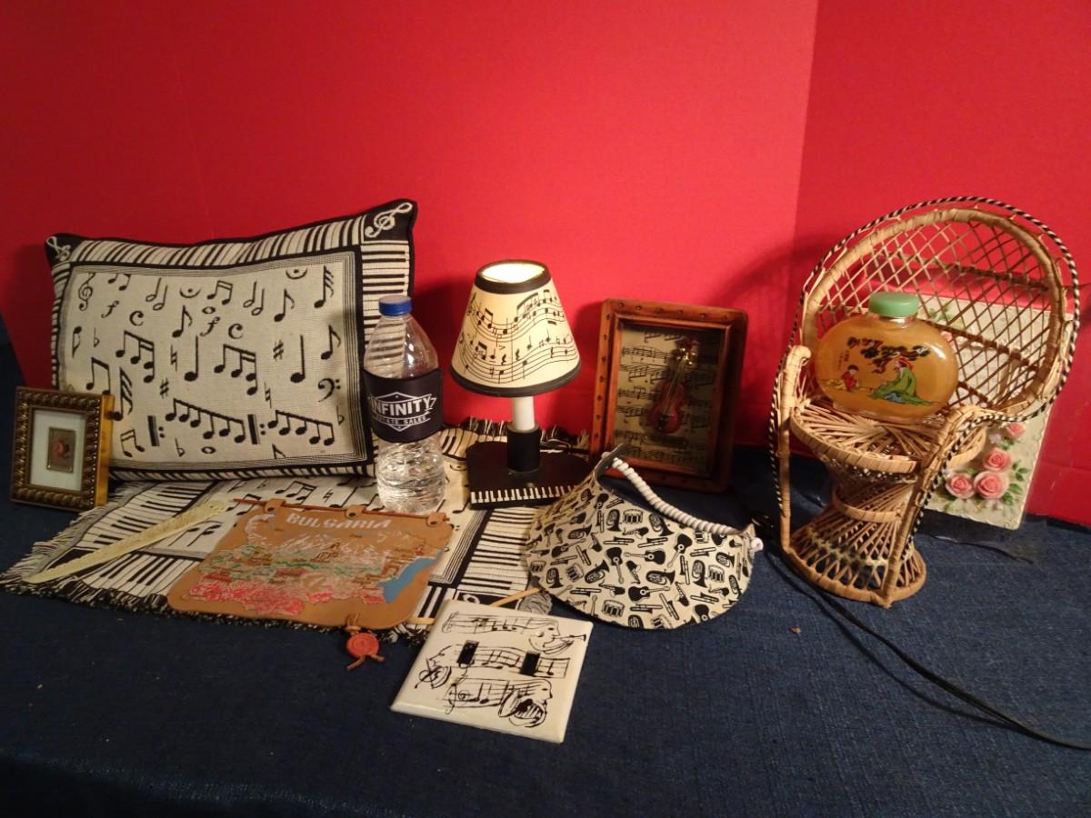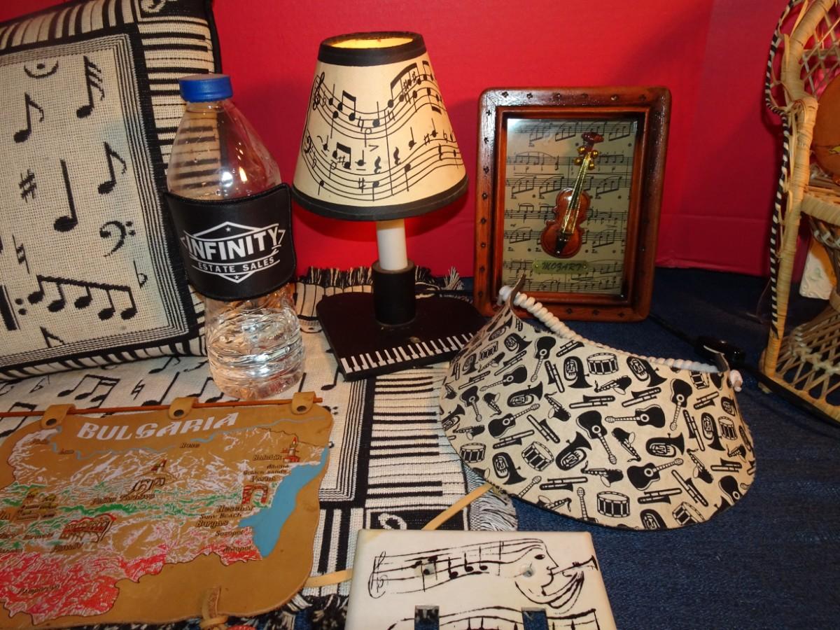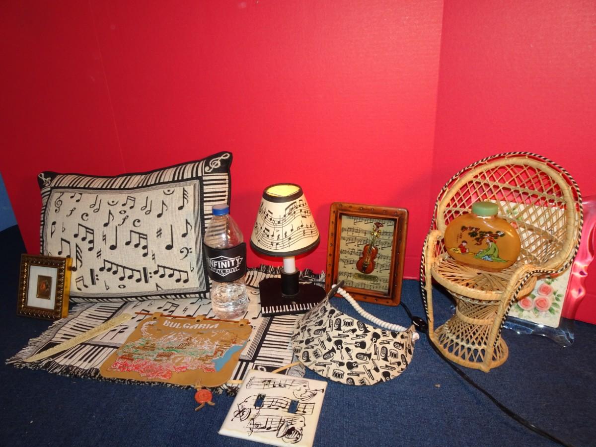 LOT 301. MUSICAL INSTRUMENT HOME DECOR  AND MINI CHAIR